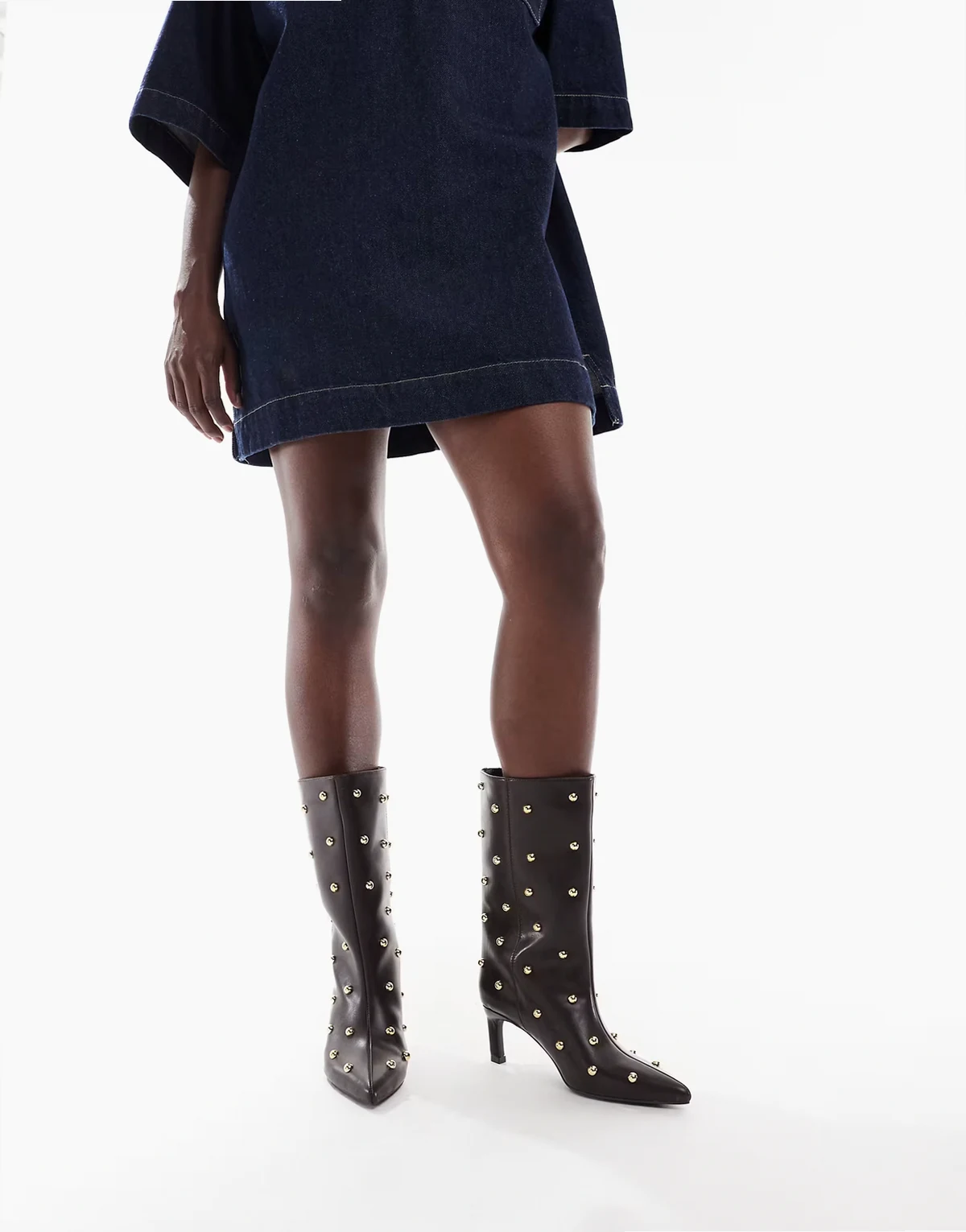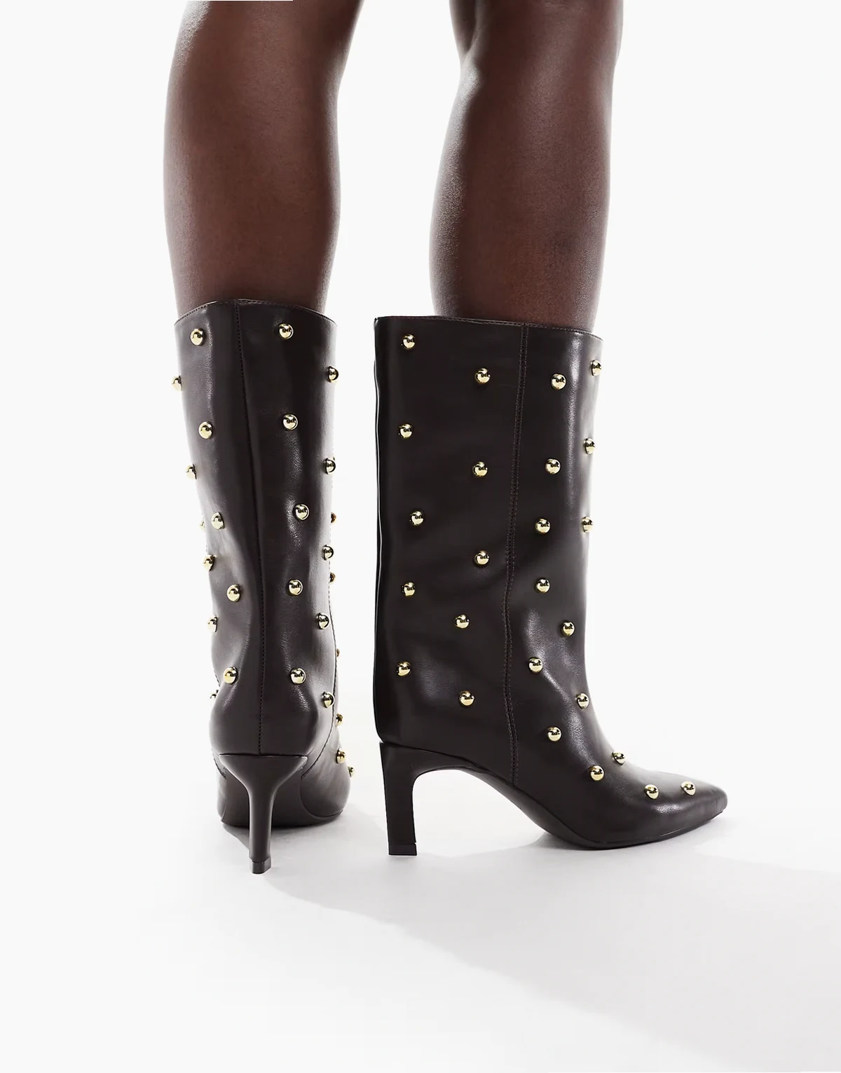 – Brązowe zamszowe botki z obcasem kubańskim i kowbojskim przeszyciem