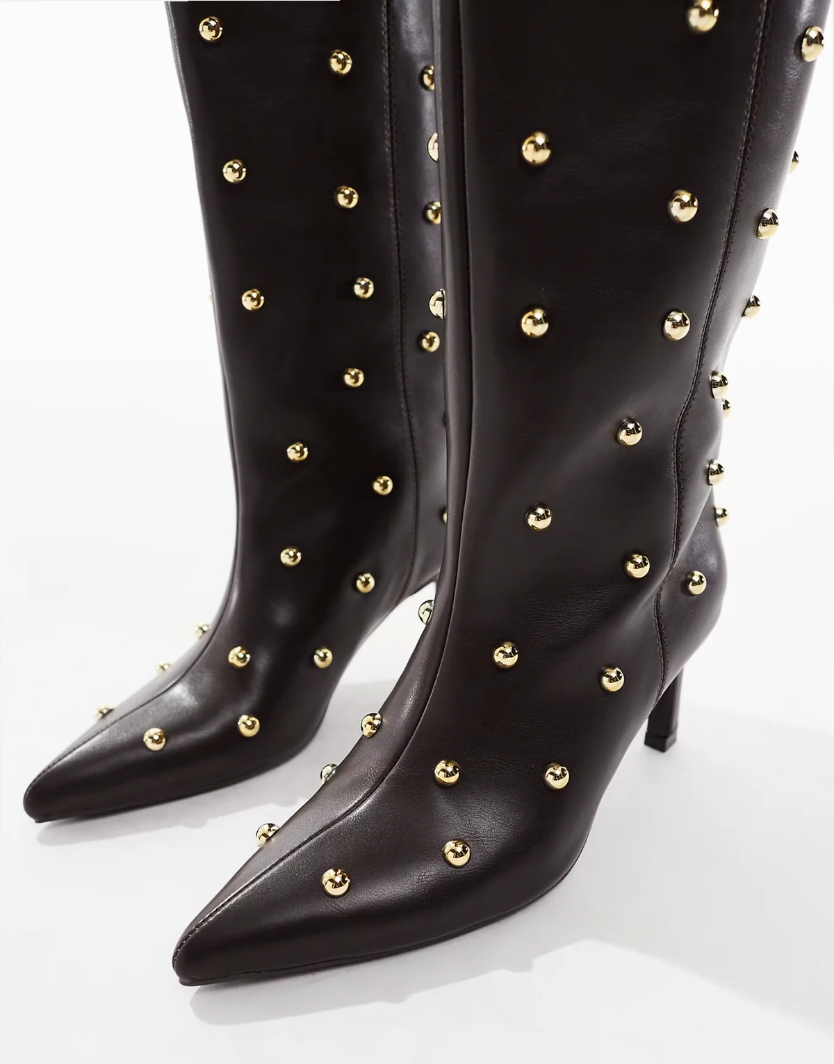 – Czarne kowbojskie sztyblety z imitacji skóry na obcasach kubańskich ze srebrnymi noskami