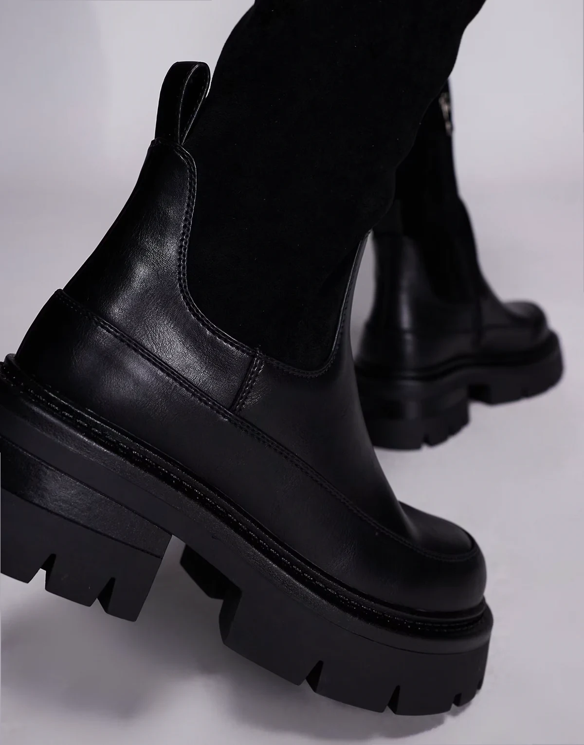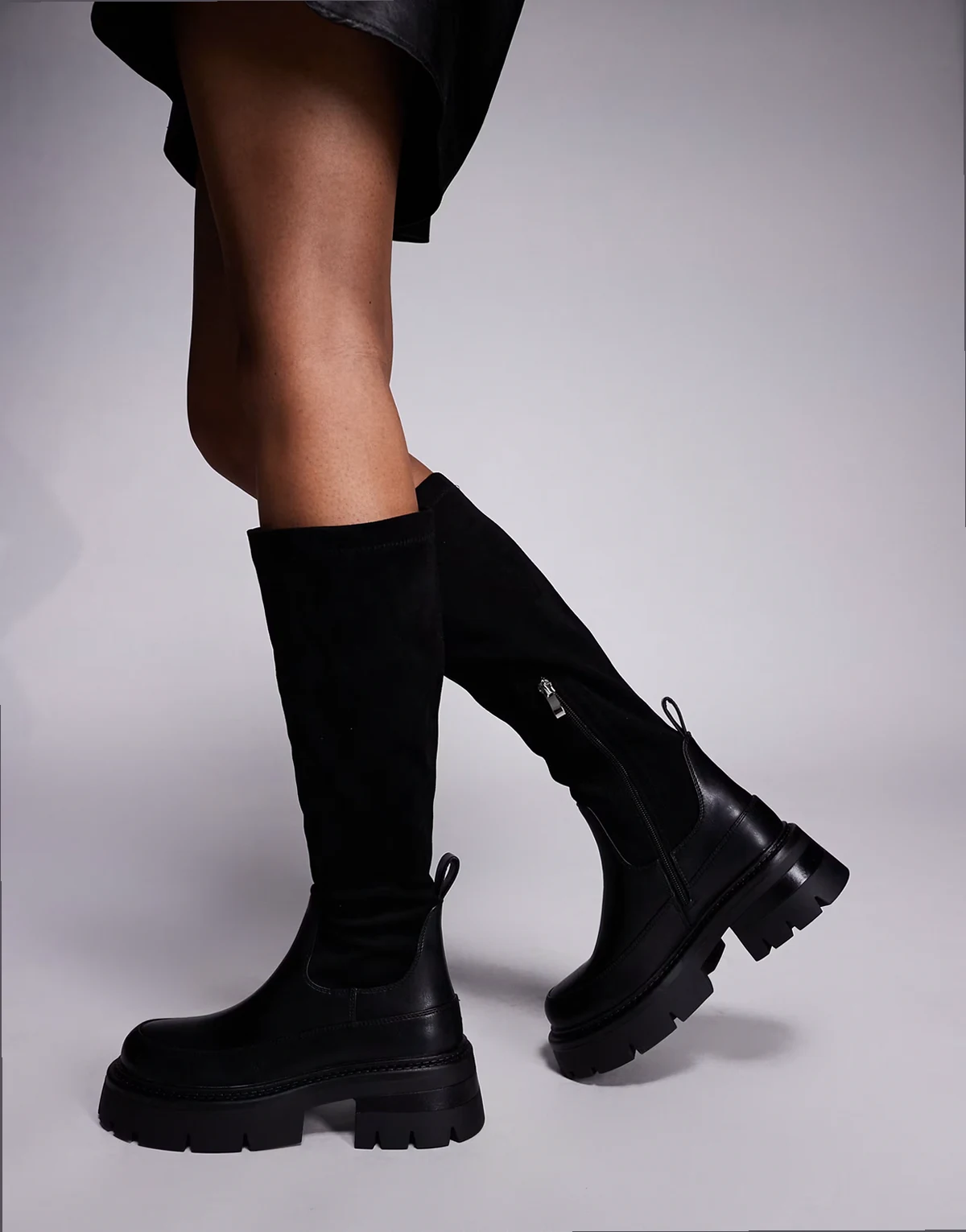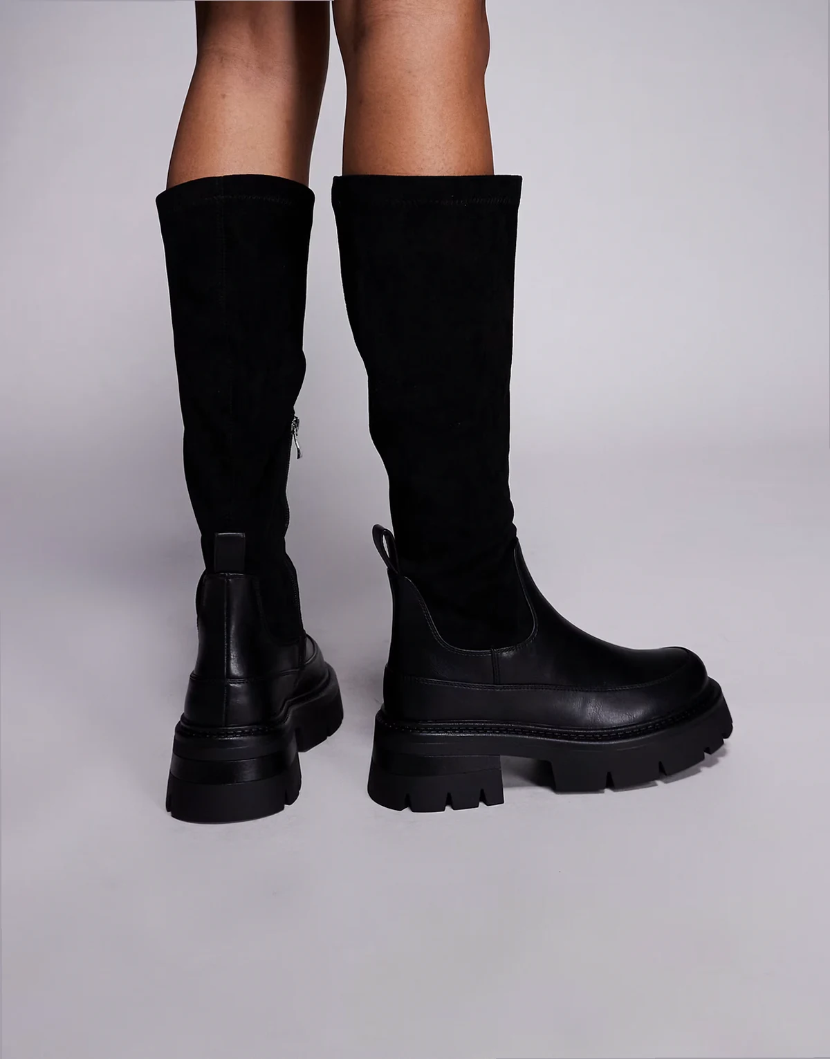 SIMMI London – Chorley – Czarne botki do kolan na grubej podeszwie