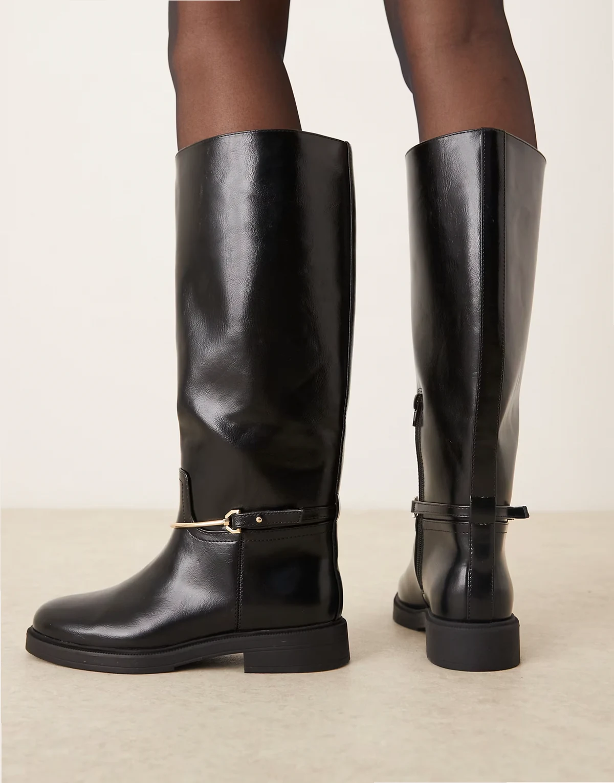 – Cole – Czarne płaskie botki do kolan w stylu jeździeckim