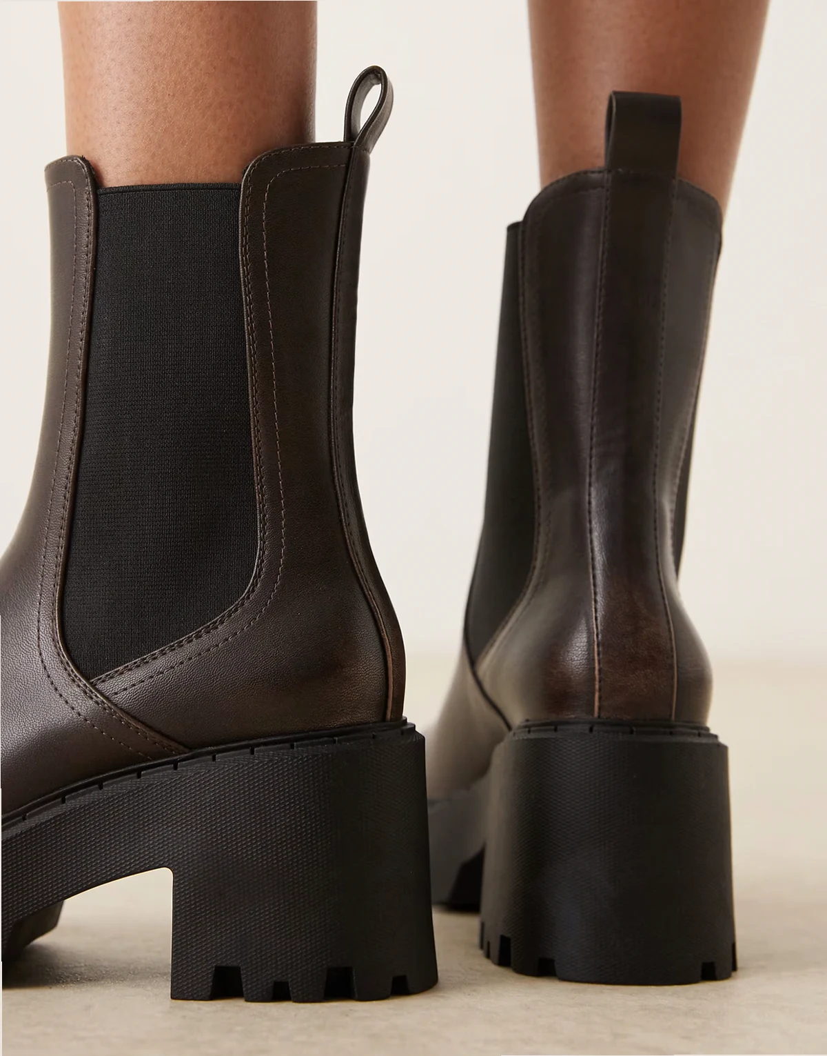 – Rae – Brązowe sztyblety na masywnej podeszwie i obcasie