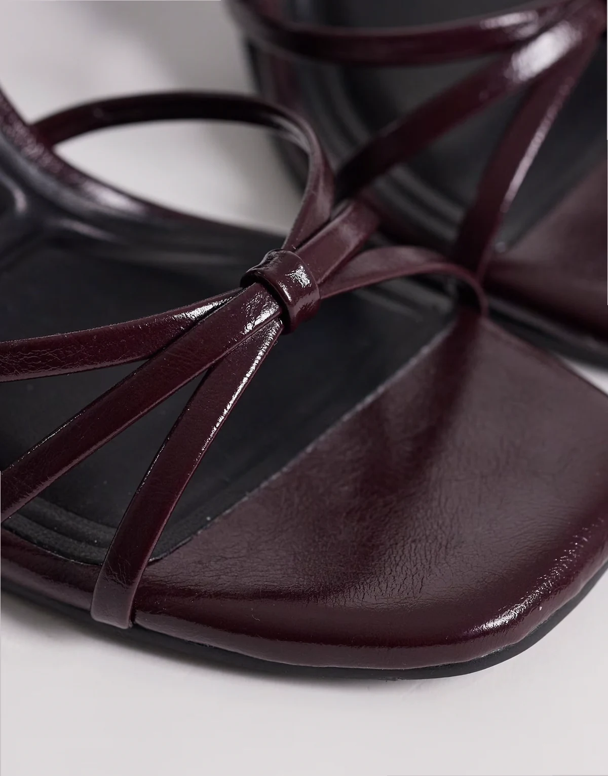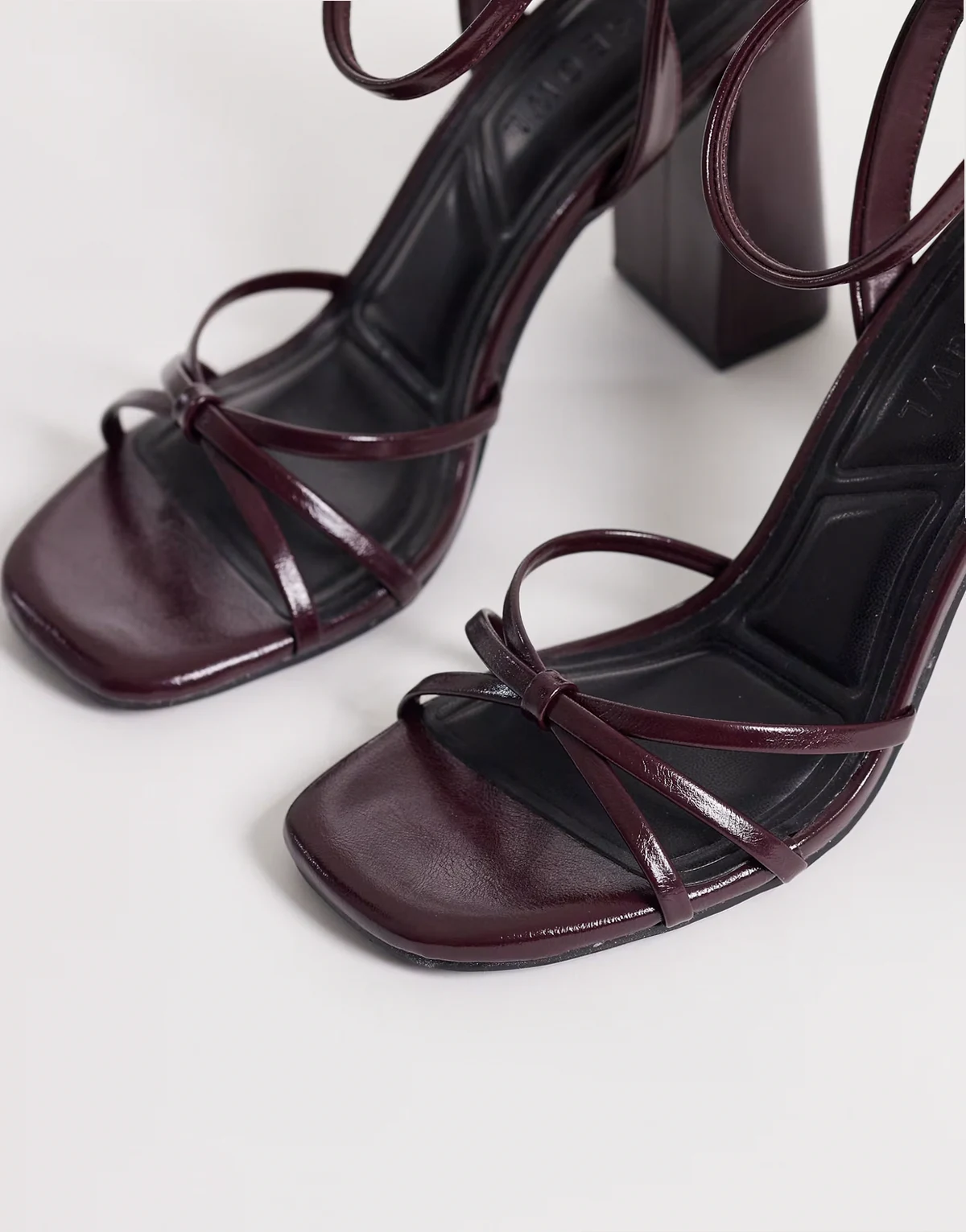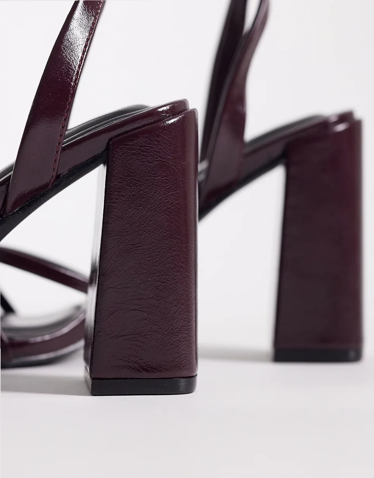 – Bordowe minimalistyczne sandały na obcasie klockowym z paseczkami