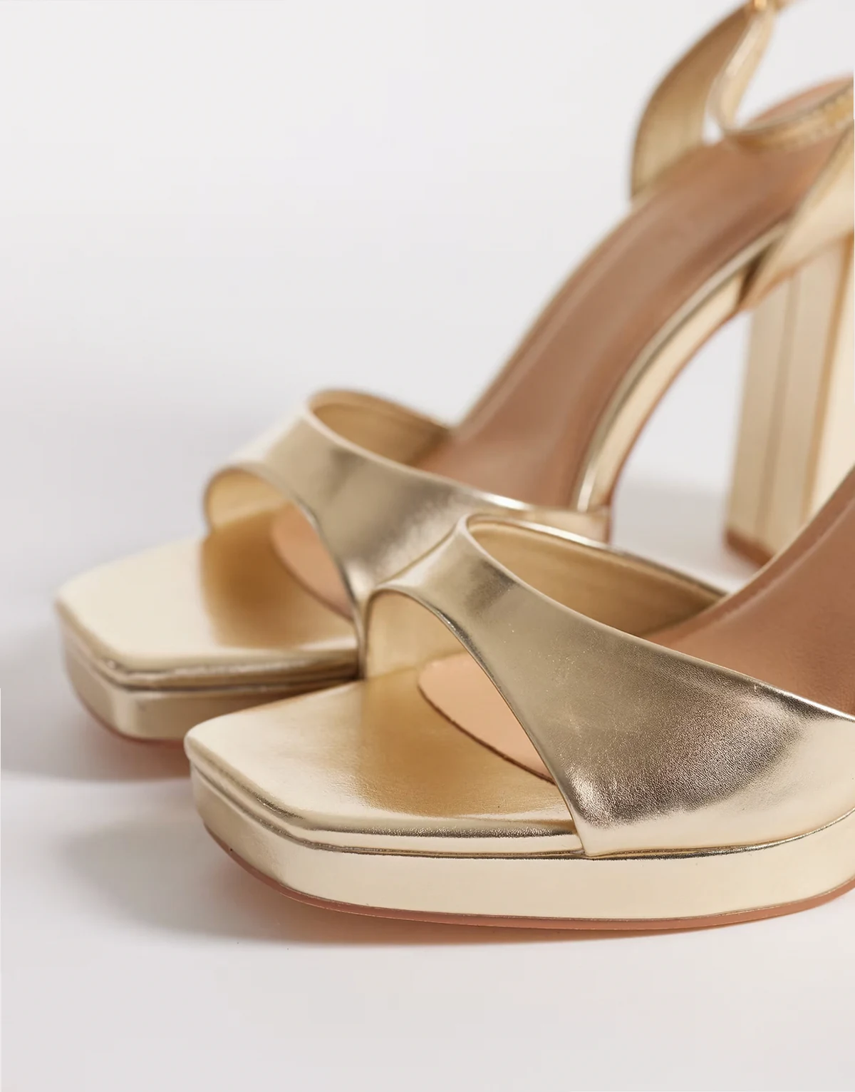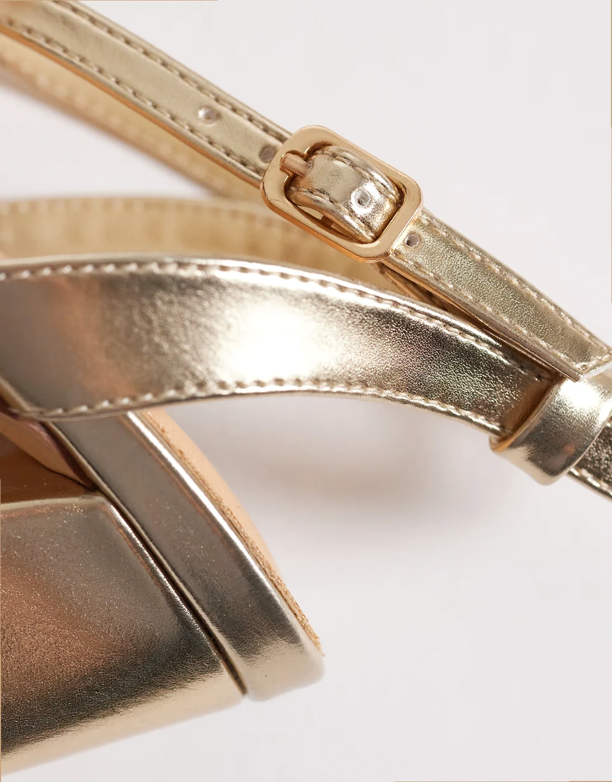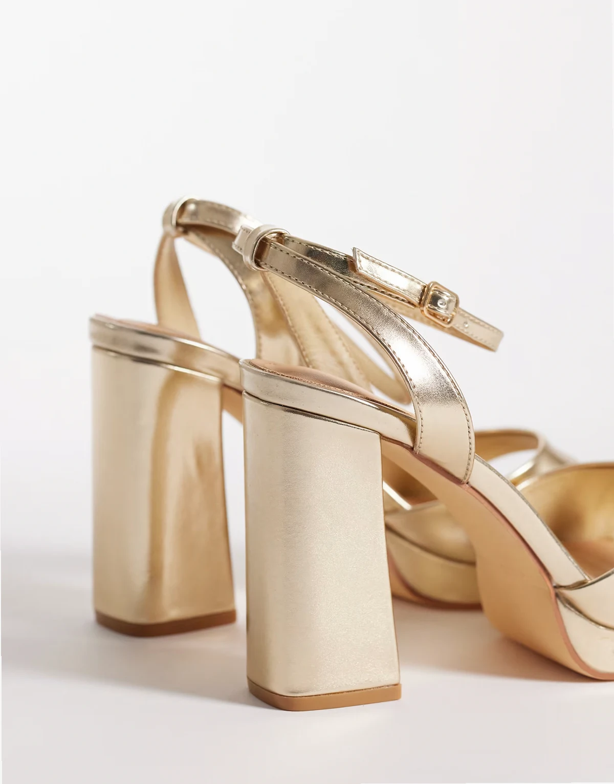 – Naples – Złote sandały na platformie i obcasie klockowym -20%