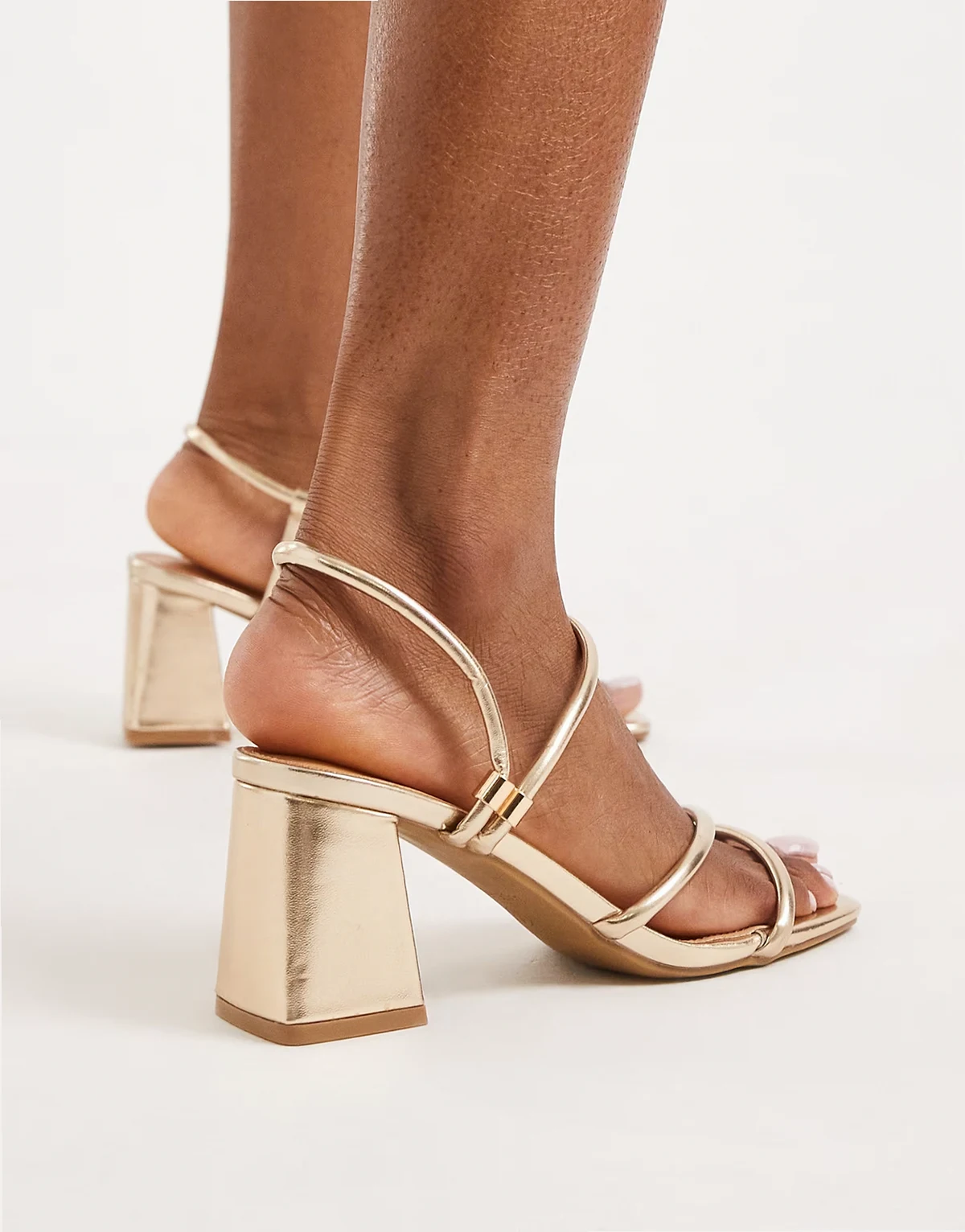 – Dandelion – Złote sandały na klockowym obcasie z paseczkami