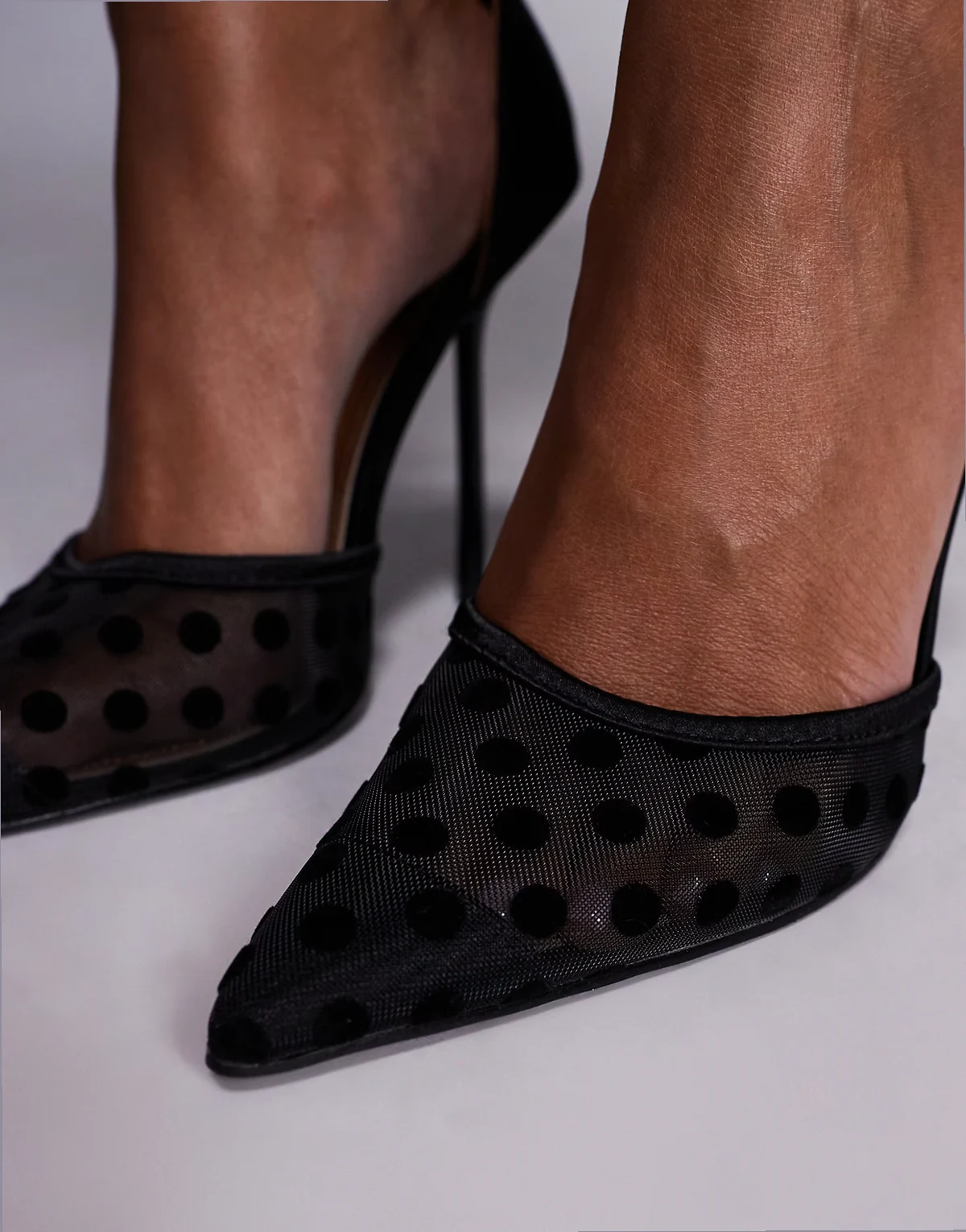 SIMMI London – Mandisa – Czarne siateczkowe buty na obcasie w groszki