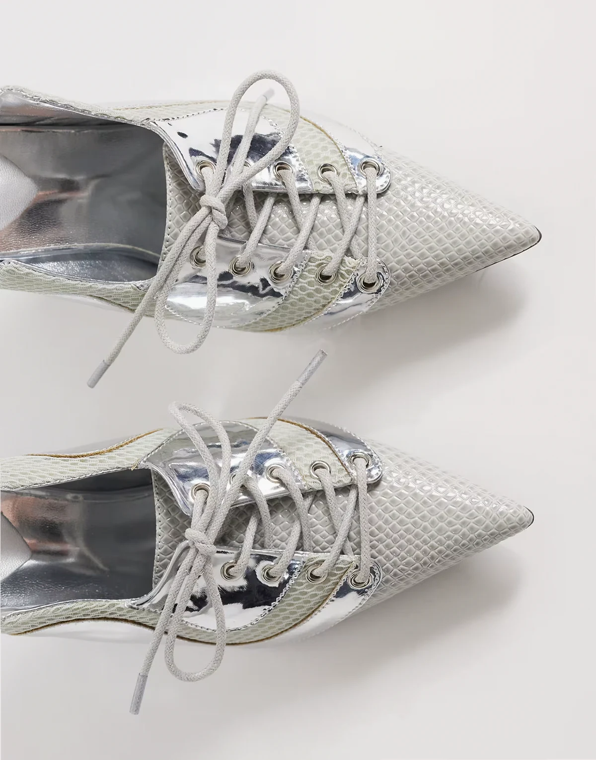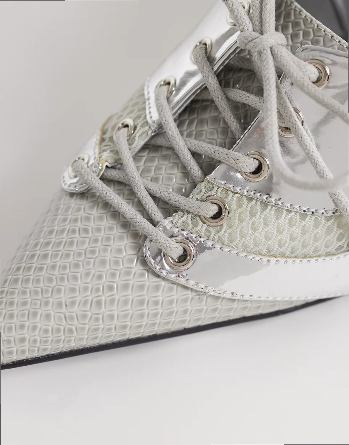 Exclusive – Srebrne sznurowane buty na obcasie w piłkarskim stylu