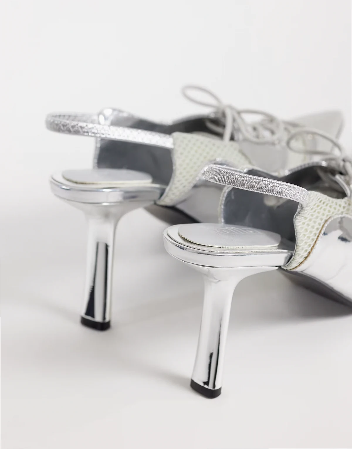 4. Exclusive – Srebrne sznurowane buty na obcasie w piłkarskim stylu