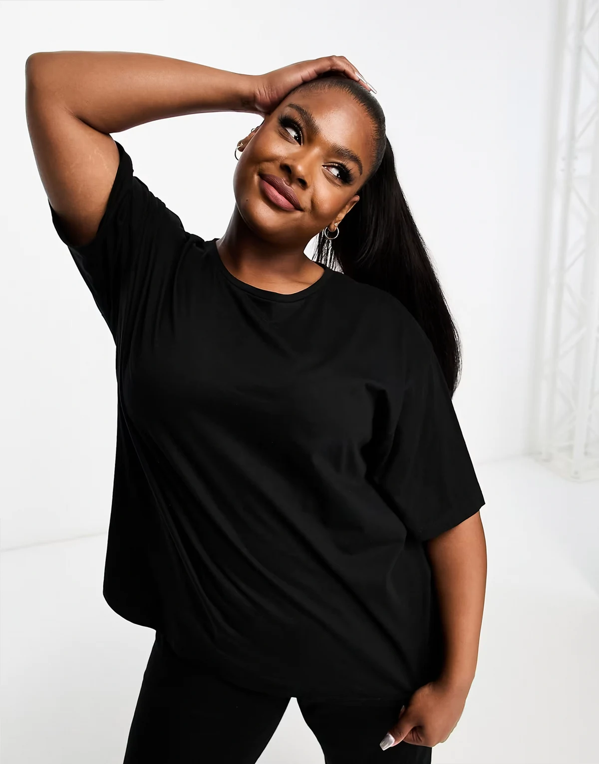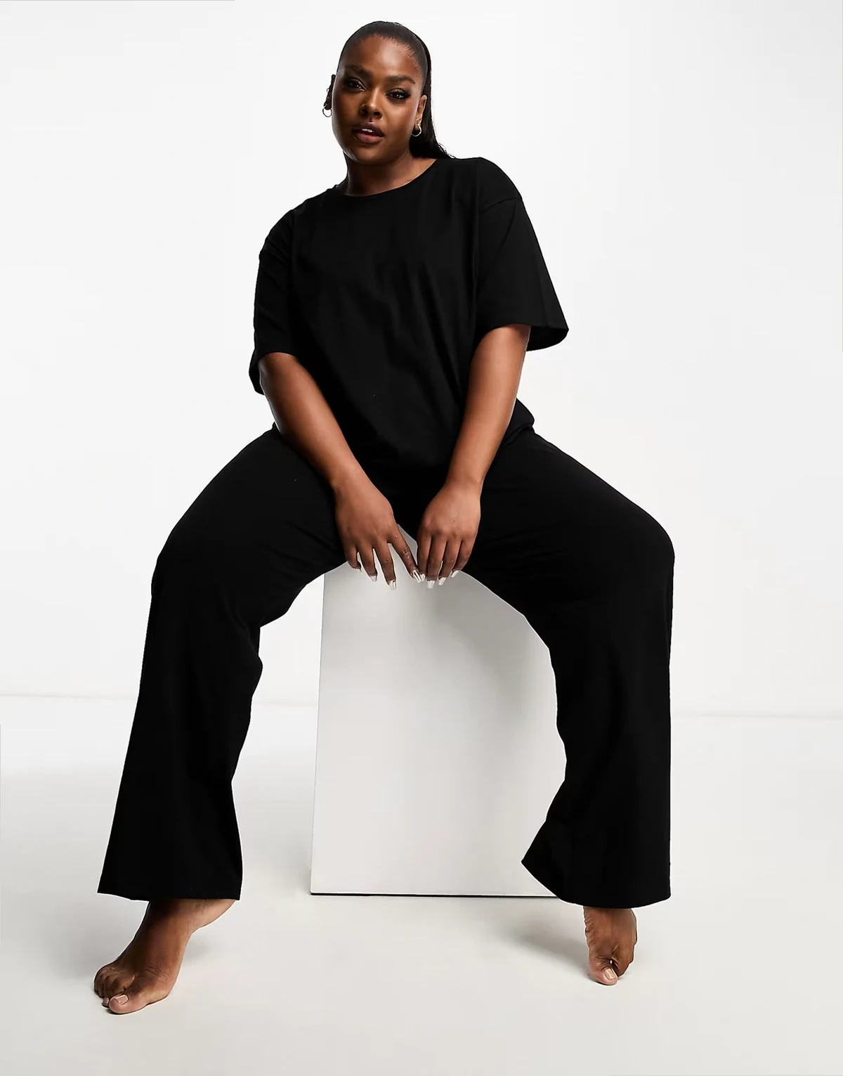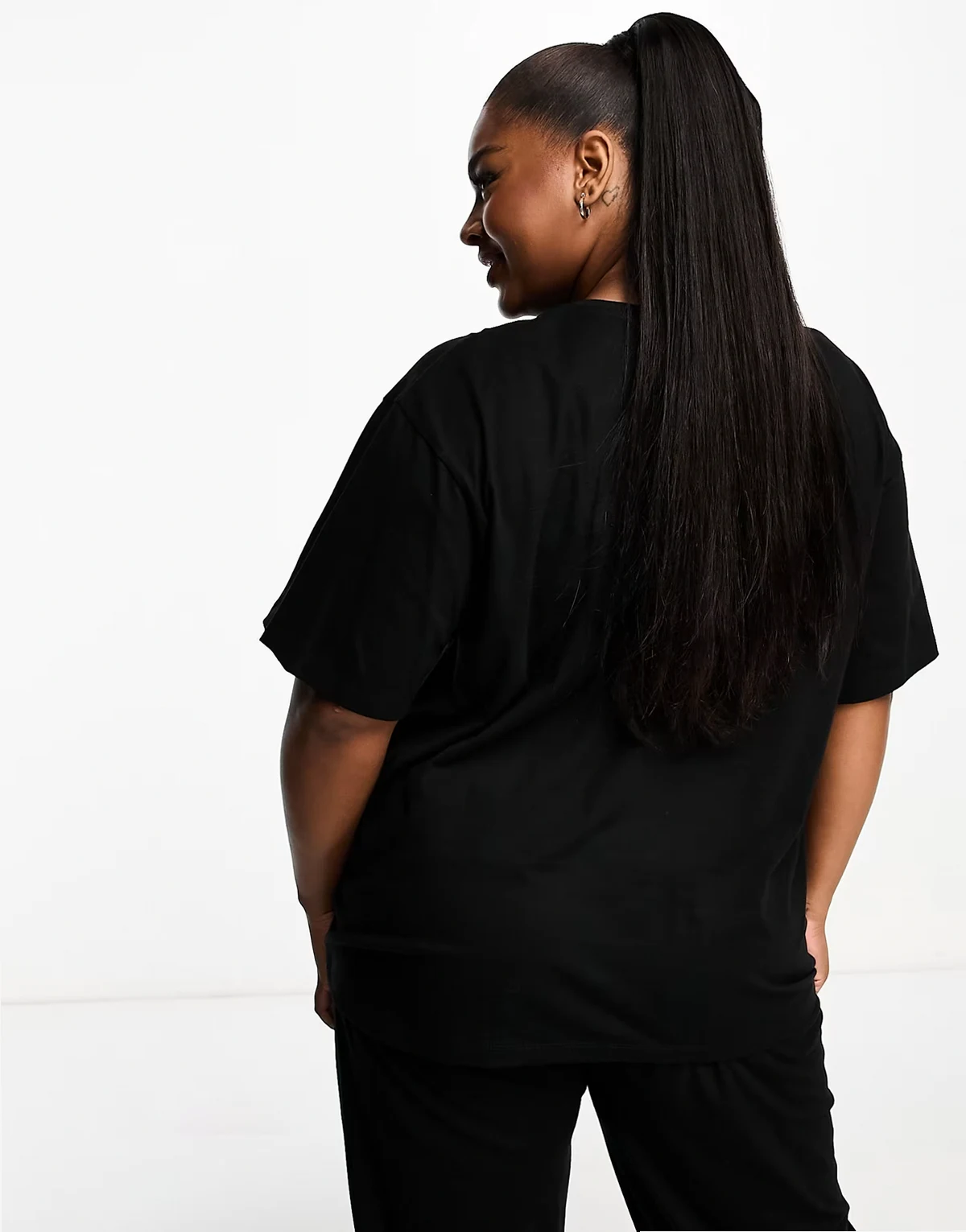 ASOS DESIGN Curve – Mieszaj i łącz – Czarny bawełniany T-shirt oversize od piżamy
