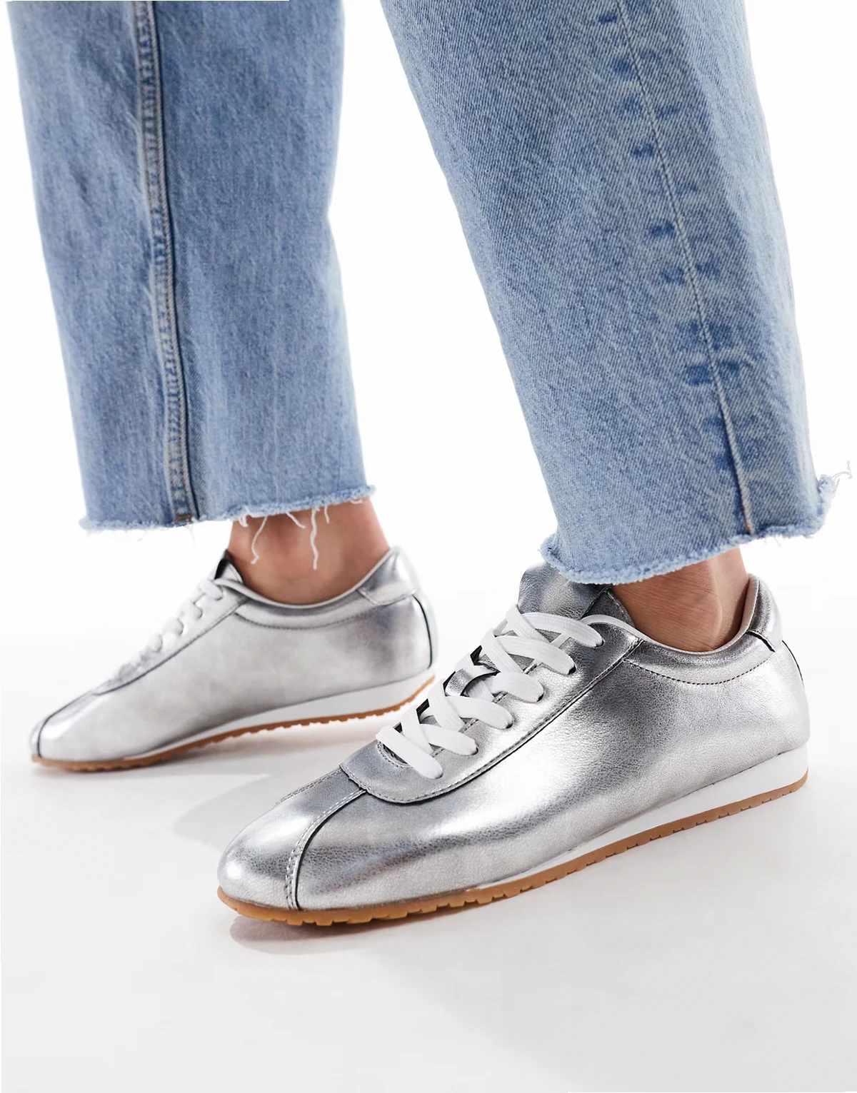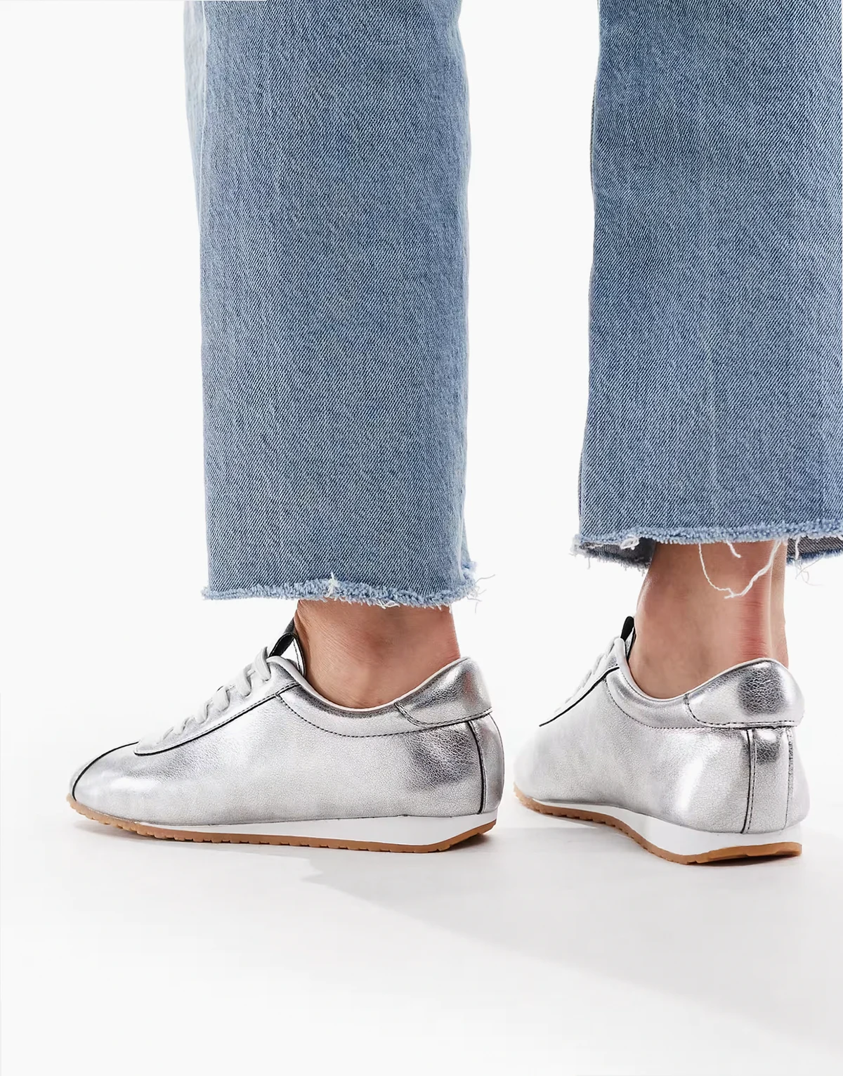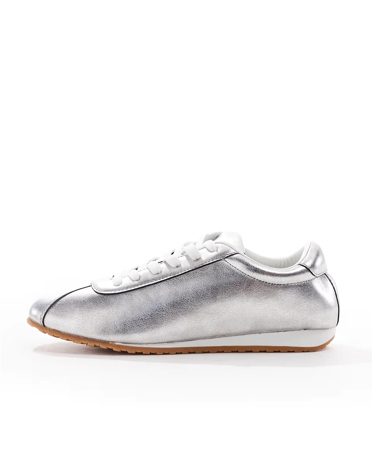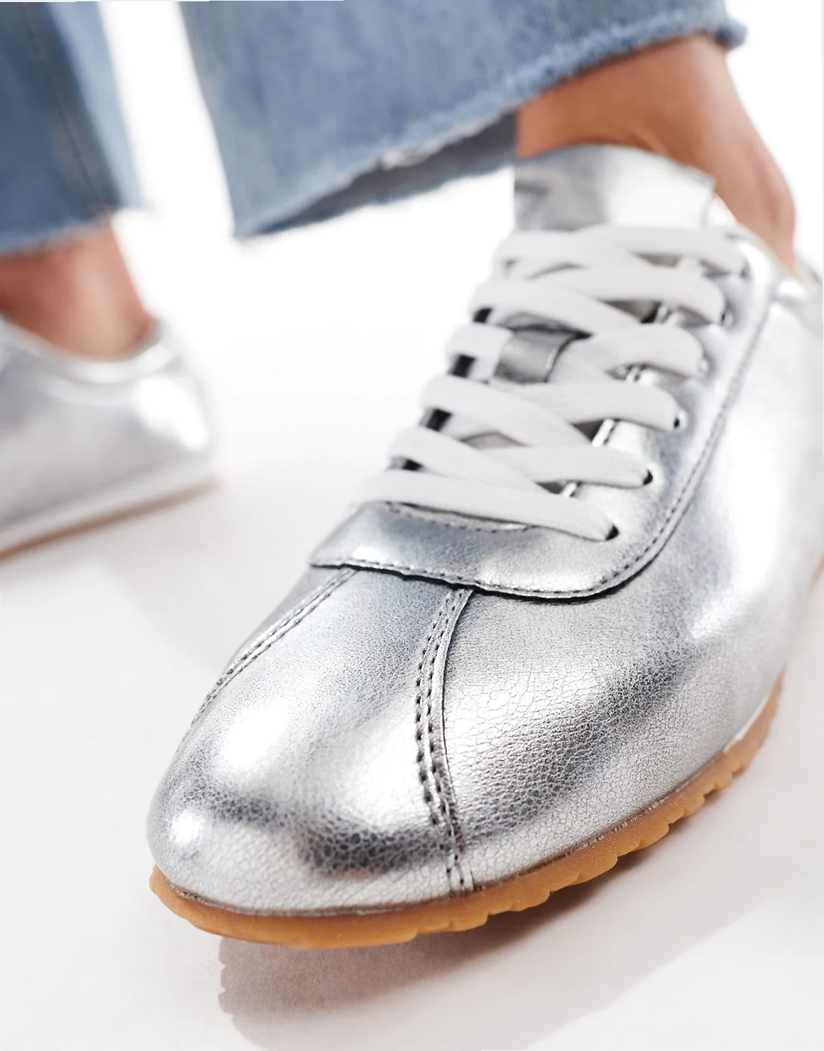 – Drifter – Srebrne foliowe buty sznurowane na gumowej podeszwie