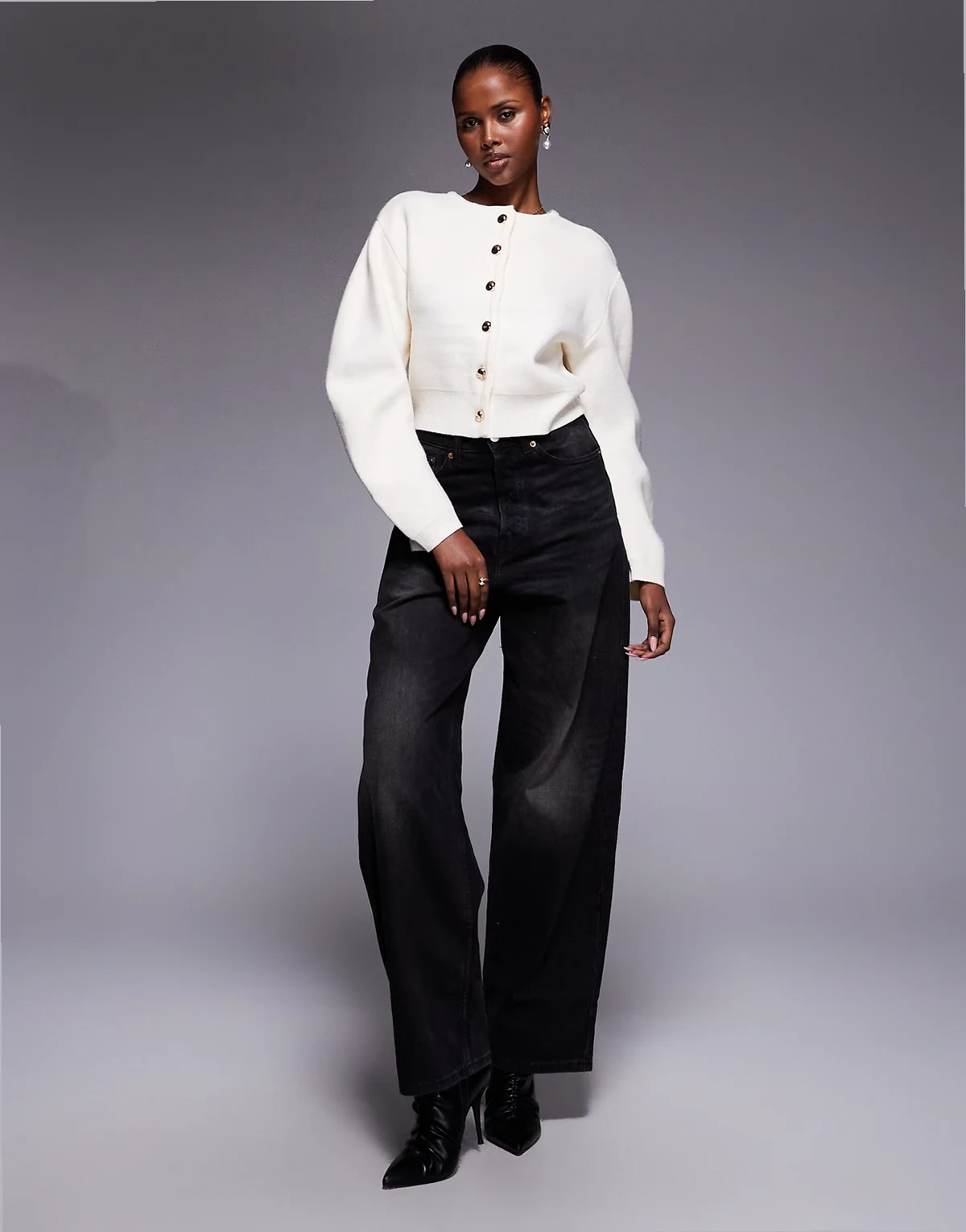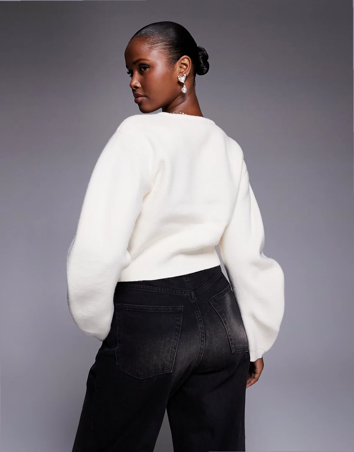 – Kremowy kardigan z formowanymi rękawami