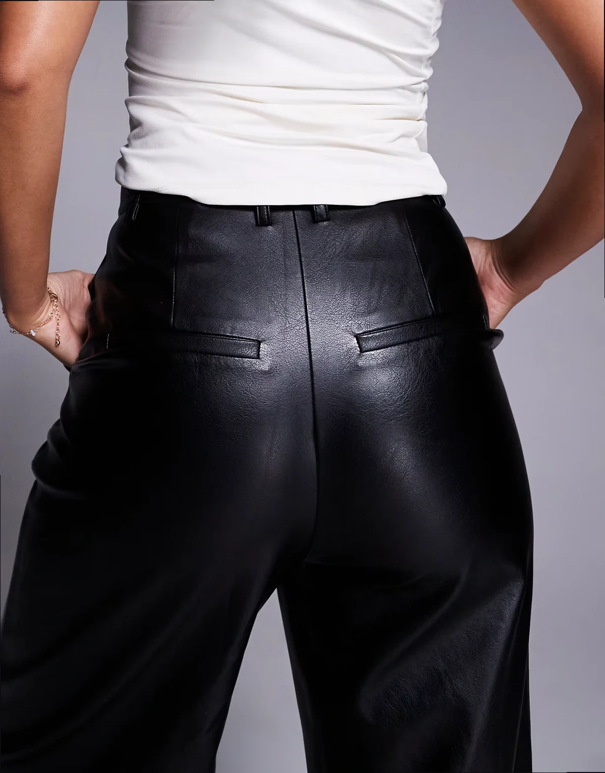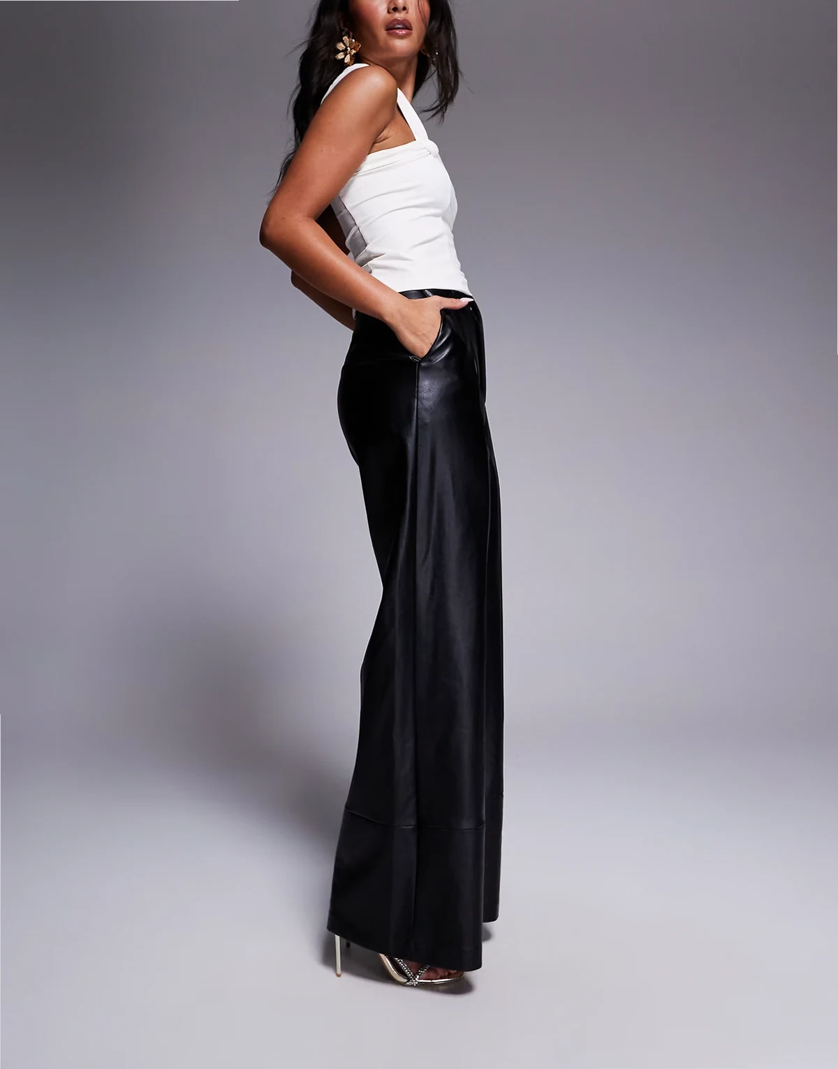 – Marlow – Czarne spodnie z szerokimi nogawkami z poliuretanu