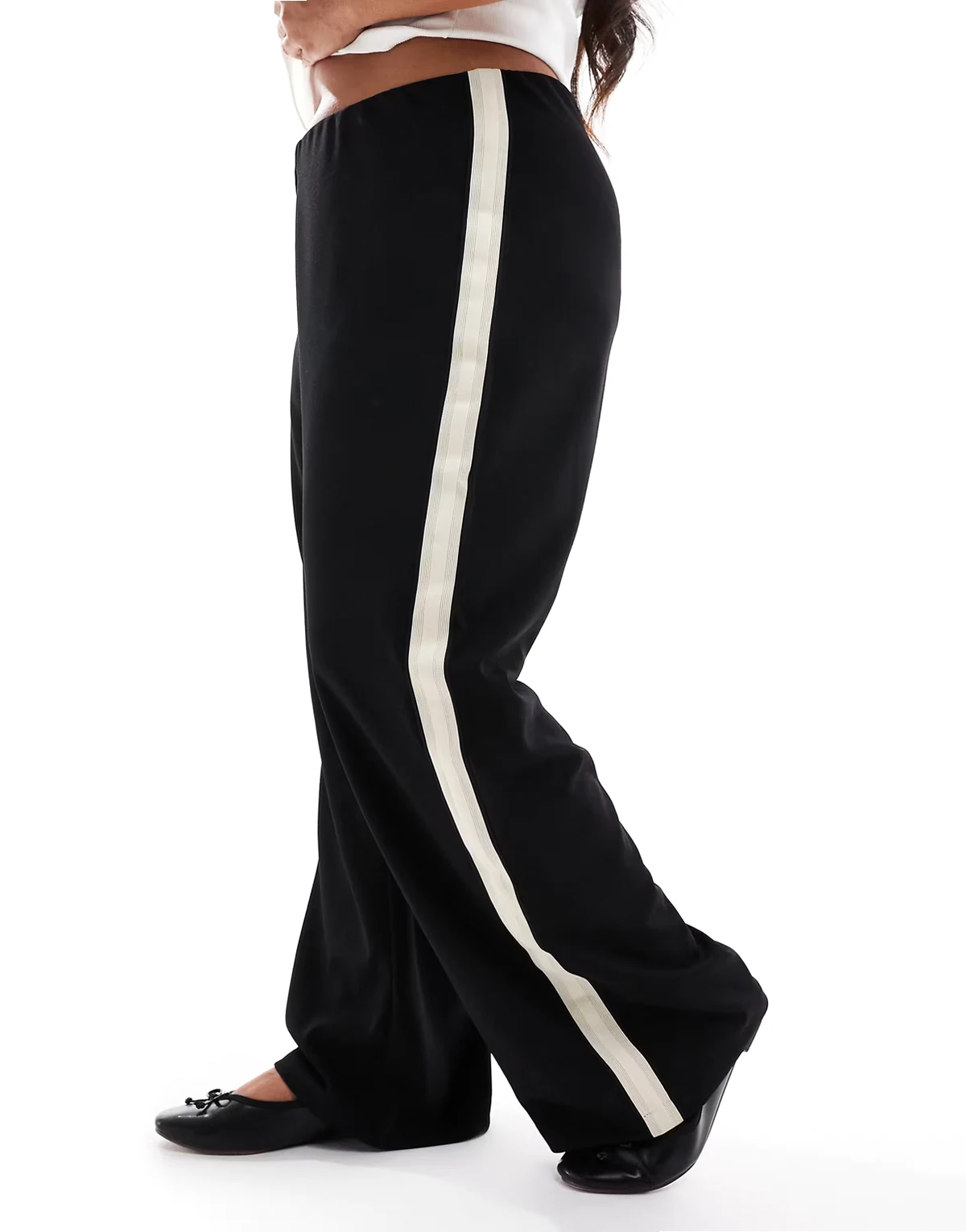– Czarne, luźne spodnie wciągane z lampasami