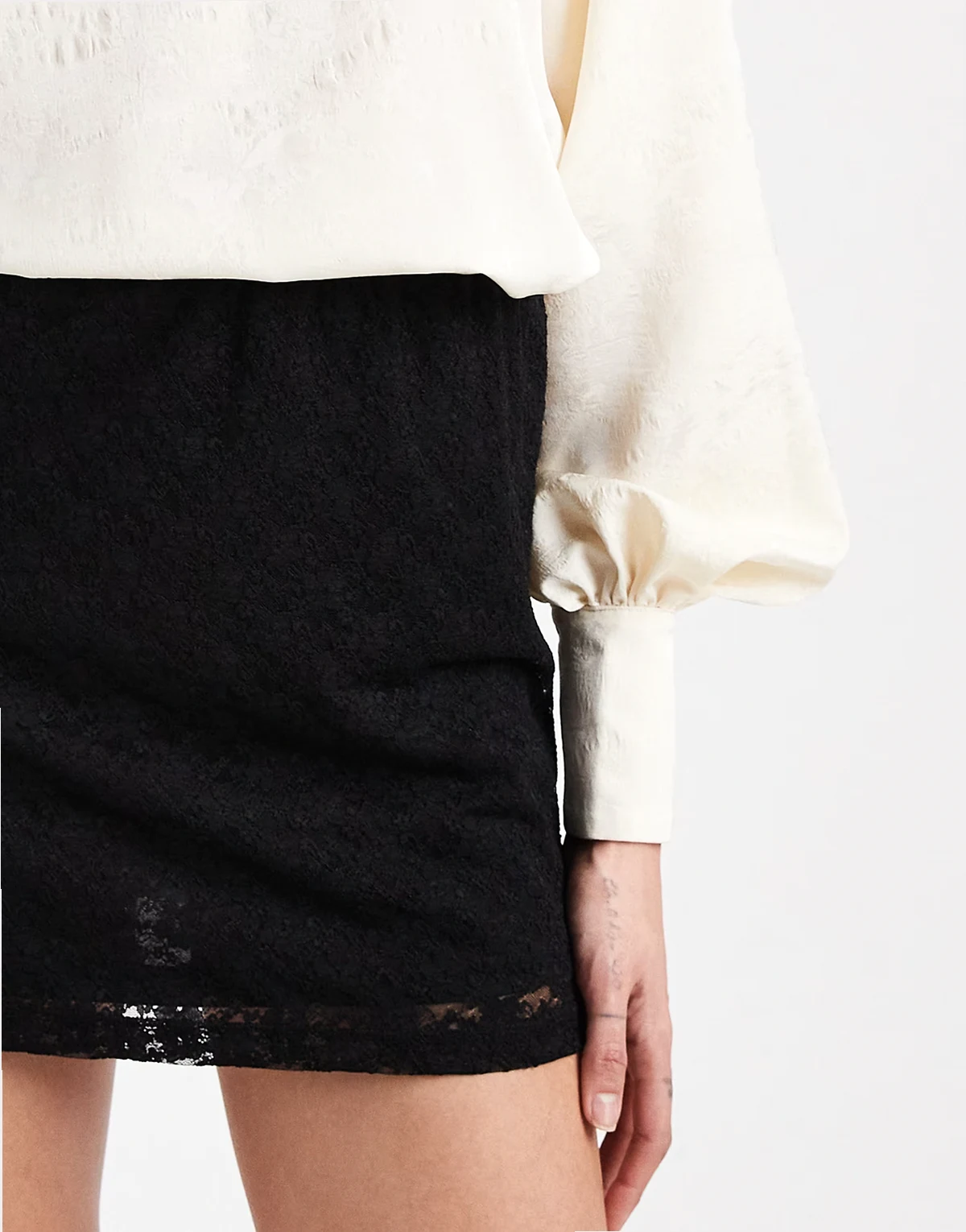 Koronka: delikatny, ozdobny, dzianinowy materiał z ażurowym wzorem.