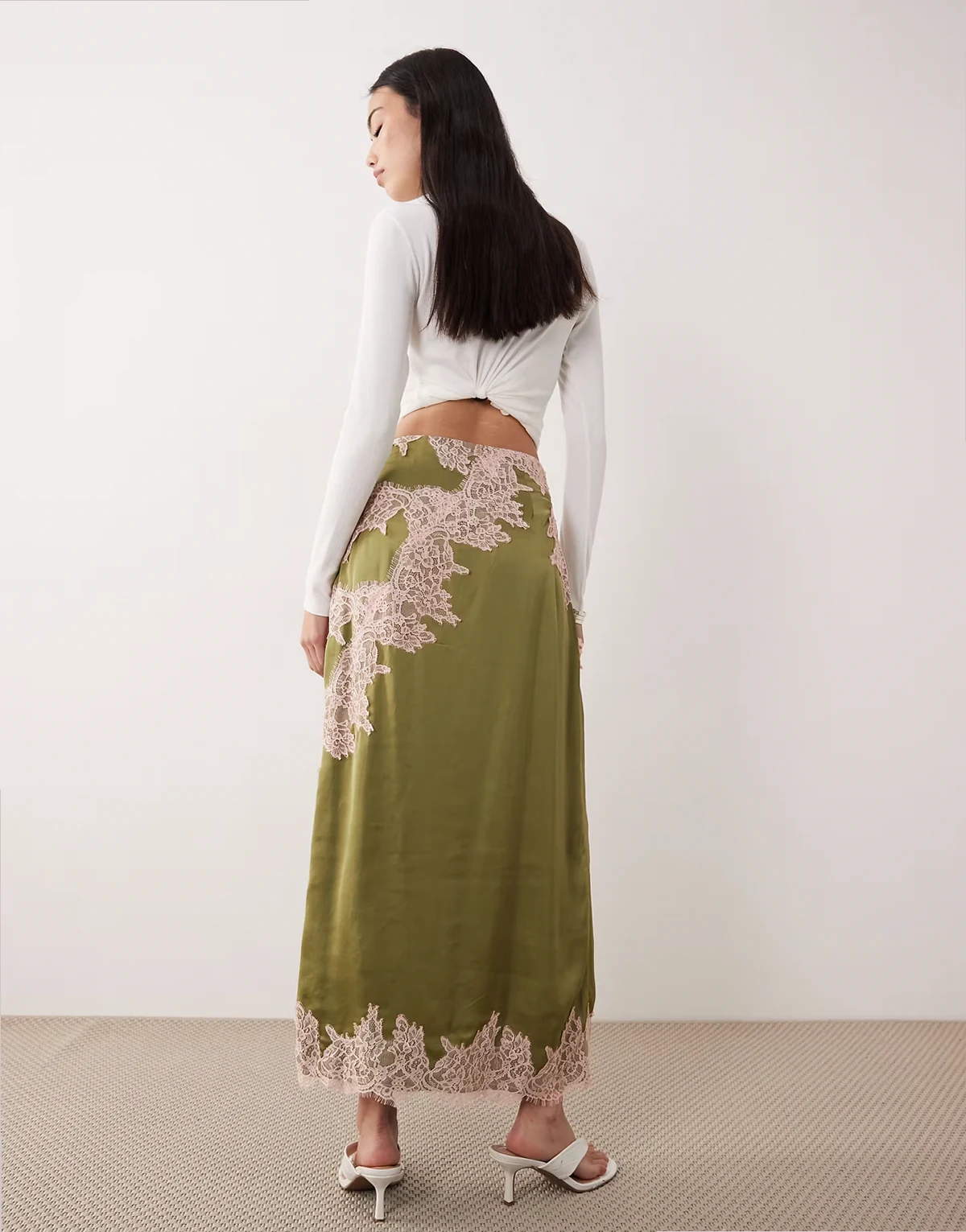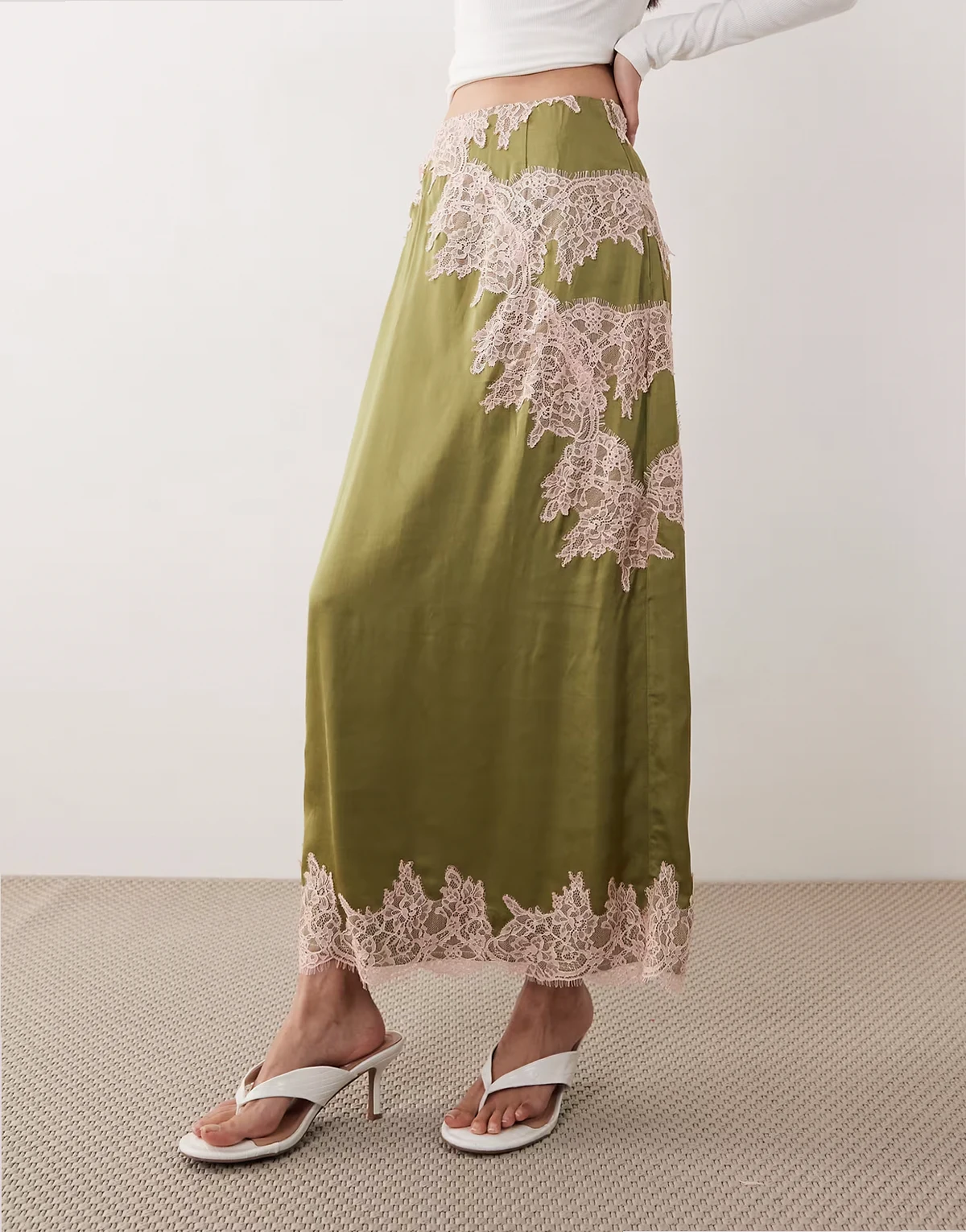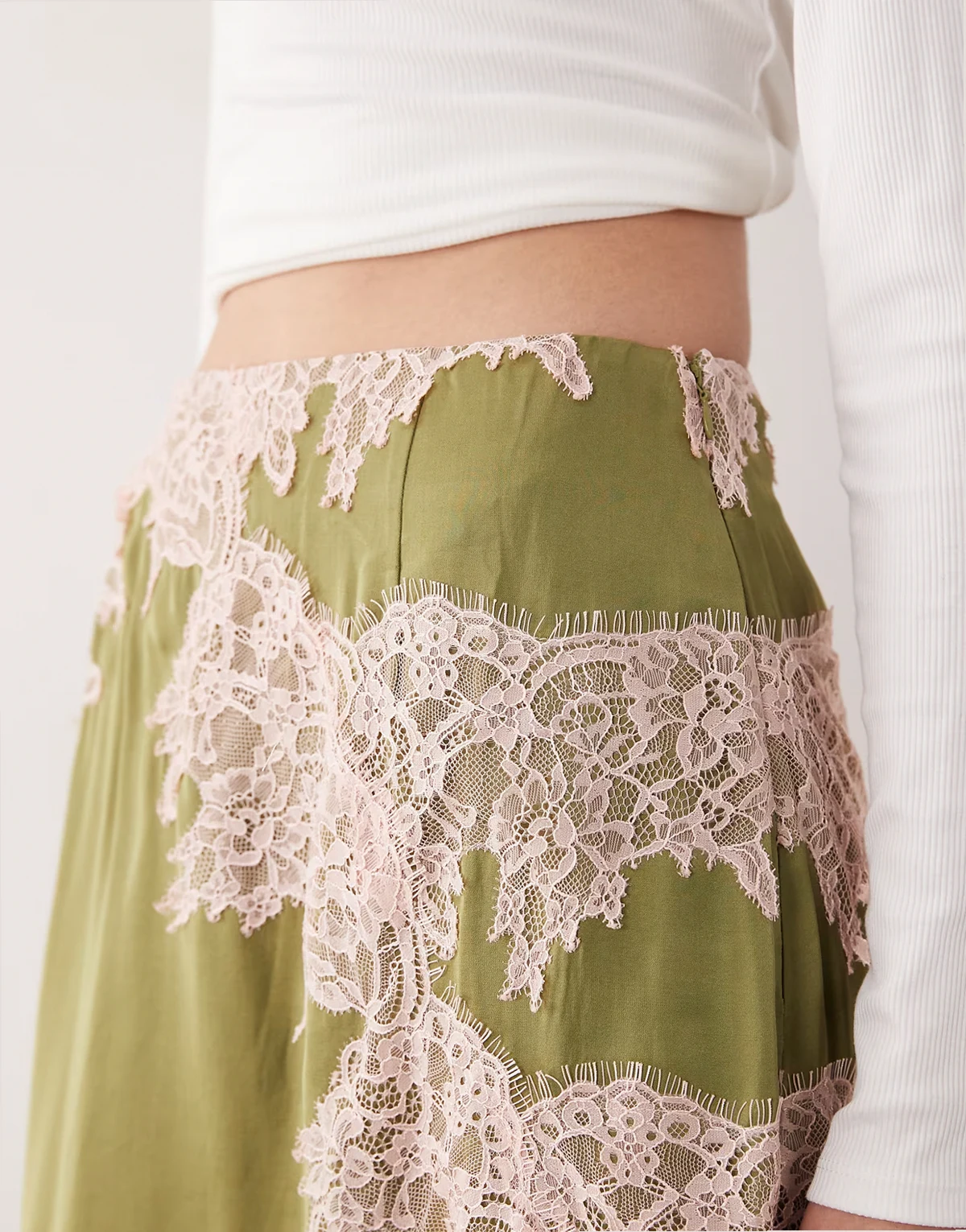 – Zielona spódnica midaxi z koronką