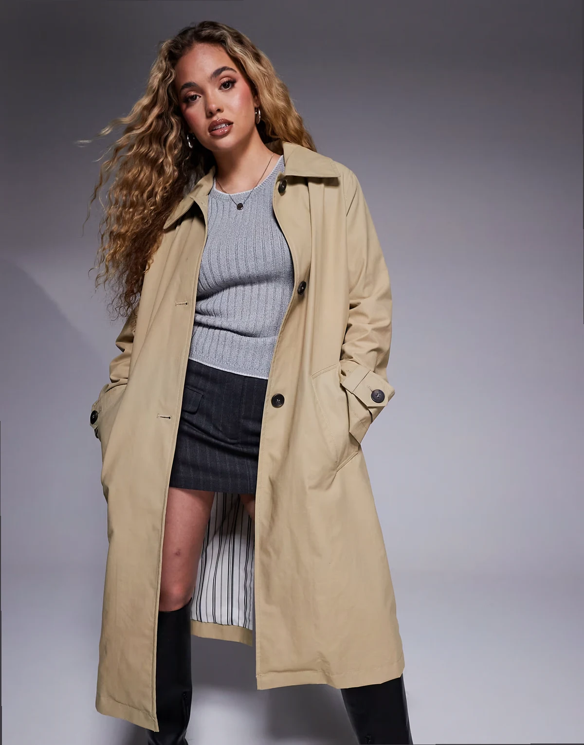– Jasnobeżowy trencz