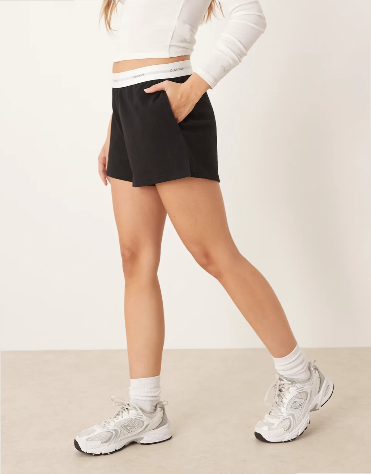 CZARNY Bawełniane szorty ze wzorem w pasy