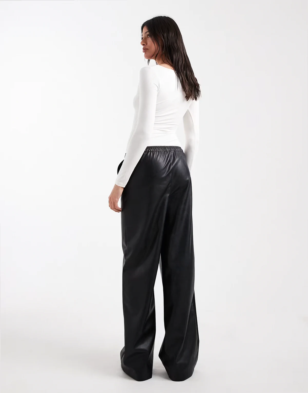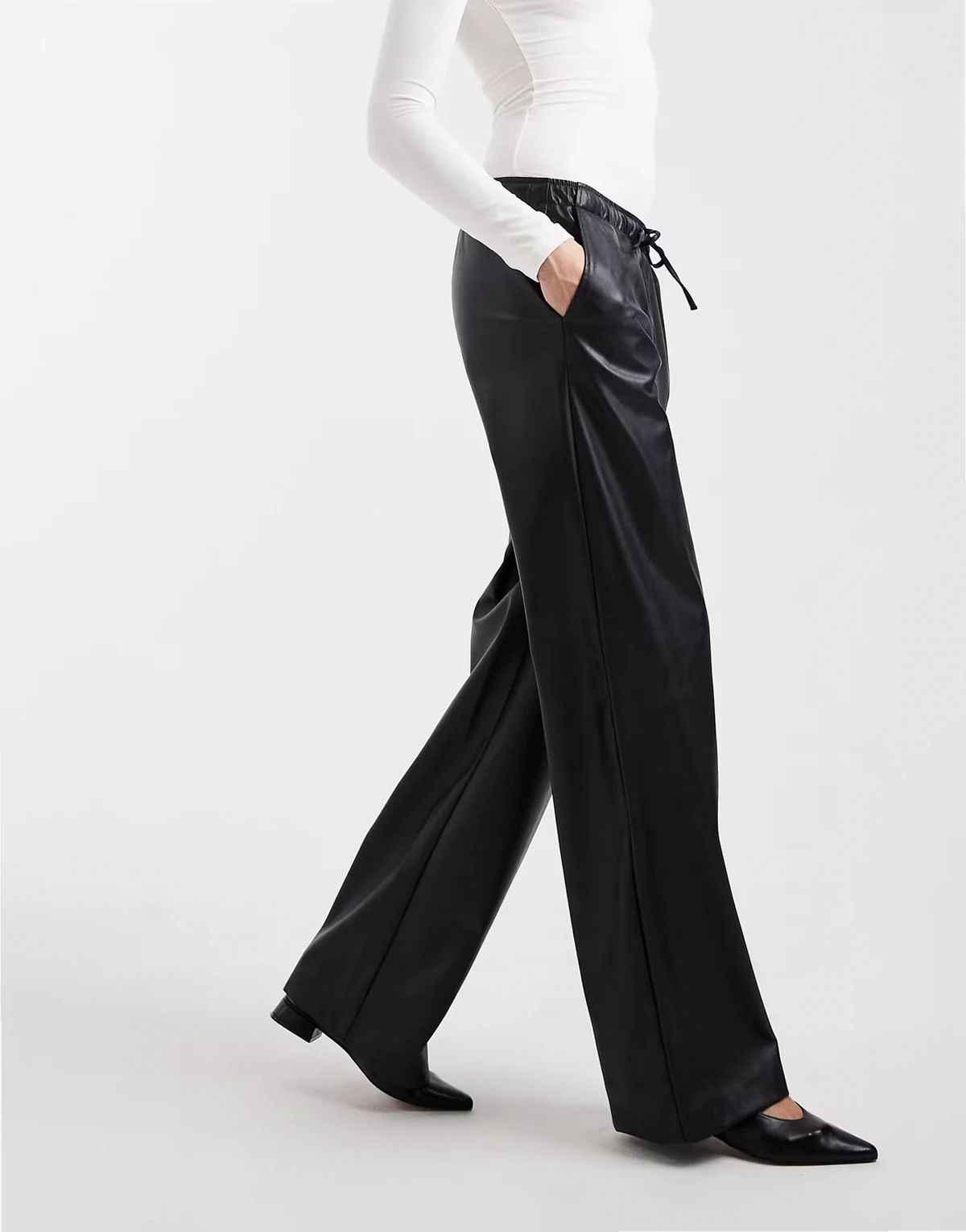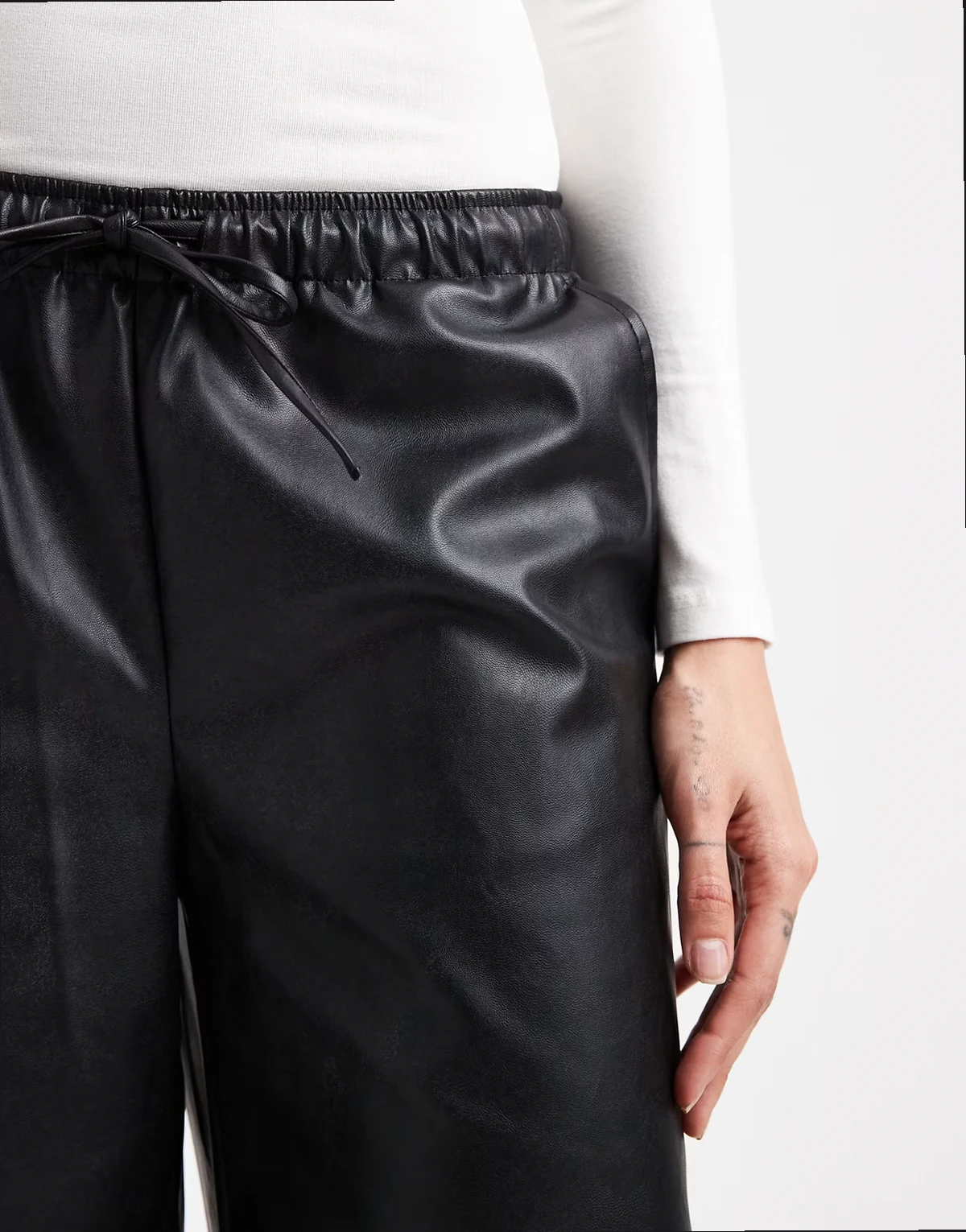 – Czarne spodnie z szerokimi nogawkami i wiązaniem w talii z imitacji skóry