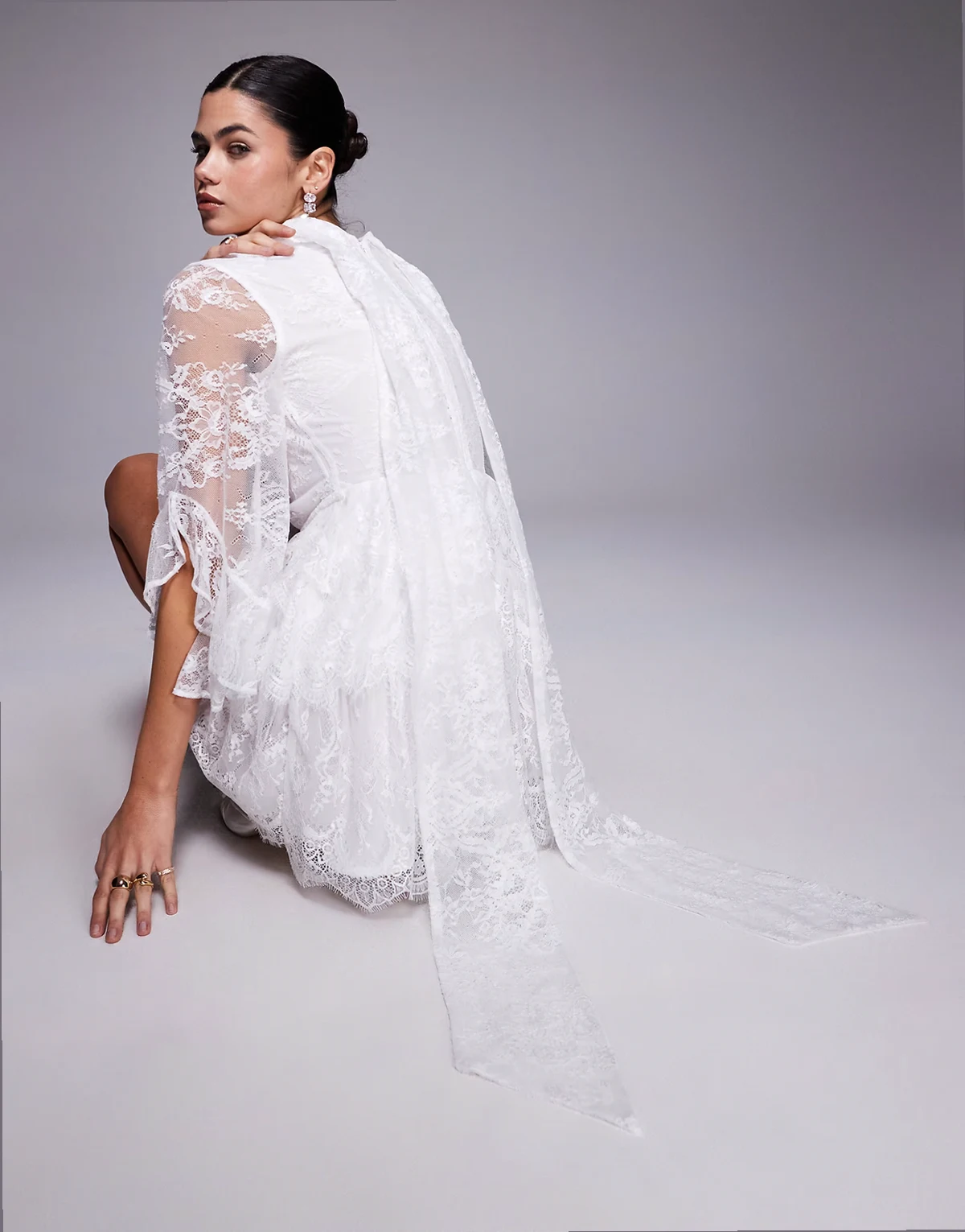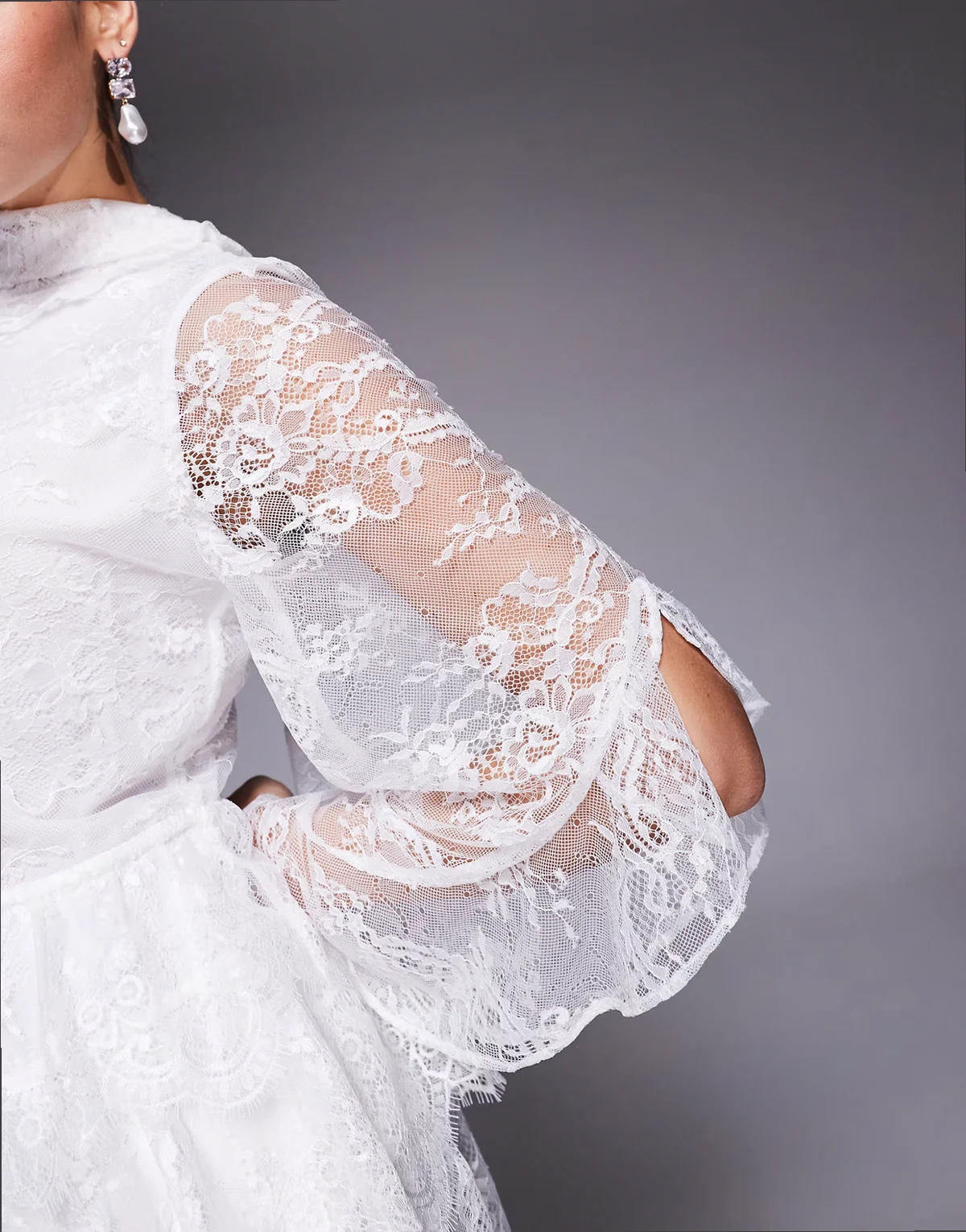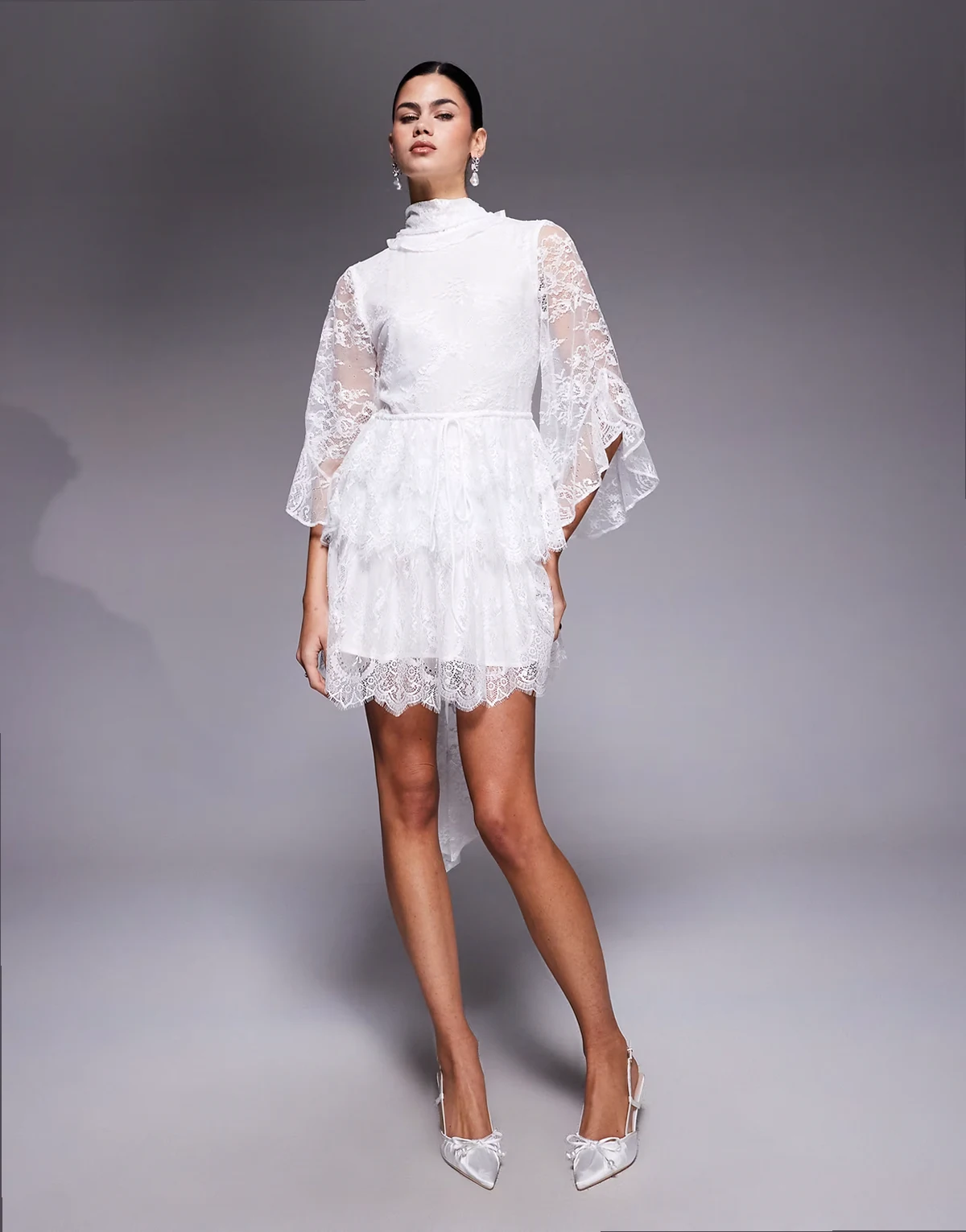 4. – Biała koronkowa sukienka mini z zabudowanym dekoltem z szalikiem
