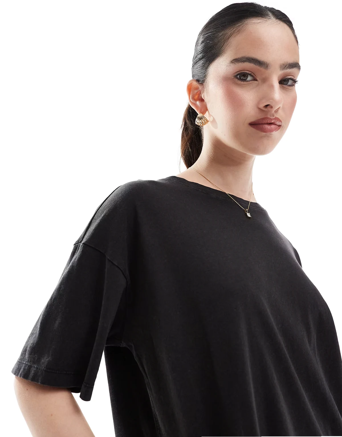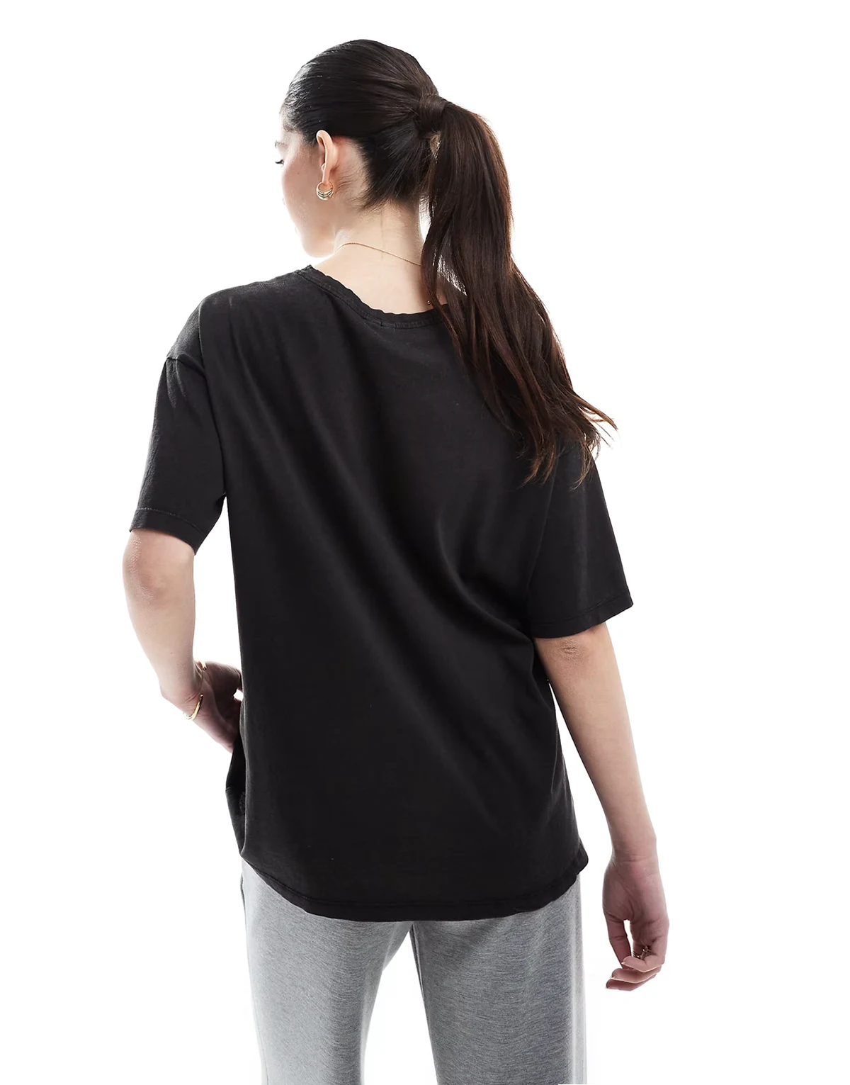 – T-shirt oversize w spranym czarnym kolorze