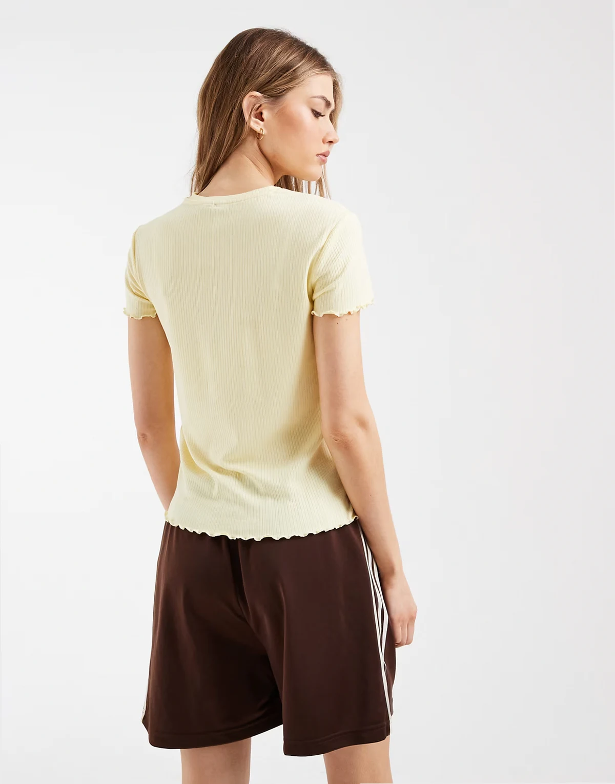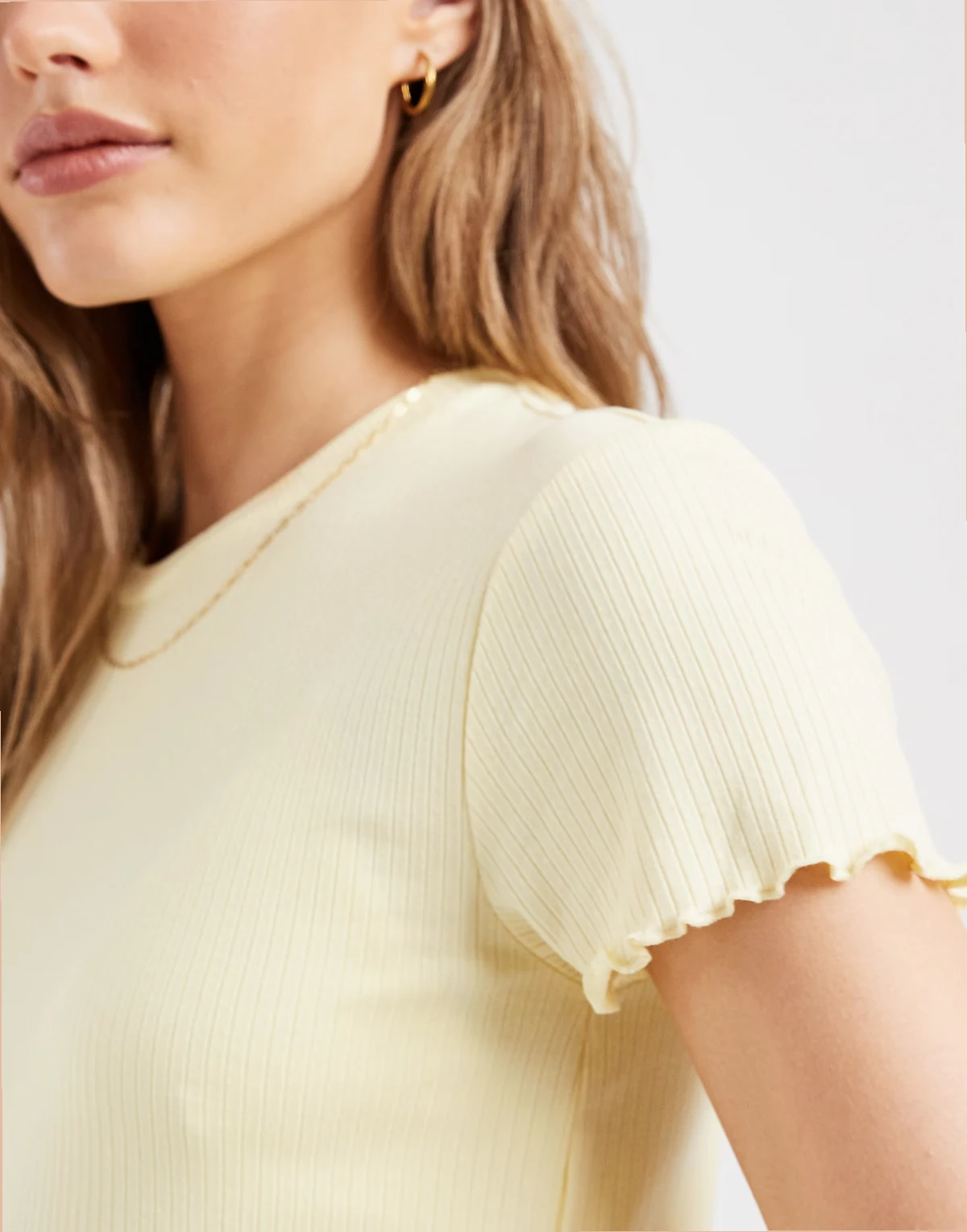 – Jasnożółty T-shirt z karbowanym brzegiem