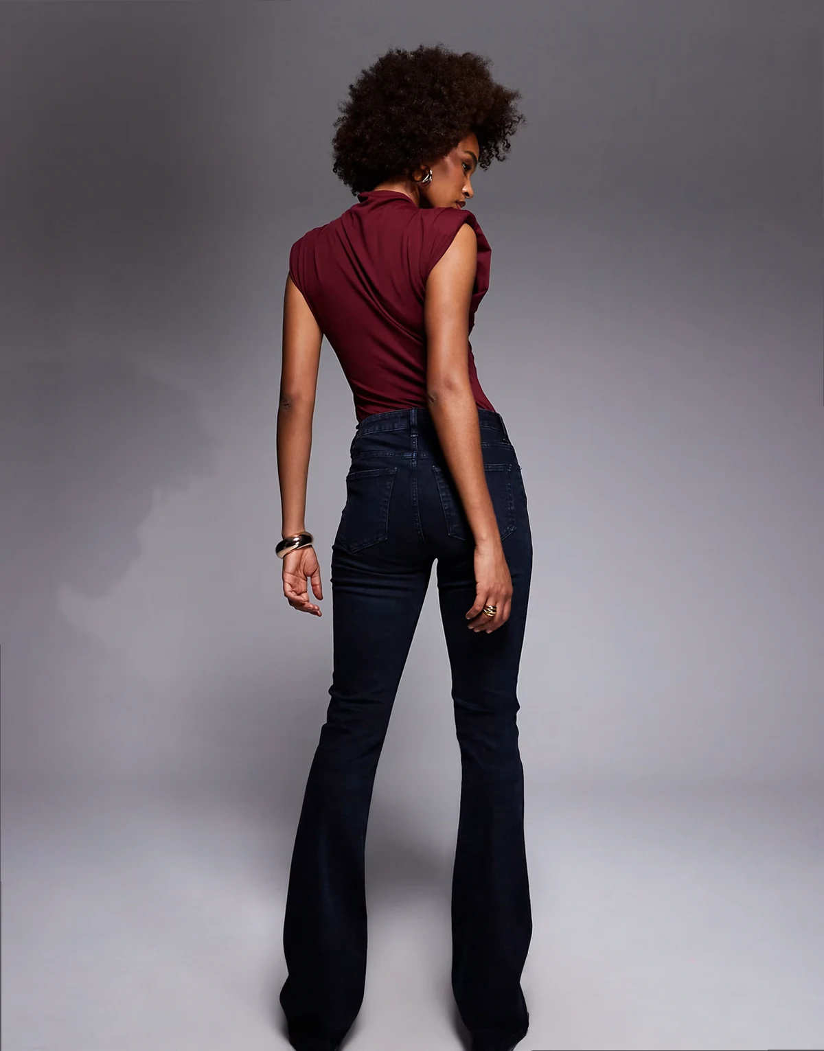 Obcisły krój z rozszerzanymi nogawkami