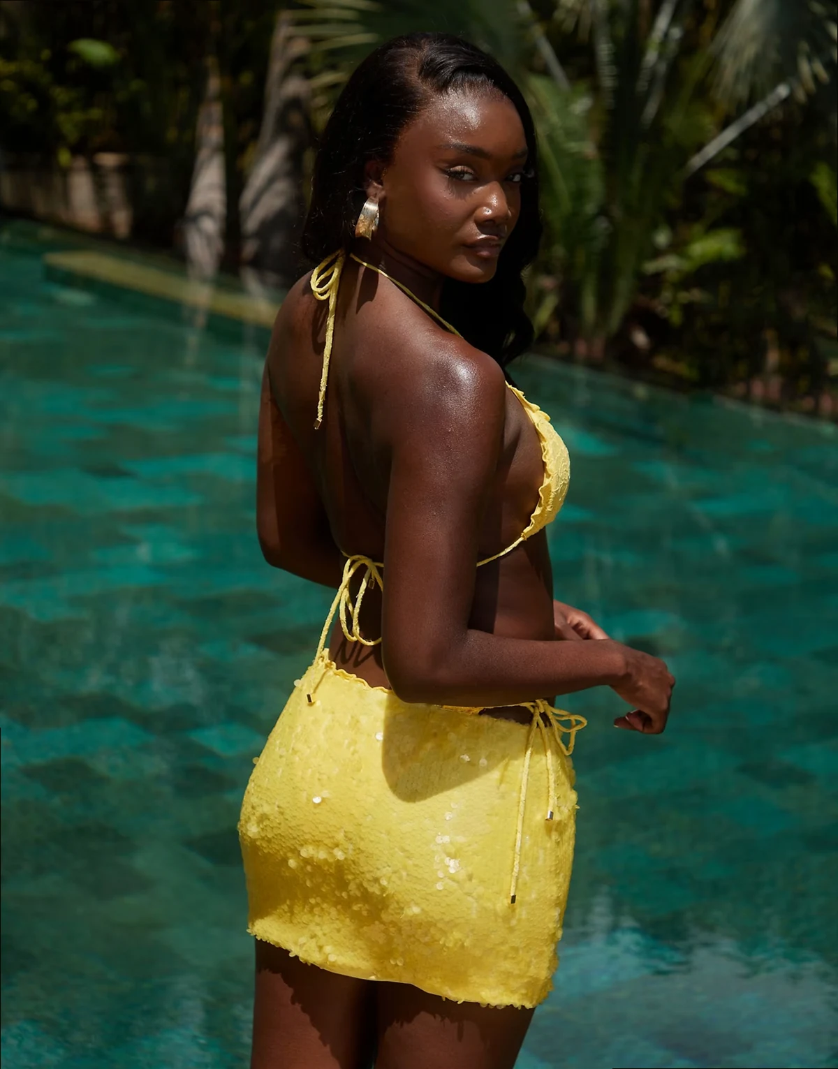 – Żółta plażowa spódnica cekinowa mini