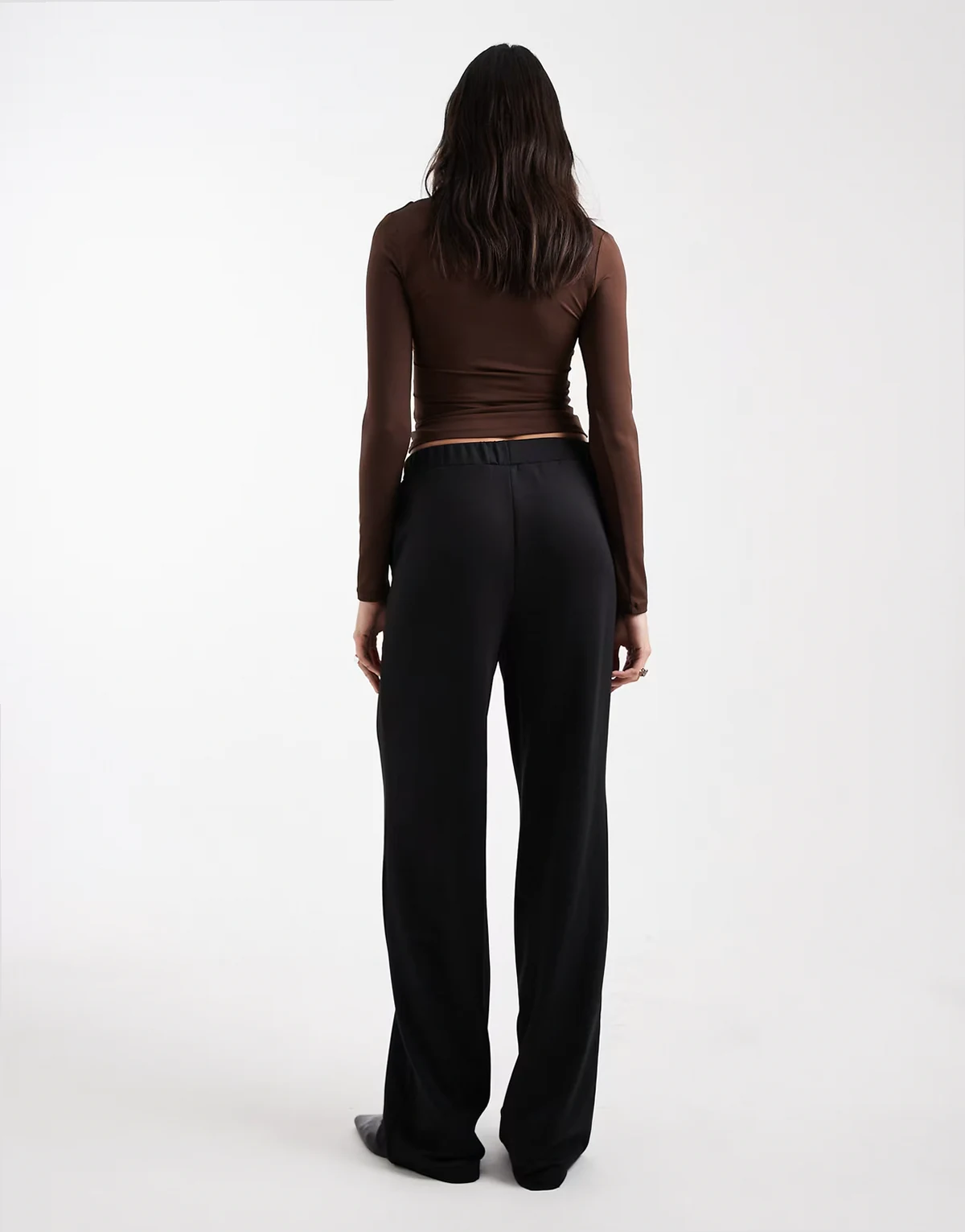 – Czarne spodnie z kokardką w pasie i wzorem w cętki