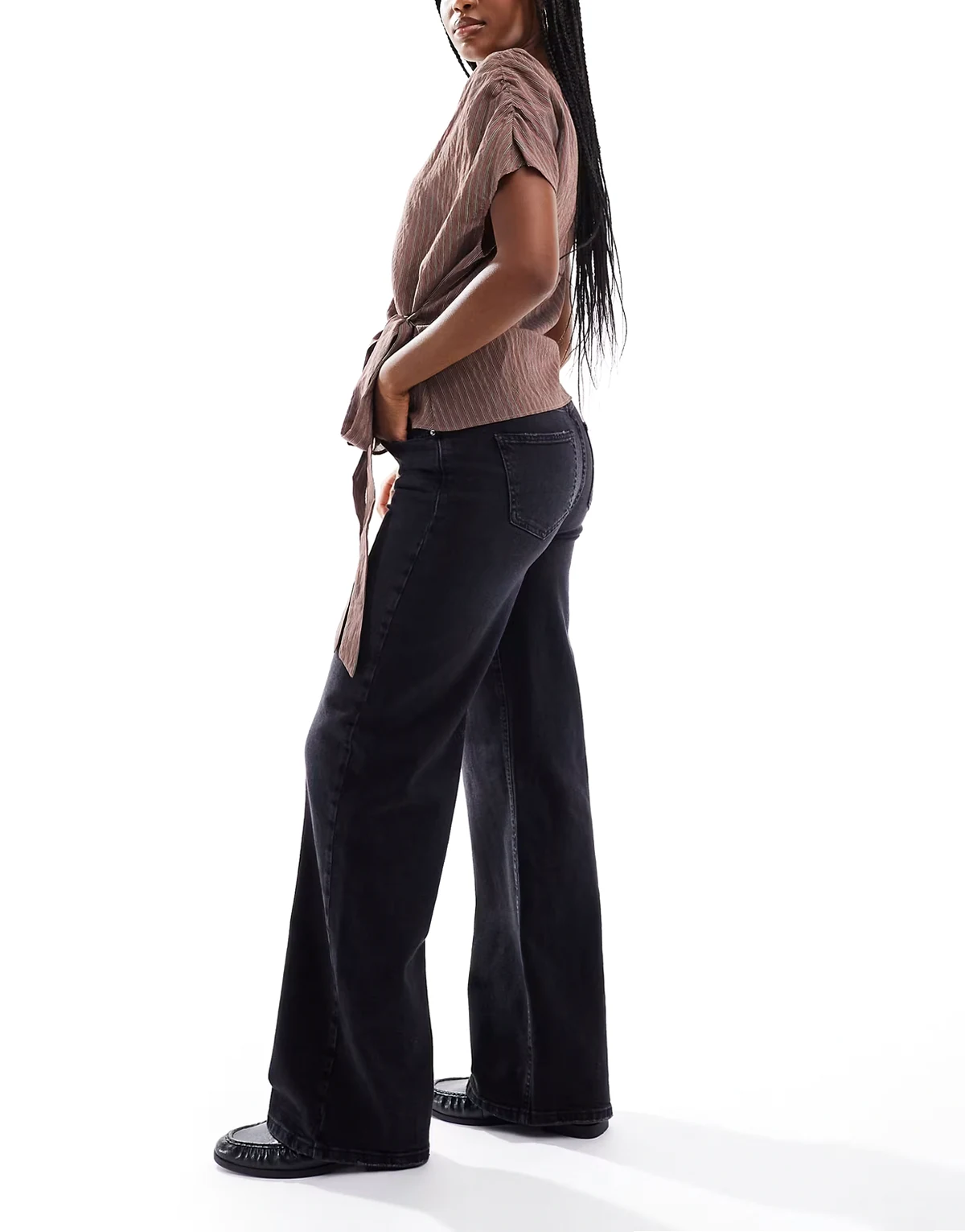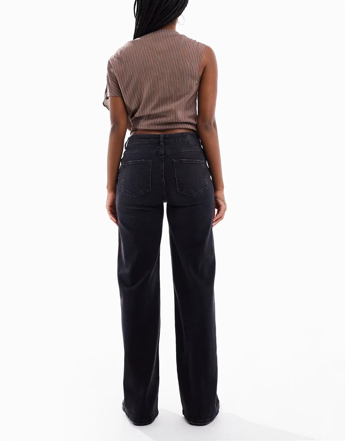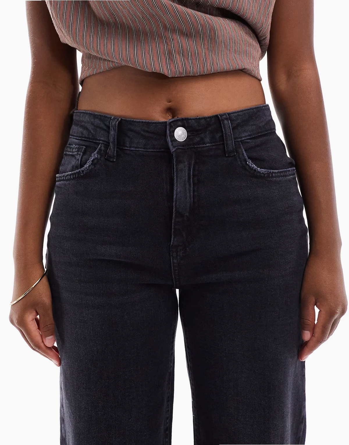 – Silke – Czarne jeansy ze średnim stanem i szerokimi nogawkami