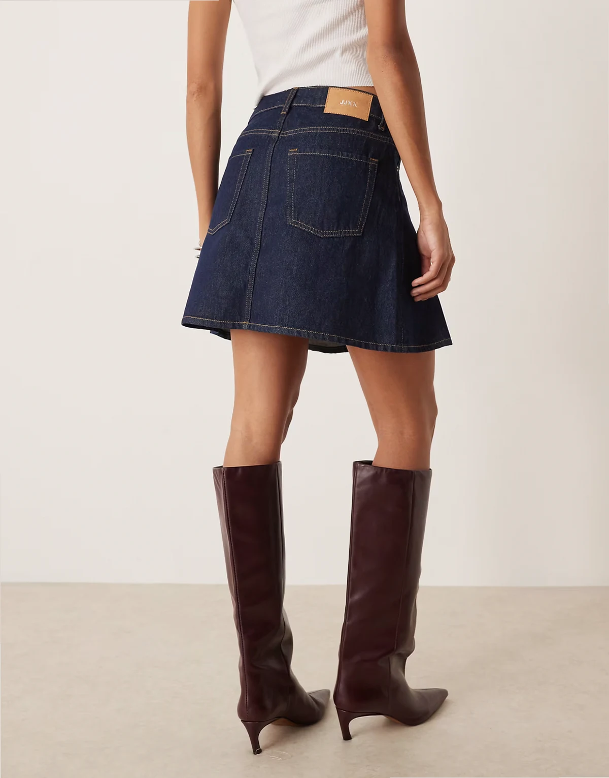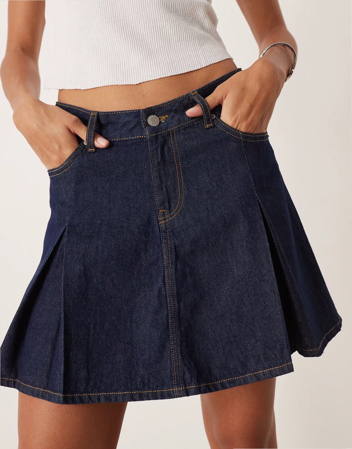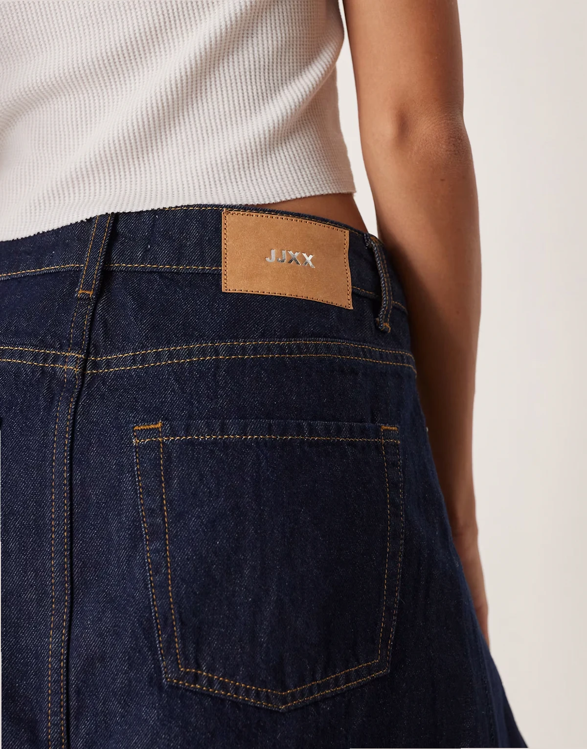 Barwiona tkanina ze skośnym splotem w kolorze indygo.