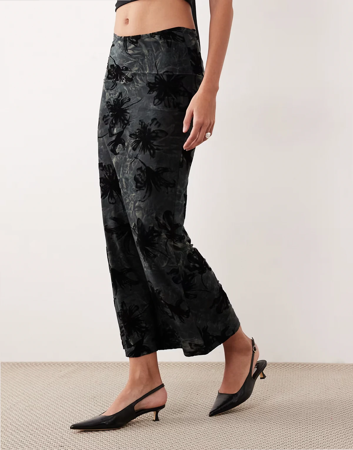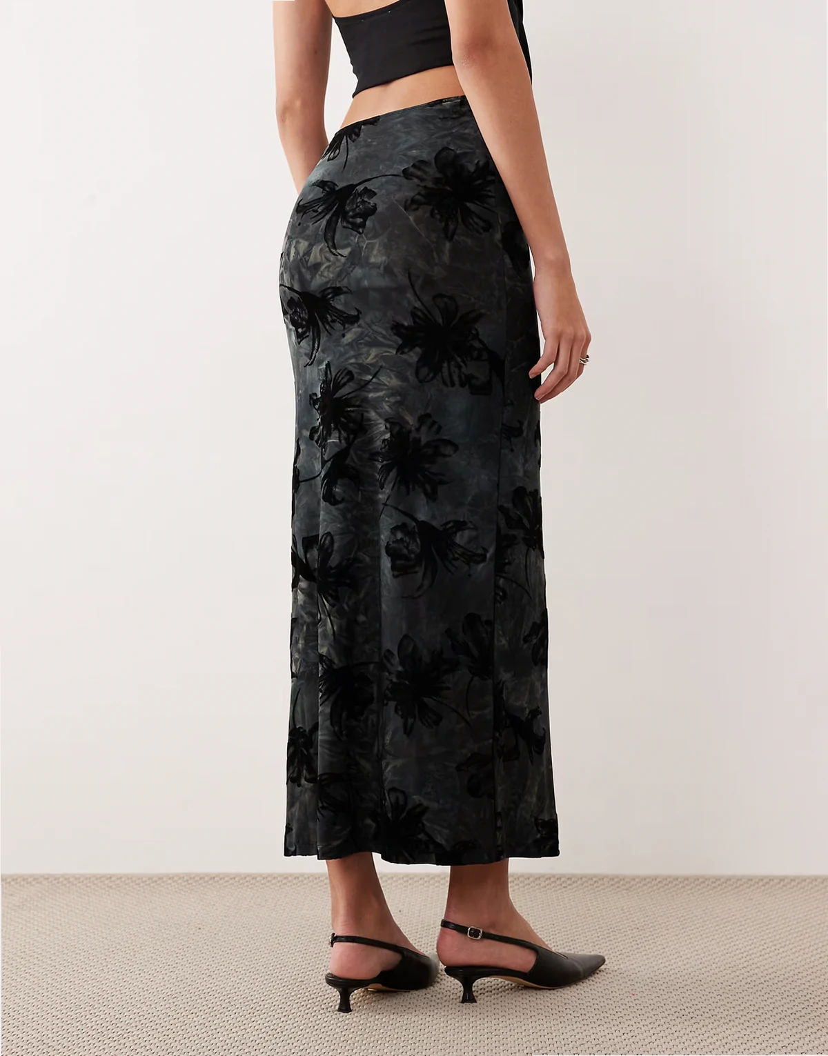 – Alfreda – Szara spódnica midaxi z aksamitnym wzorem devore