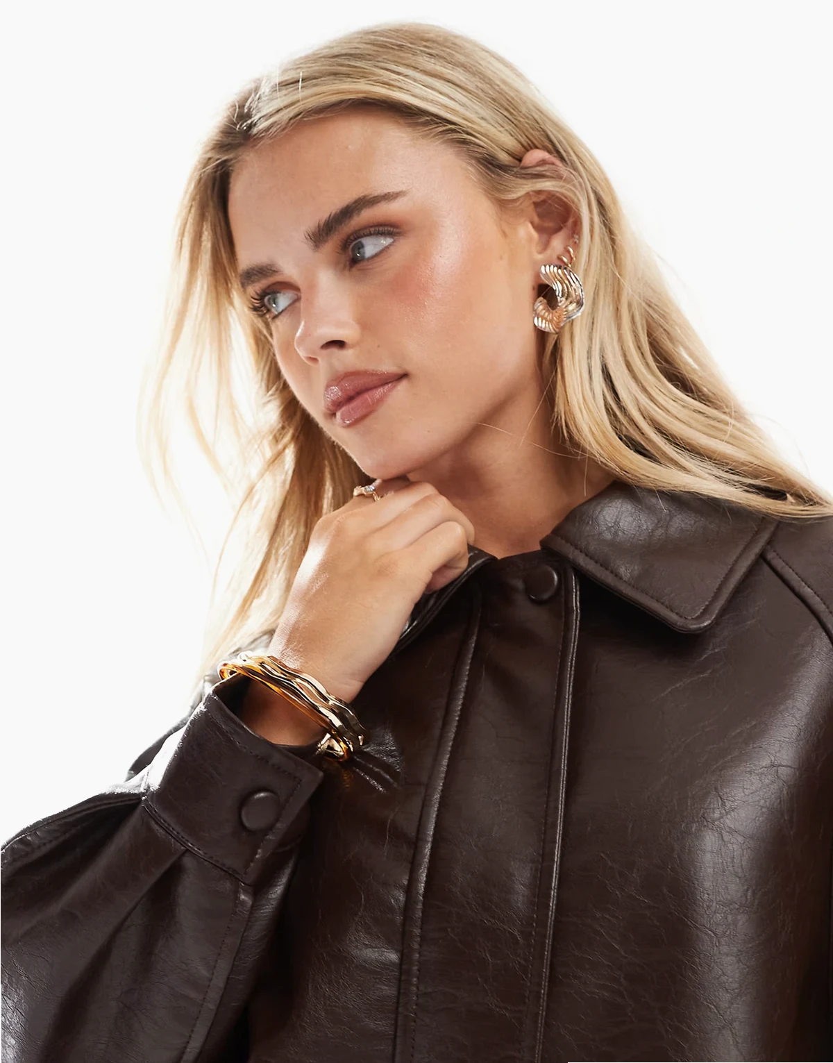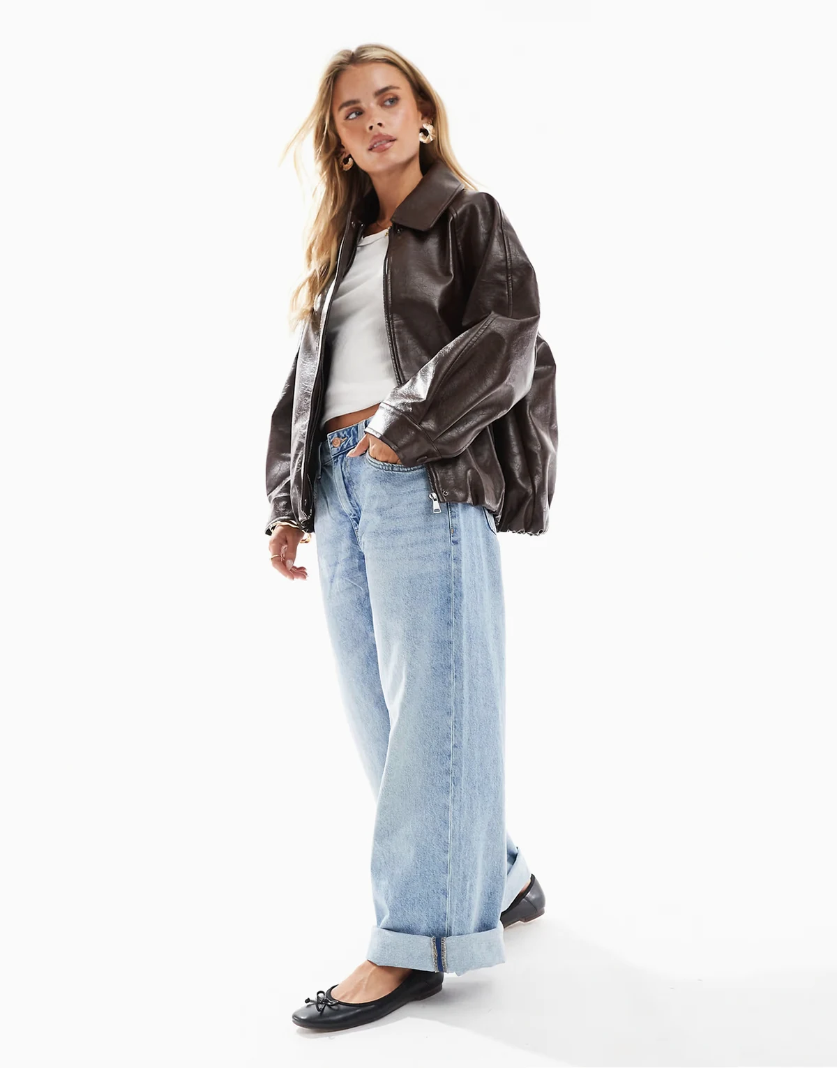 ASOS DESIGN Petite – Czekoladowa kurtka bomberka oversize z imitacji skóry