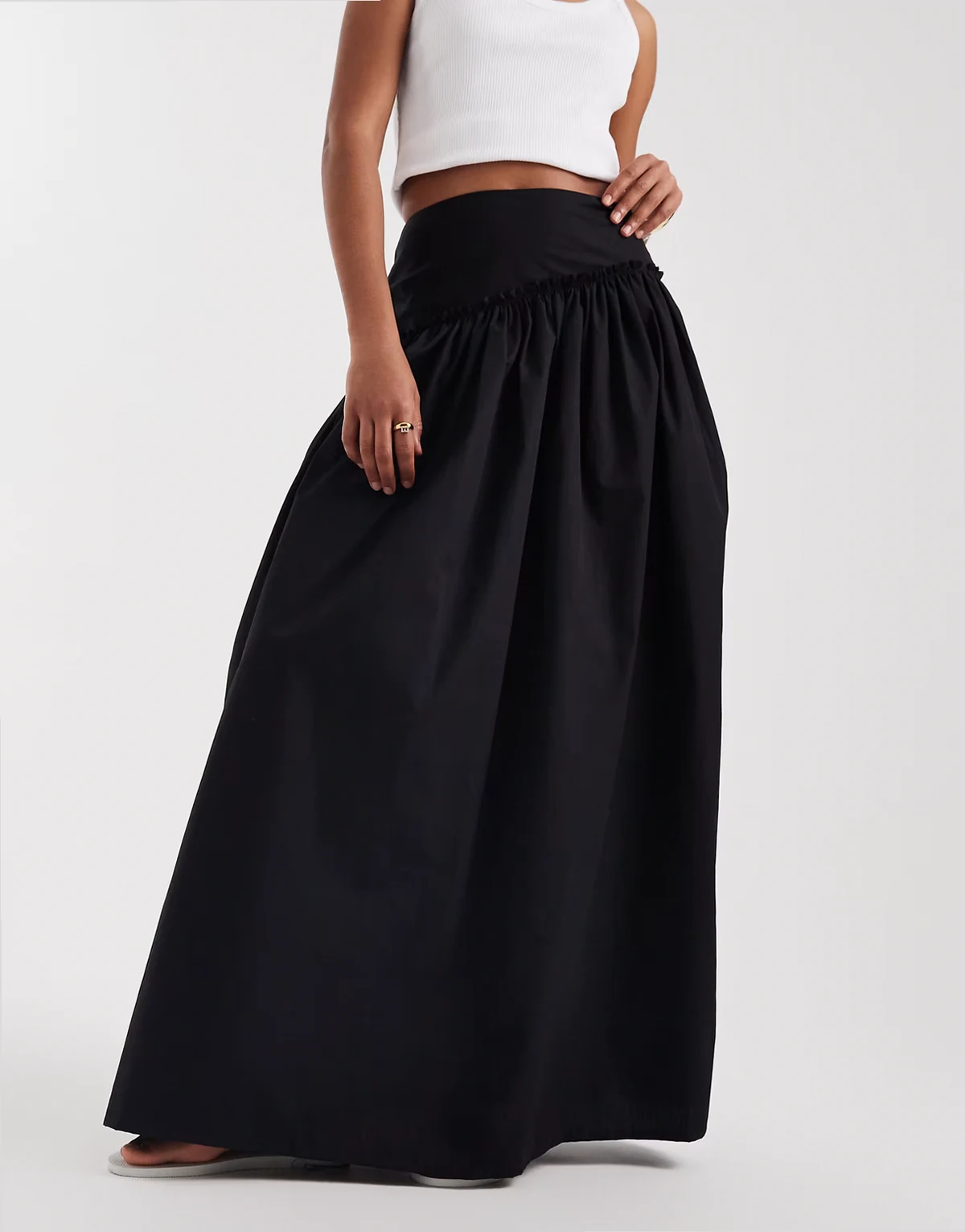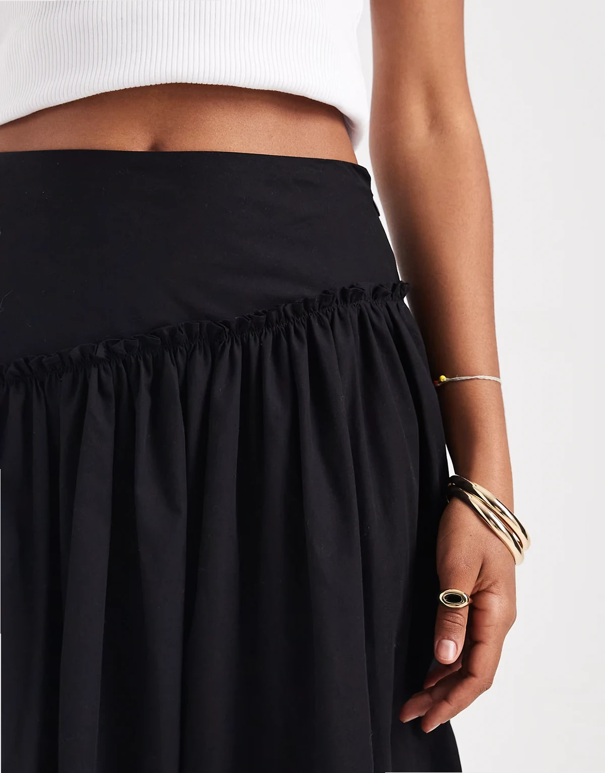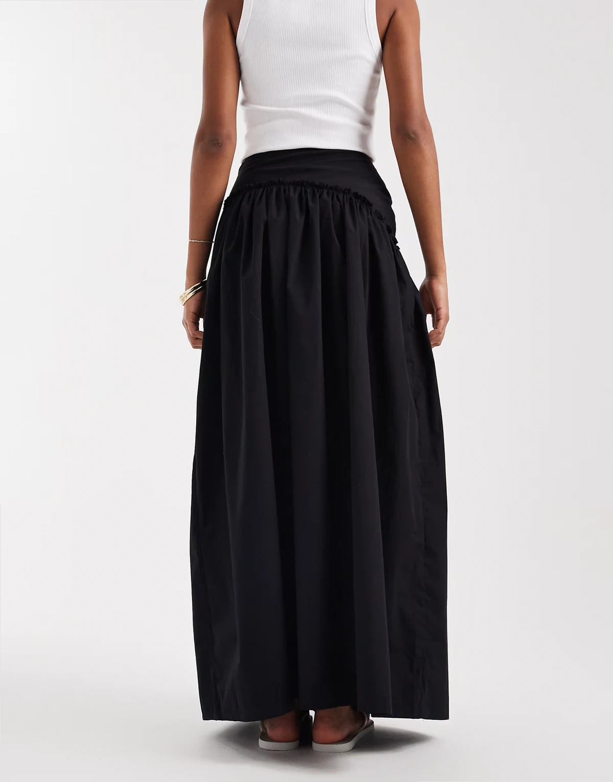 Wykończony asymetryczną falbanką