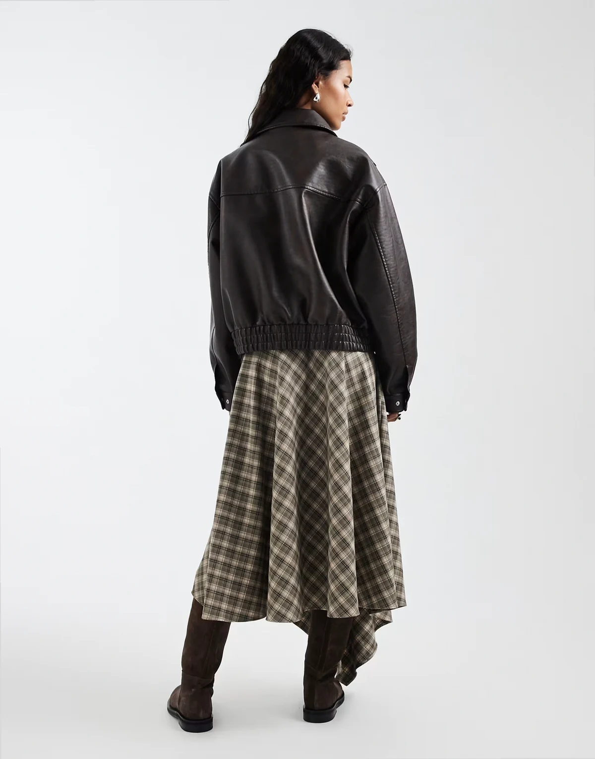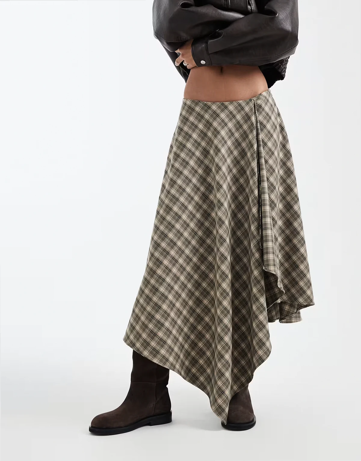 – Spódnica maxi ze zwiewnym dołem i wzorem w kratkę