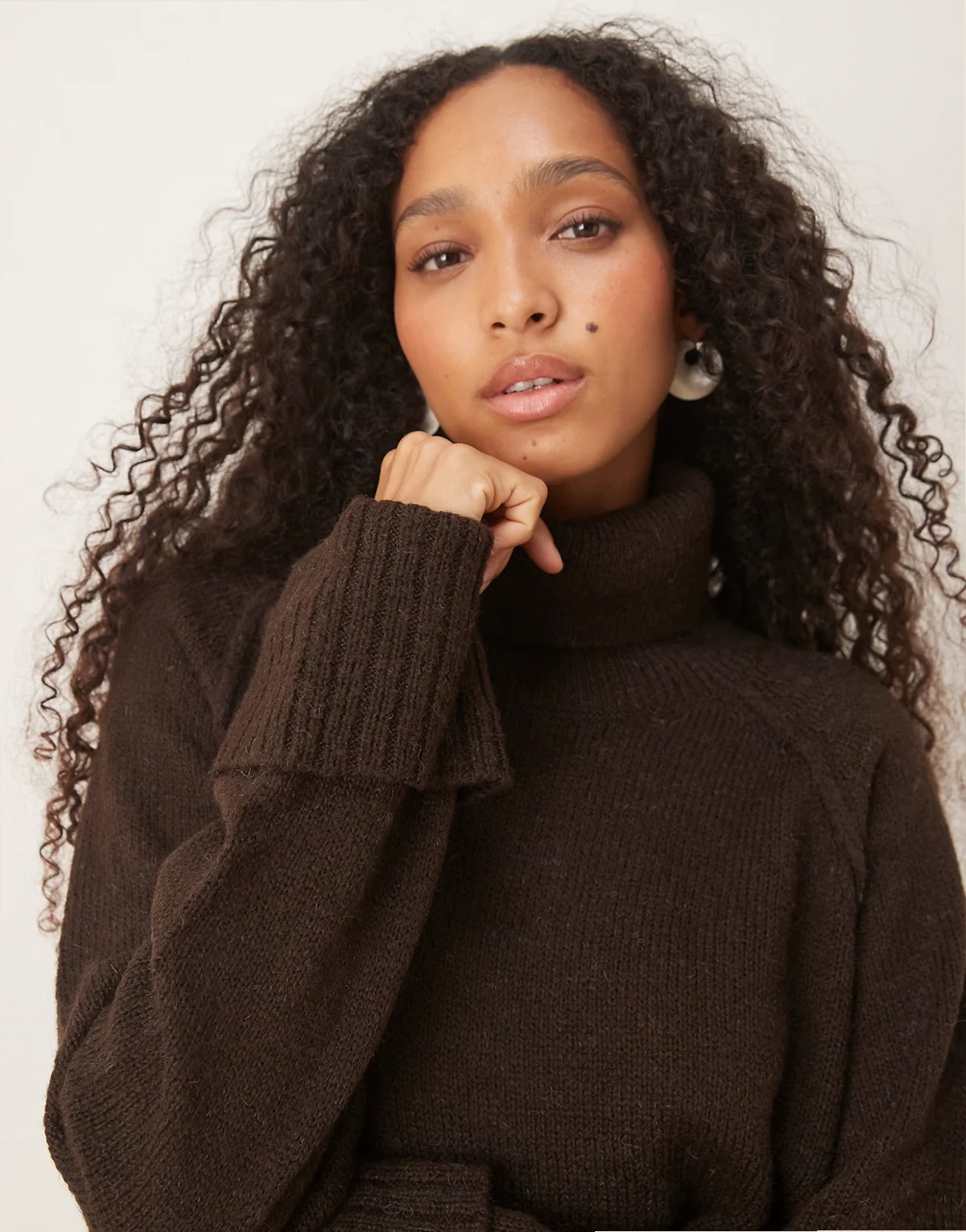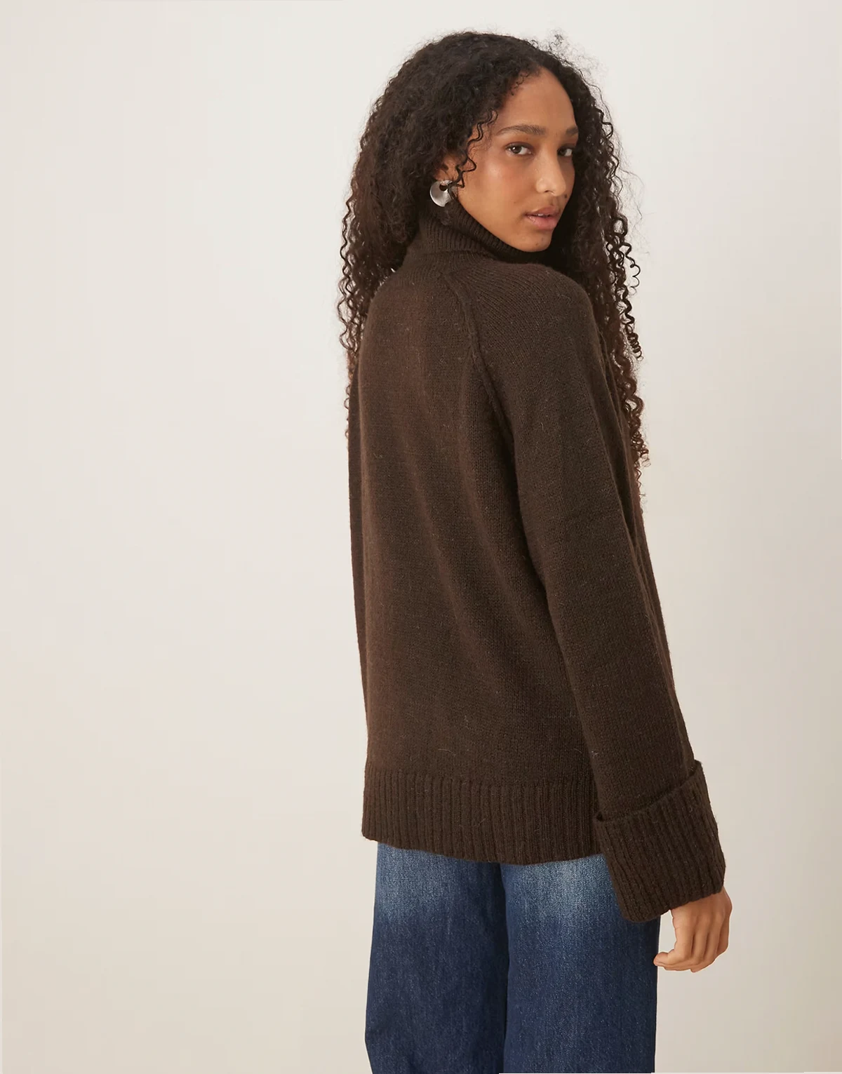 – Brązowy sweter oversize z golfem