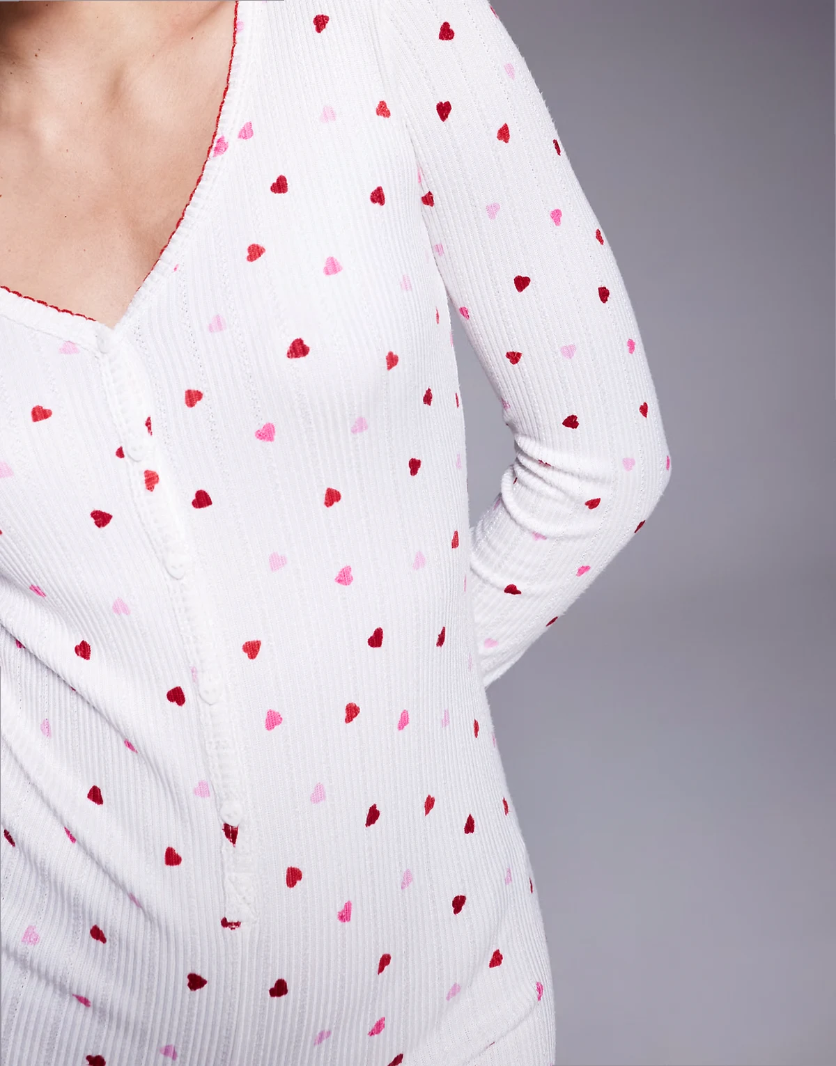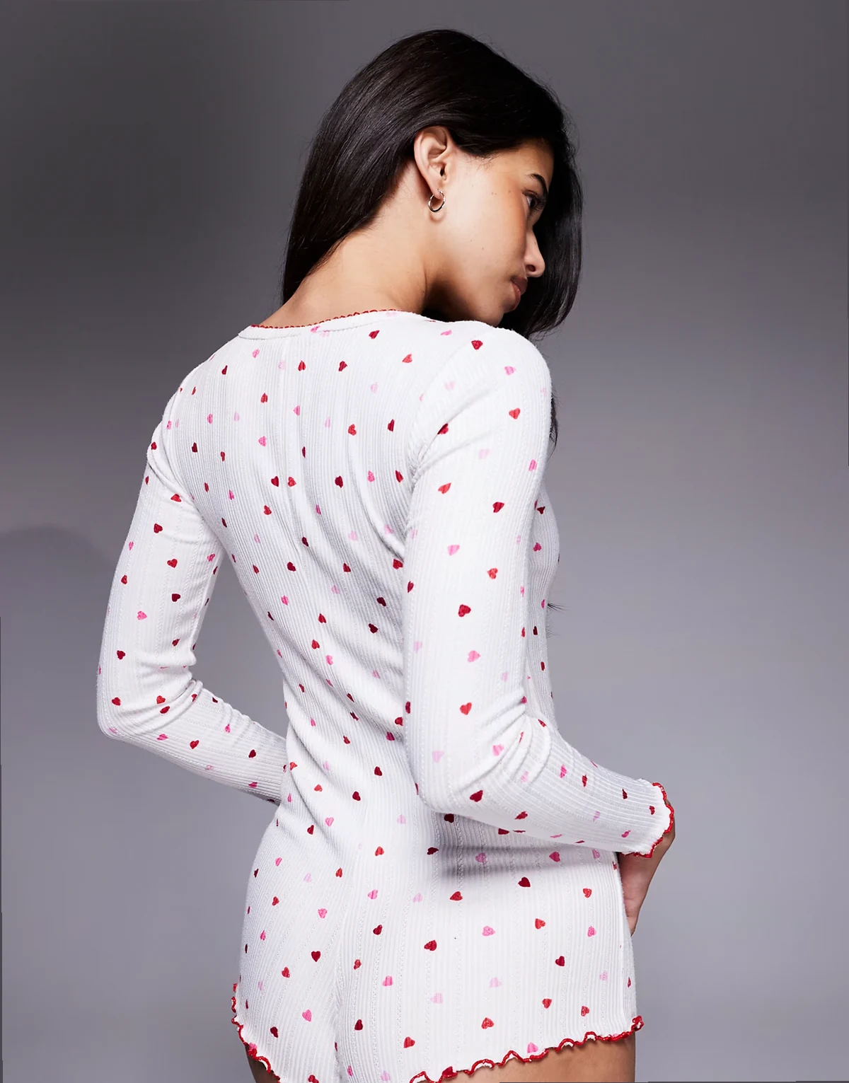 – Krótki prążkowany kombinezon w kolorze kości słoniowej w serduszka