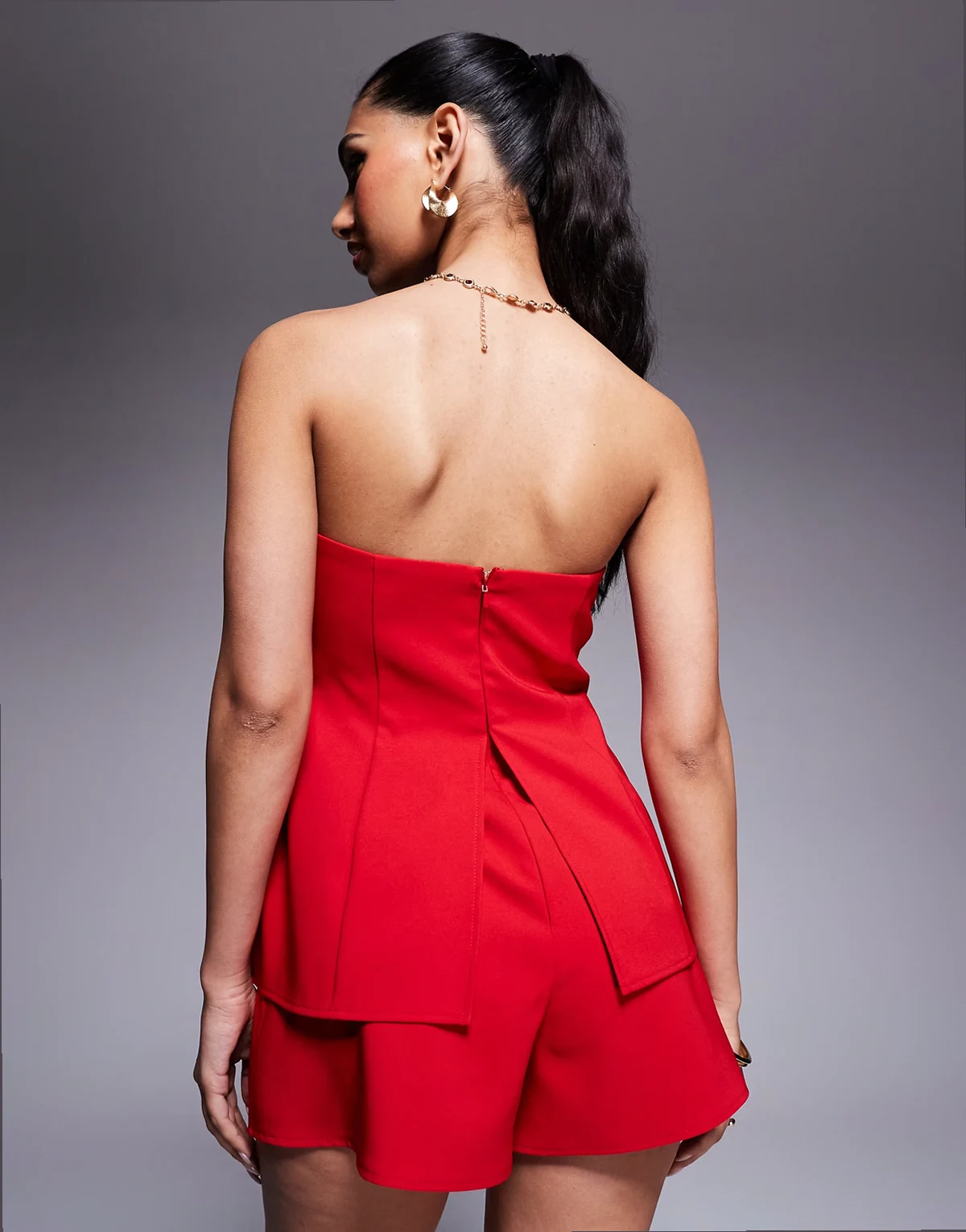 – Czerwony dwuwarstwowy profilowany krótki kombinezon bandeau