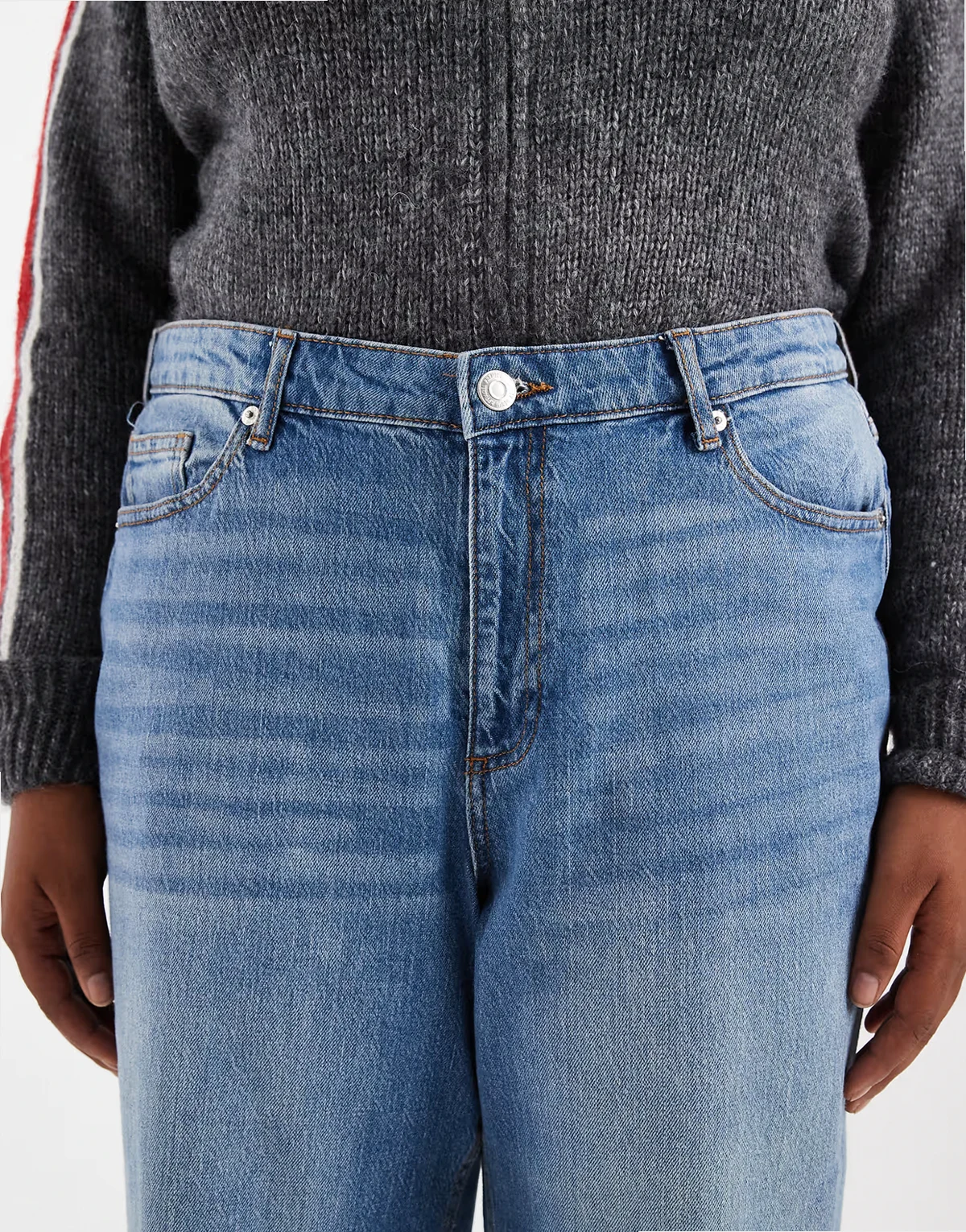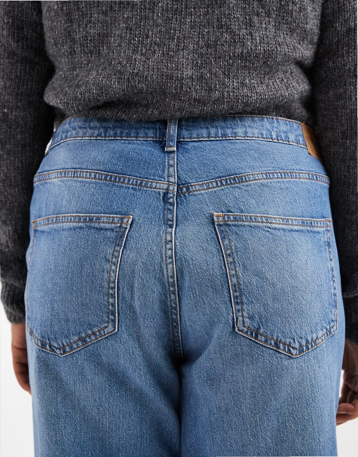 Denim bez stretchu: odcień spranego błękitu.