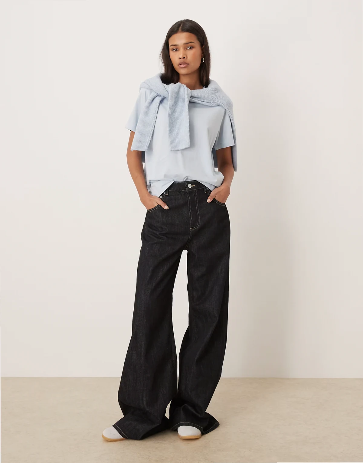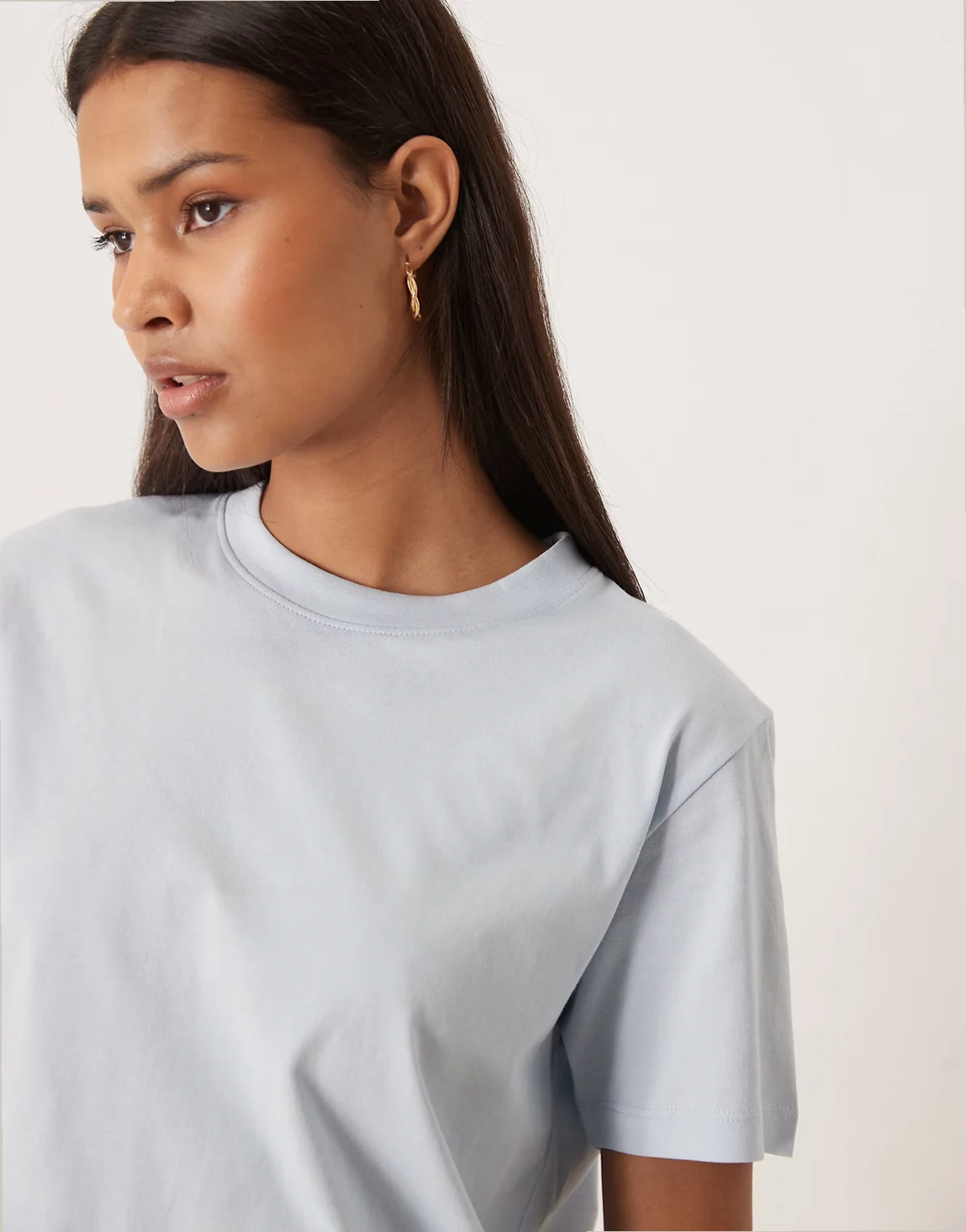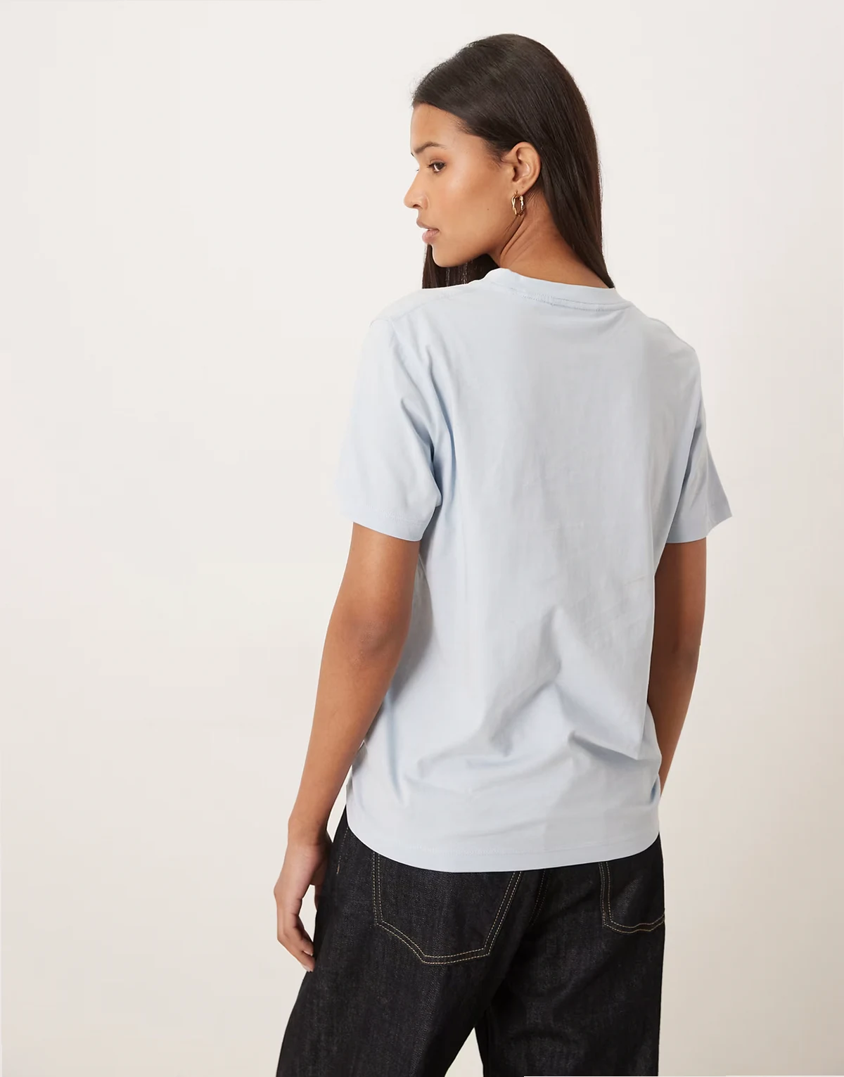 – Jasnoniebieski T-shirt z okrągłym dekoltem