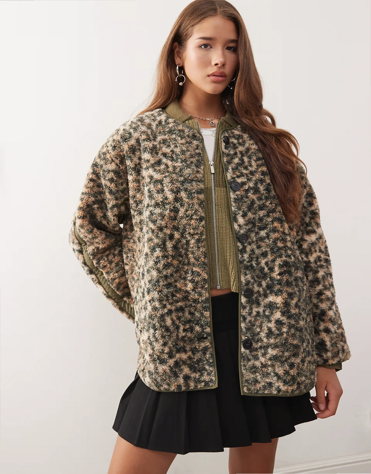 – Koszulka oversize z misia w panterkę bez kołnierzyka