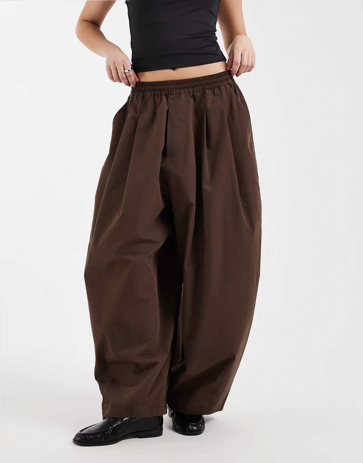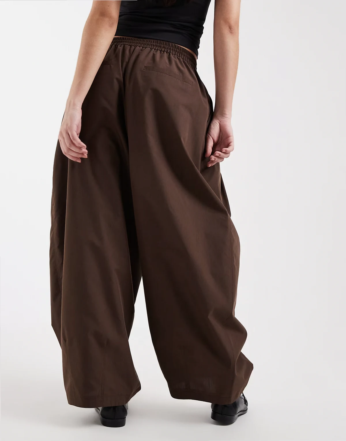 – Czekoladowe spodnie z nogawkami o balonowym kroju XL