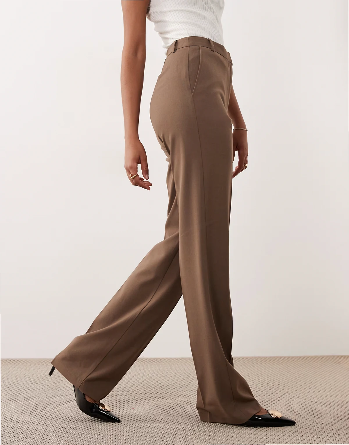 Tall – Dopasowane spodnie z prostymi nogawkami w ciemnym odcieniu taupe