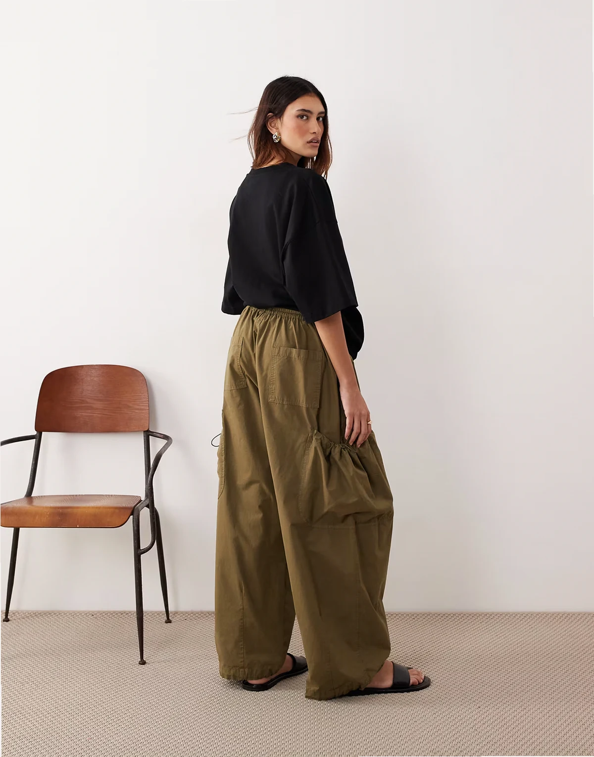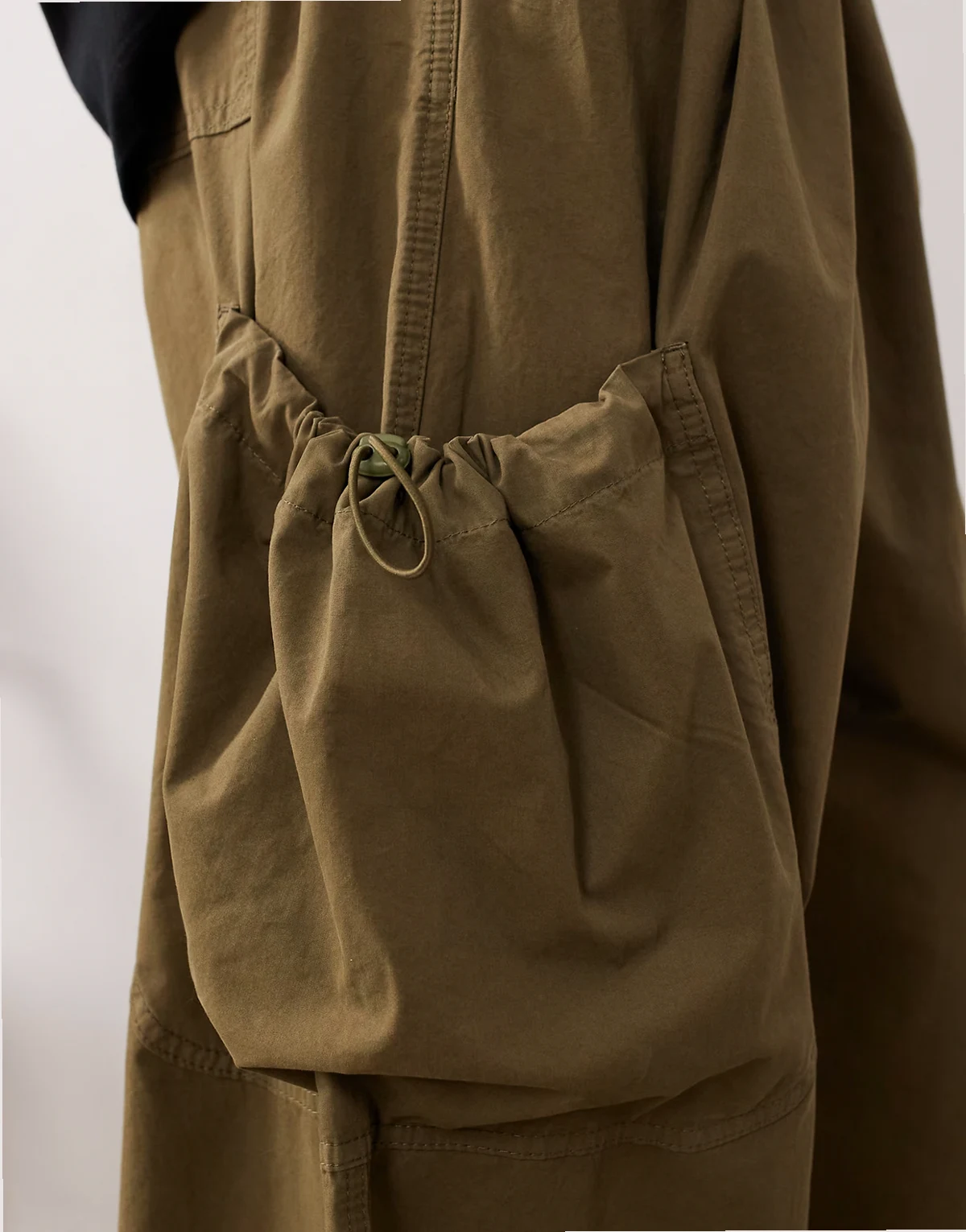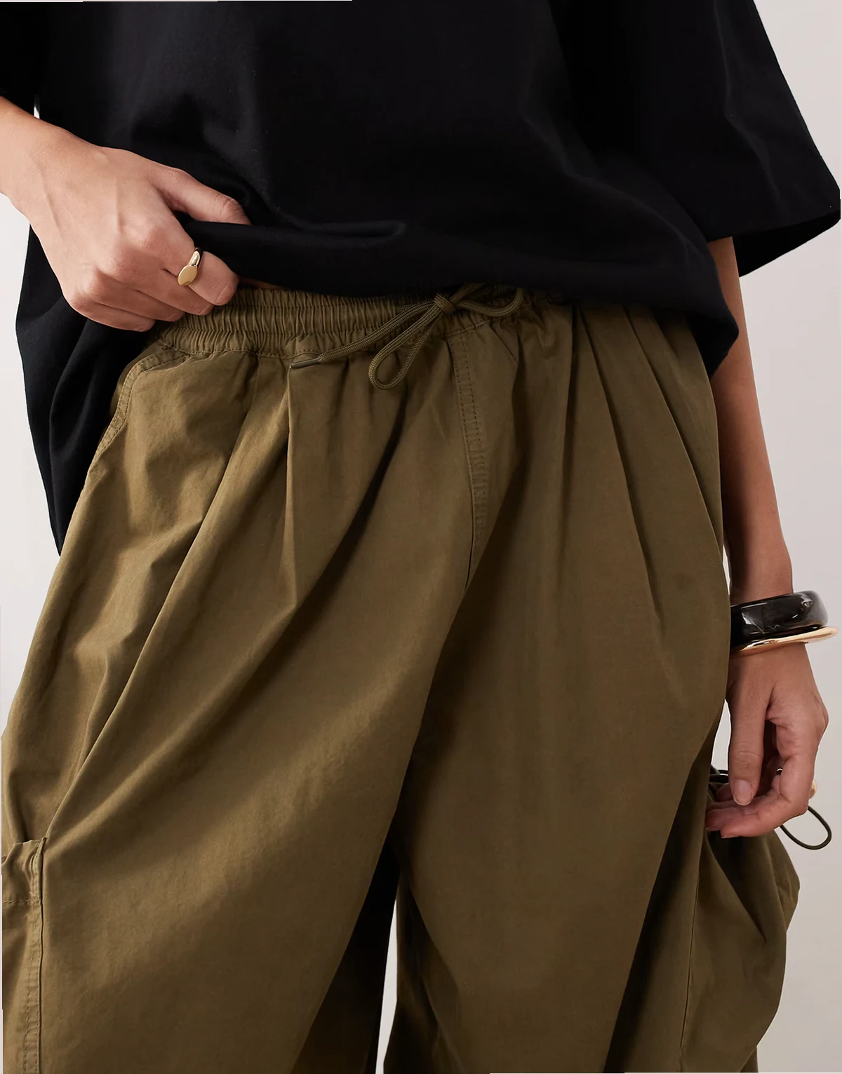 – Ściągane na sznurek spodnie w stylu utility w kolorze khaki