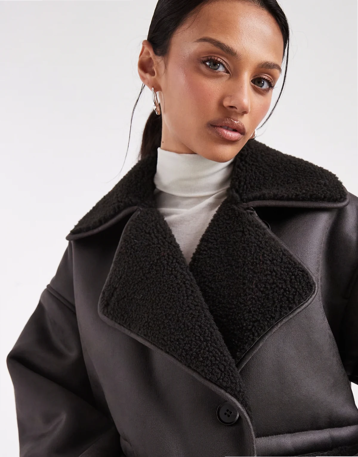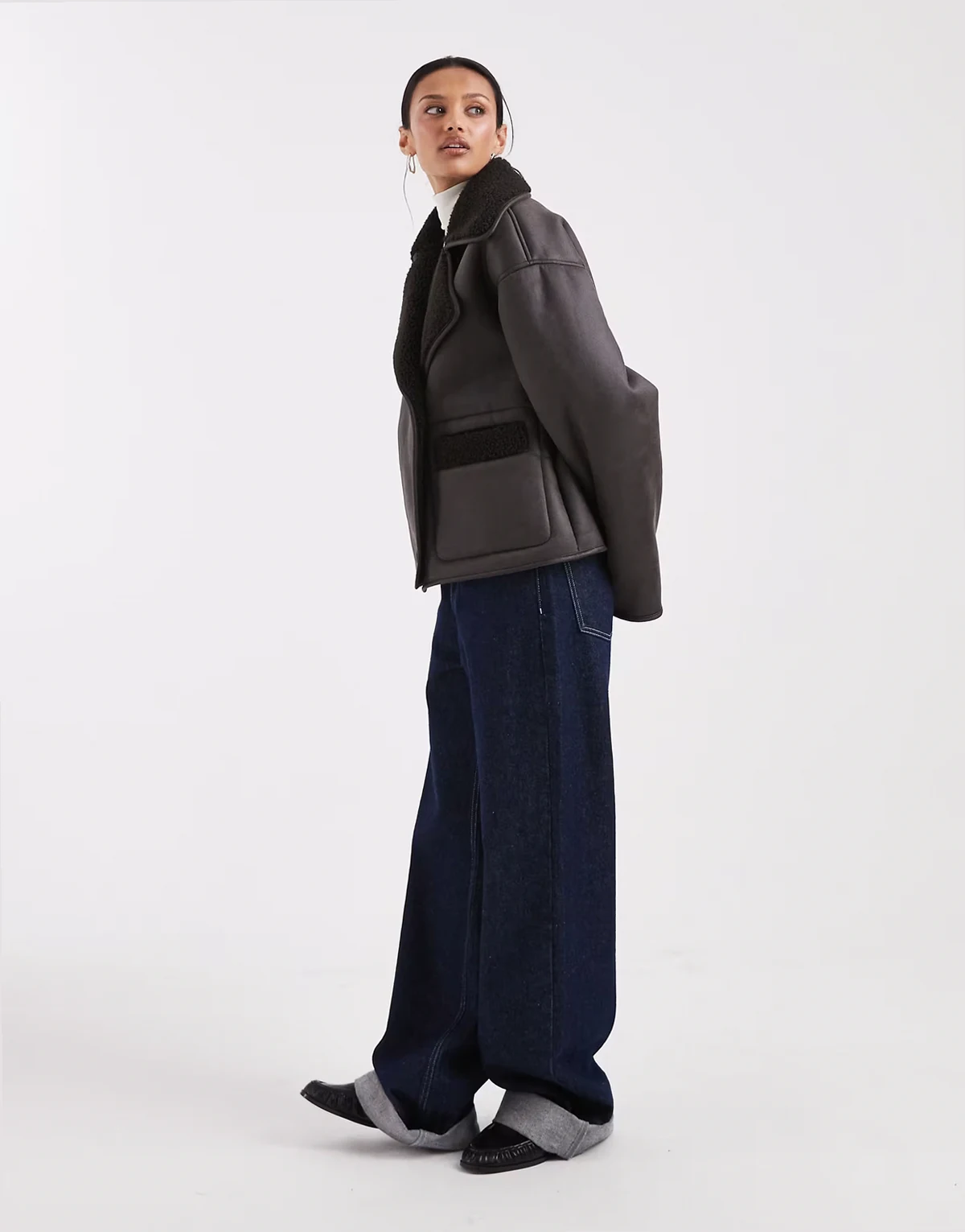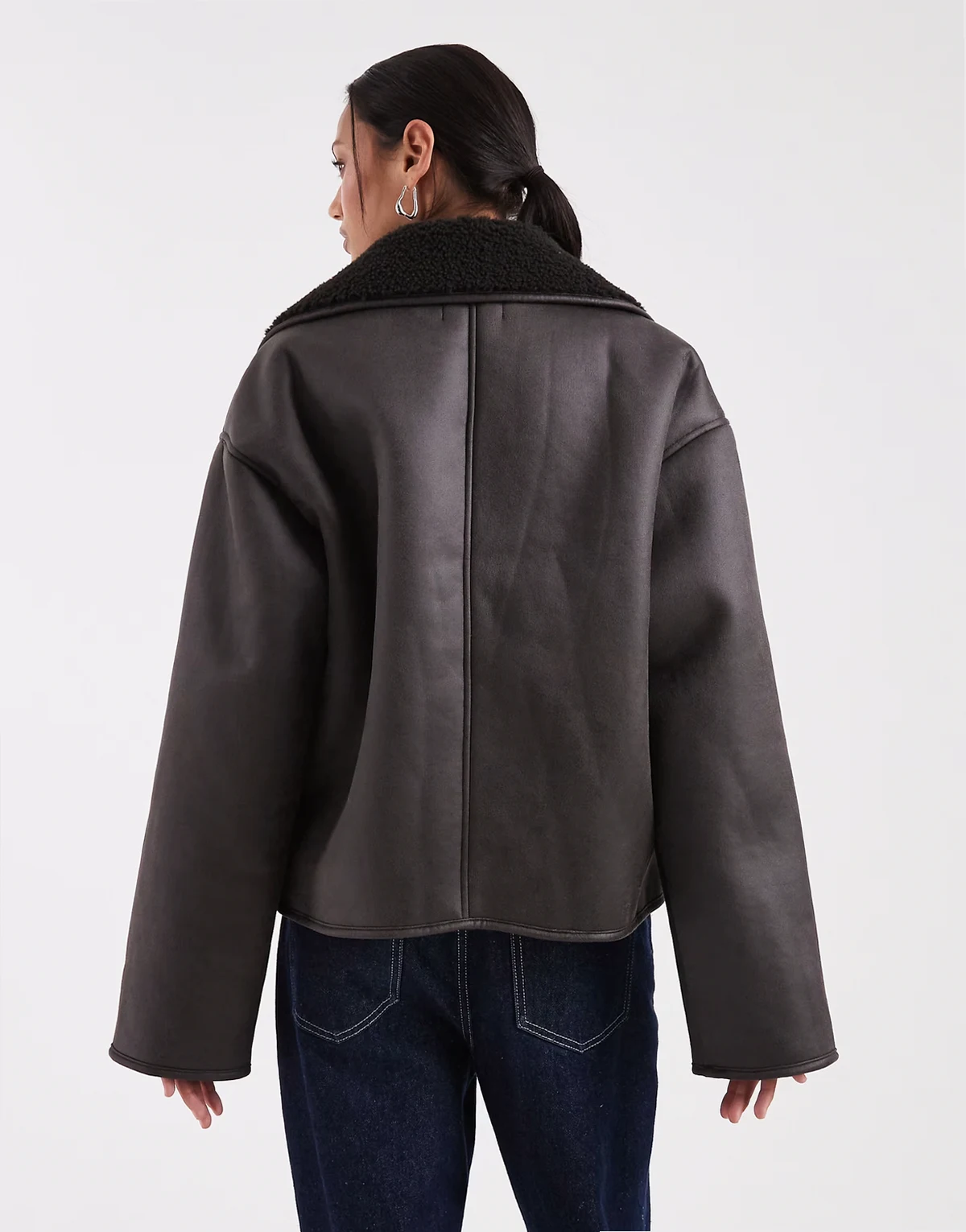 – Czekoladowa kurtka ze sztucznym kożuszkiem