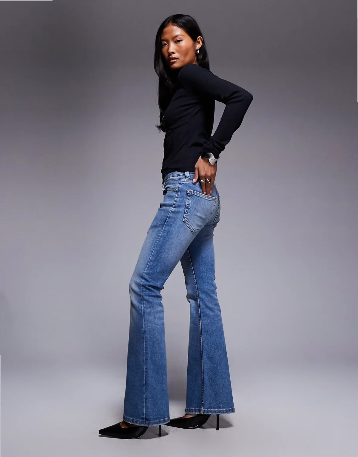 ASOS DESIGN Petite – Jeansy bootcut w niebieskim kolorze