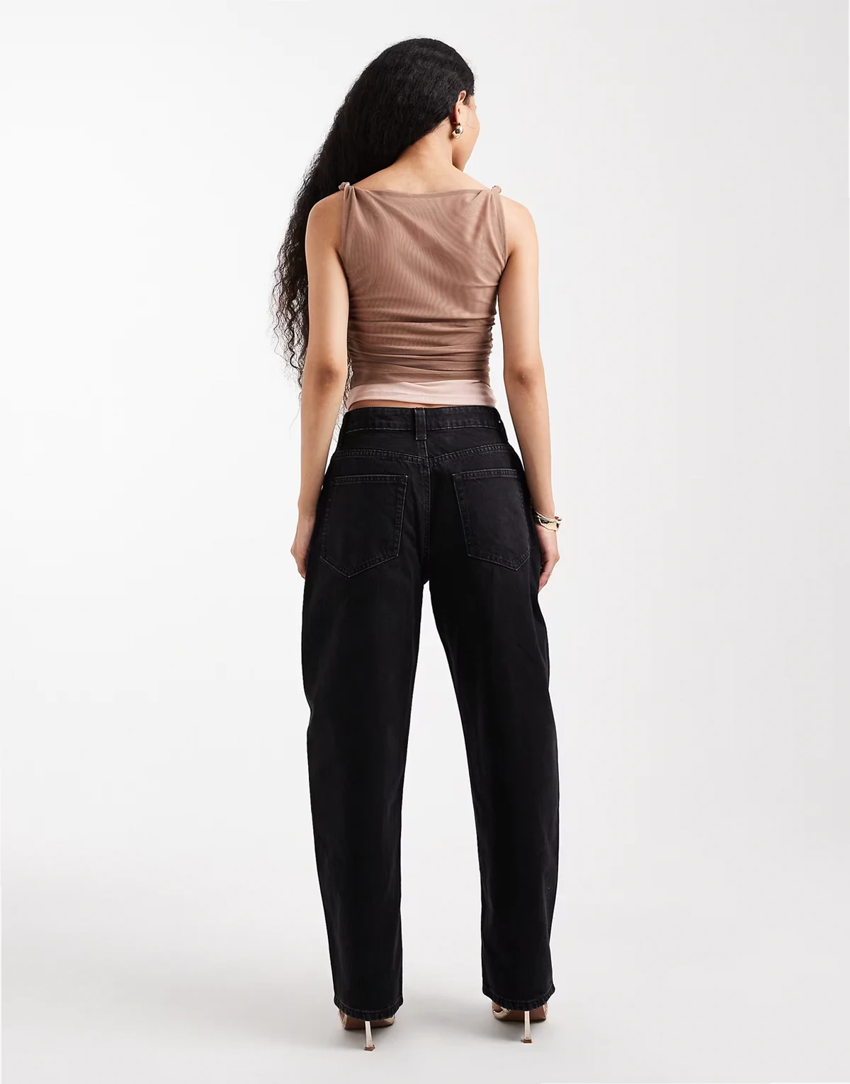 ASOS DESIGN Petite – Czarne dopasowane jeansy barrel
