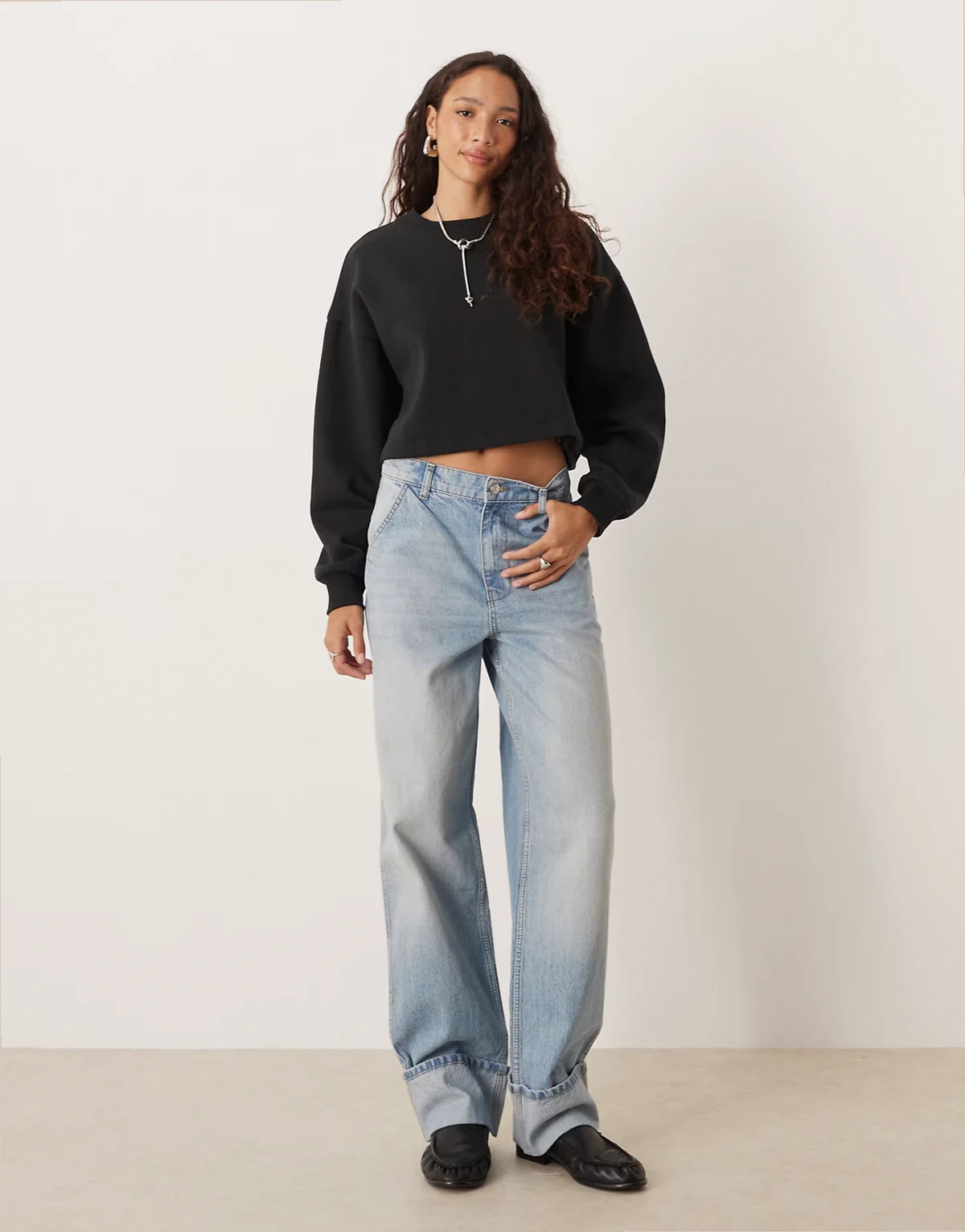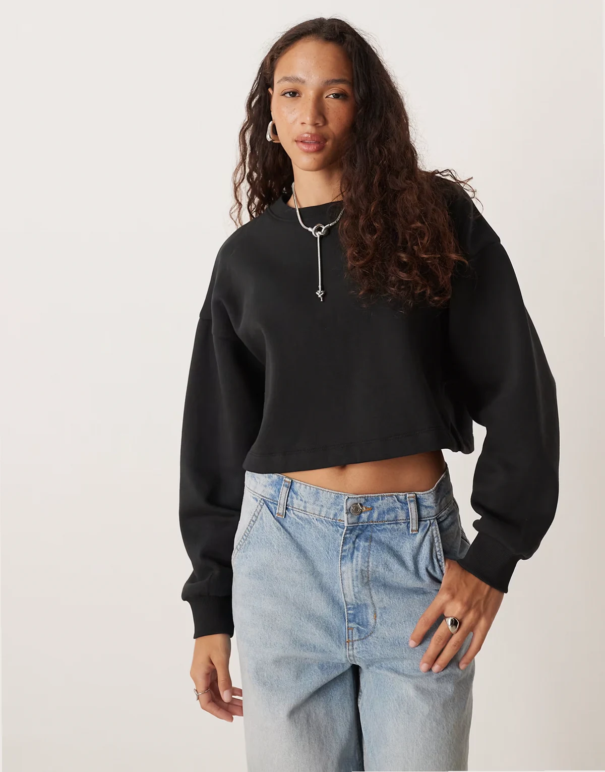 – Czarna bluza basic o luźnym kroju z zapięciem na suwak pod szyją