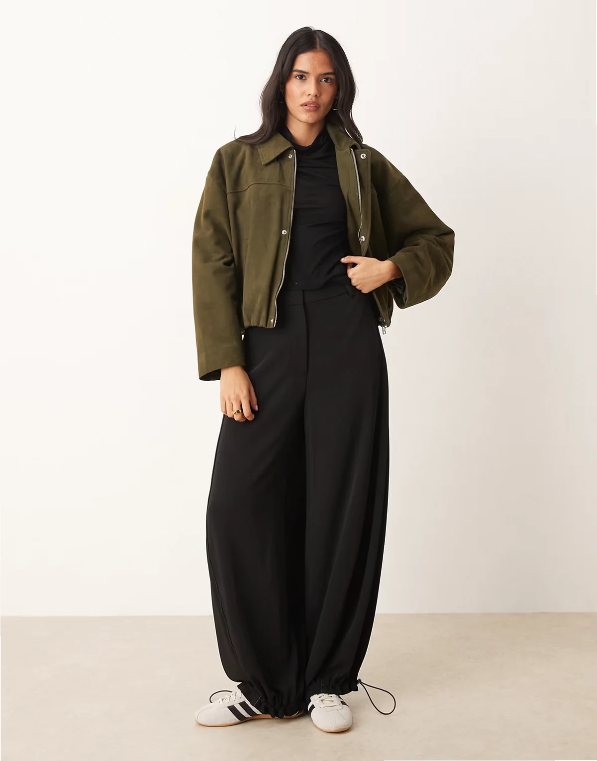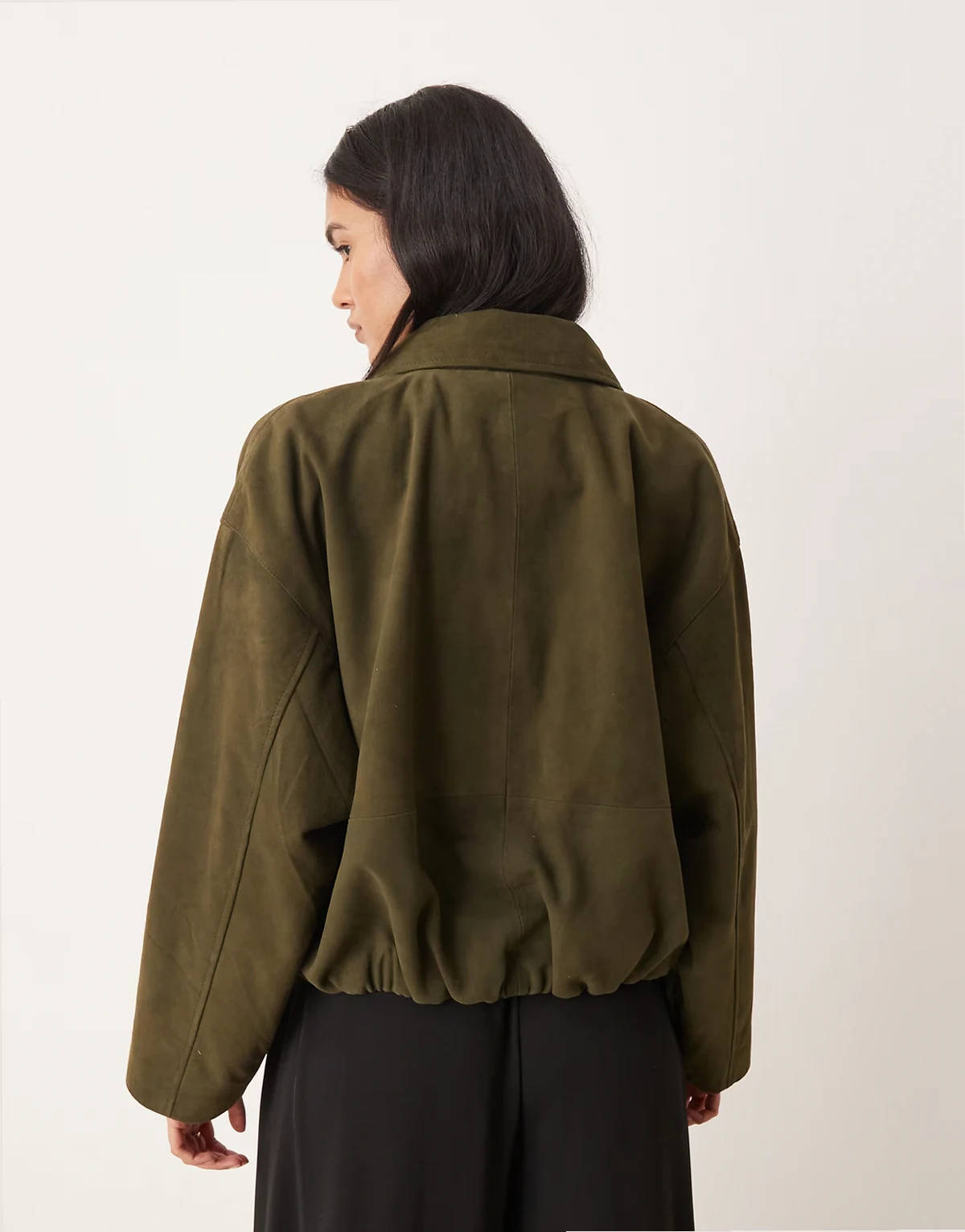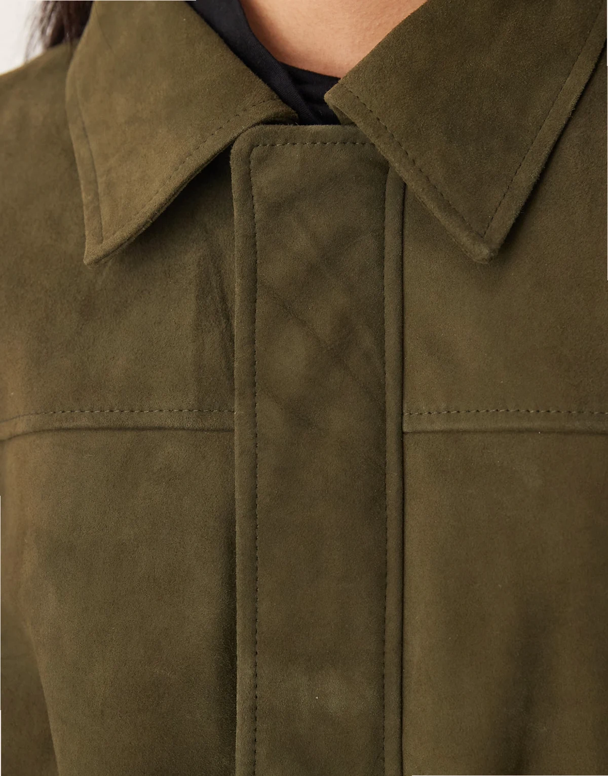 – Oliwkowa kurtka zamszowa
