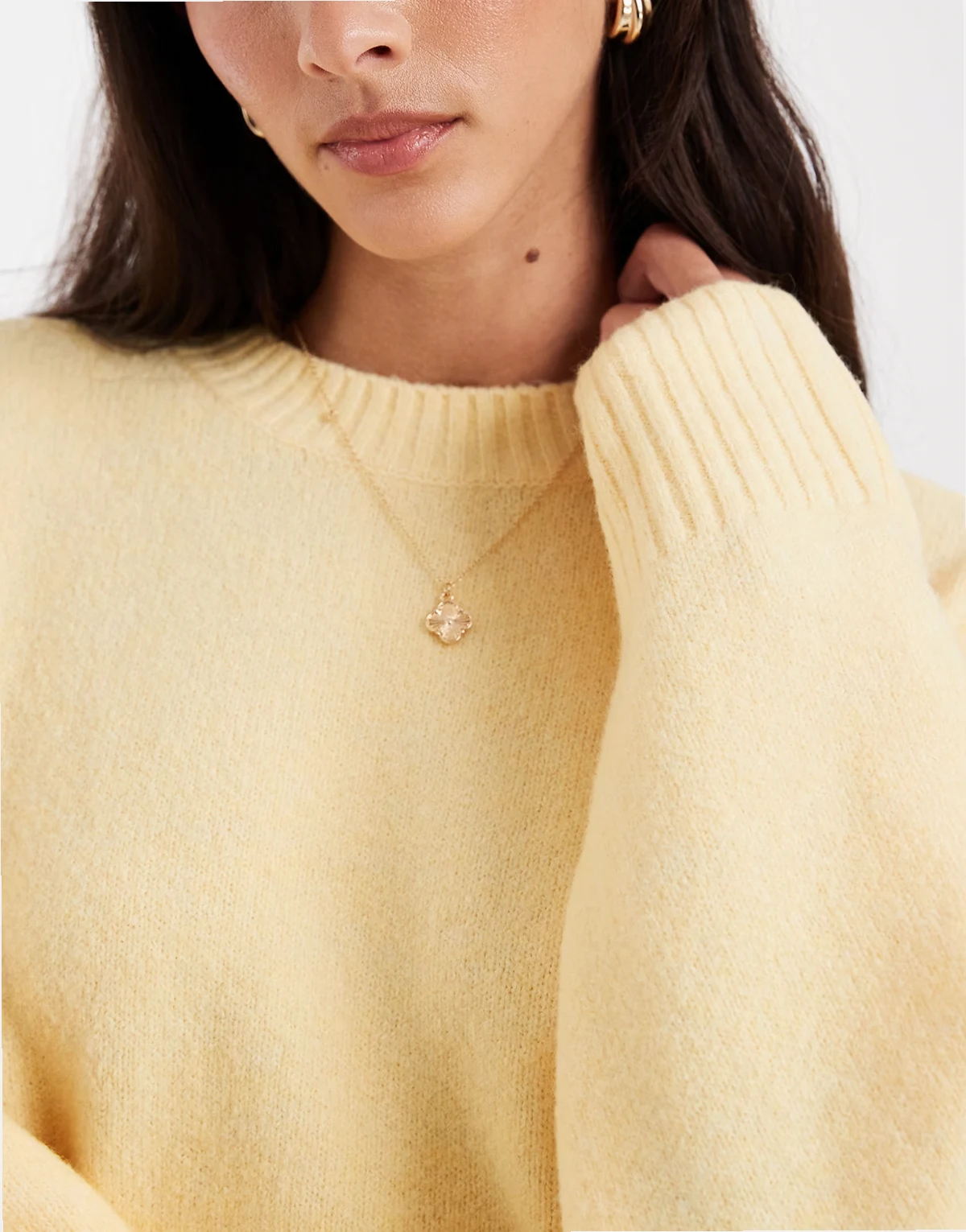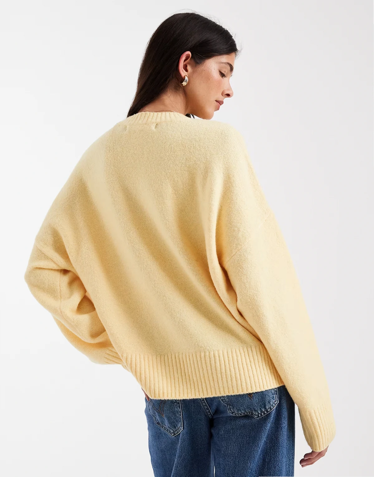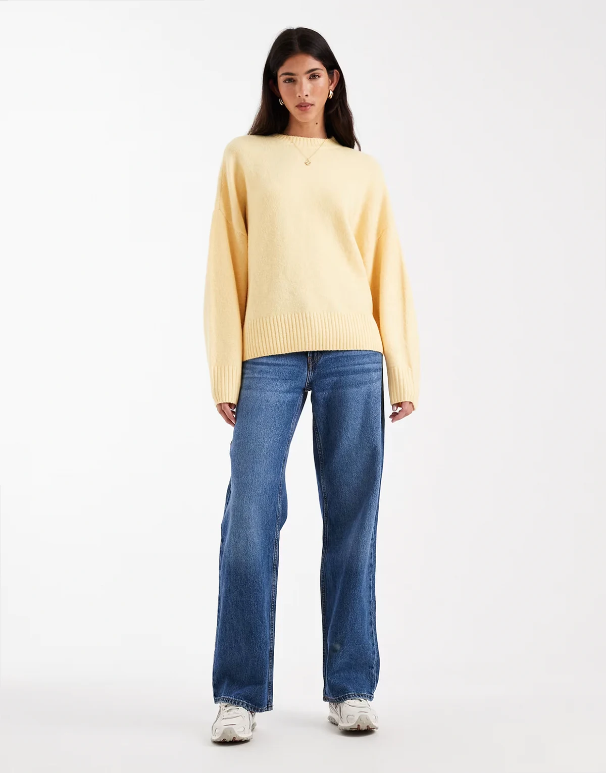 – Złotożółty miękki sweter z okrągłym dekoltem