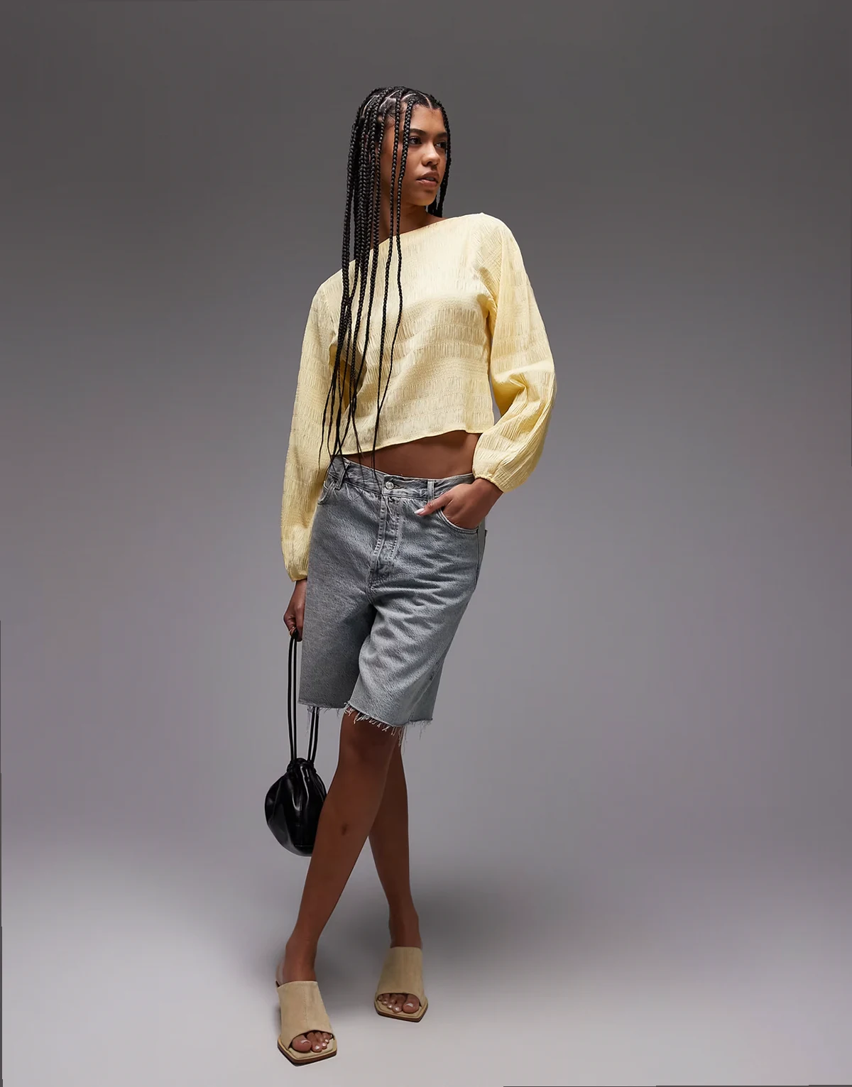 – Bladożółta fakturowana bluzka