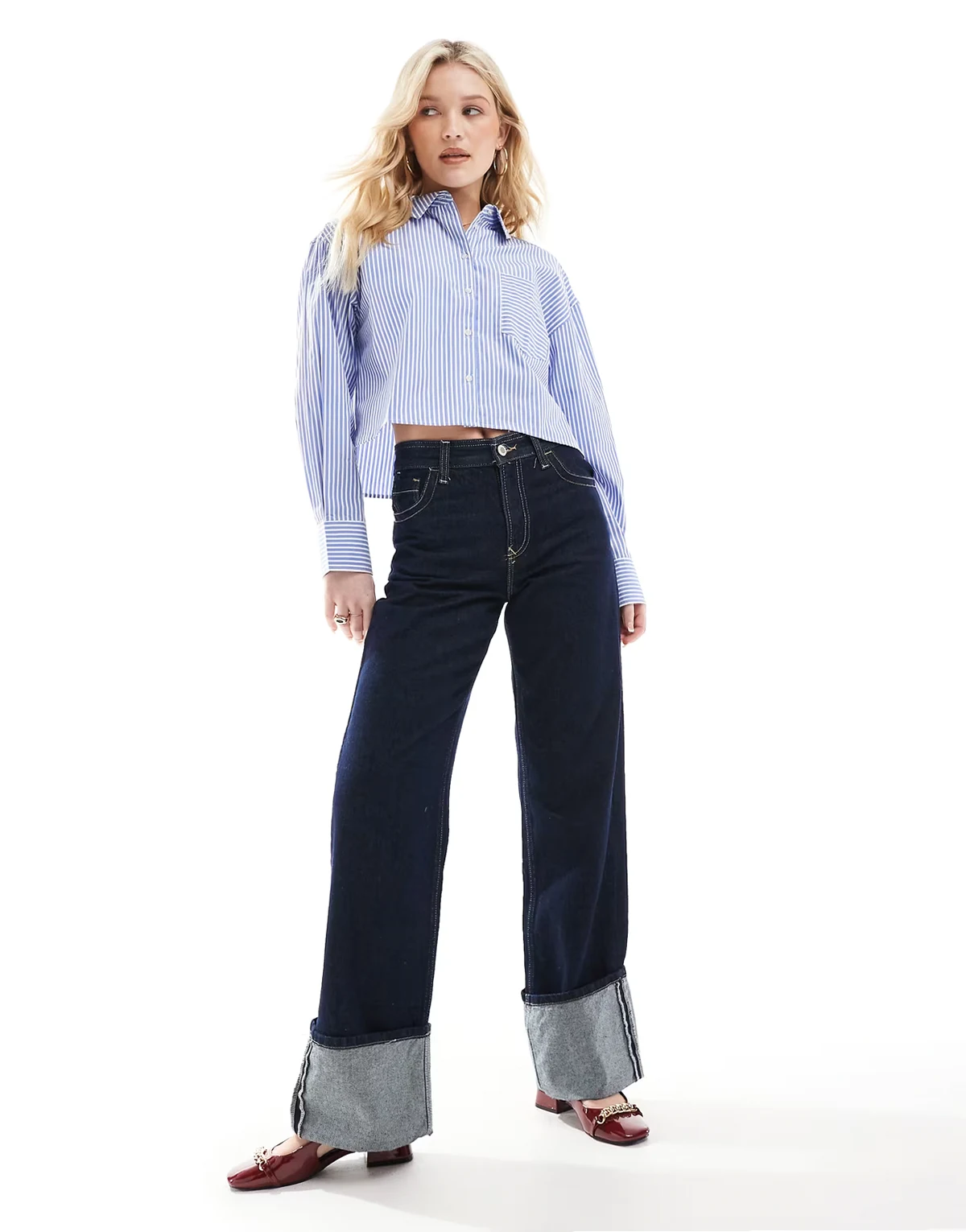 – Niebieska pudełkowa koszula oversize ze zdobieniem